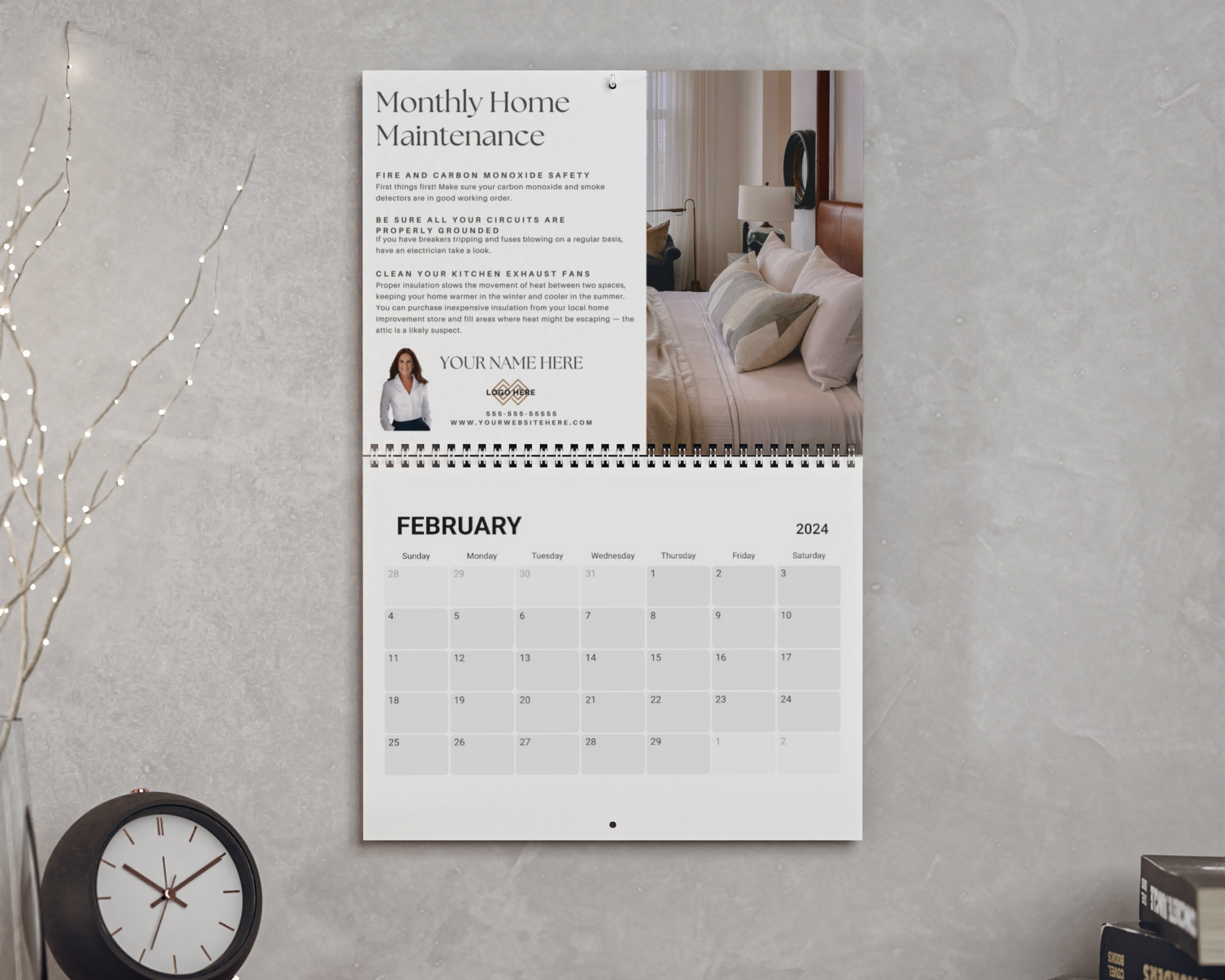 1. A Gift of Peace of Mind: Your clients have made one of the most significant investments of their lives. Show them you care by giving them the tools they need to protect and maintain their new home. Our Home Maintenance Calendar is their key to a well-cared-for and stress-free living space.