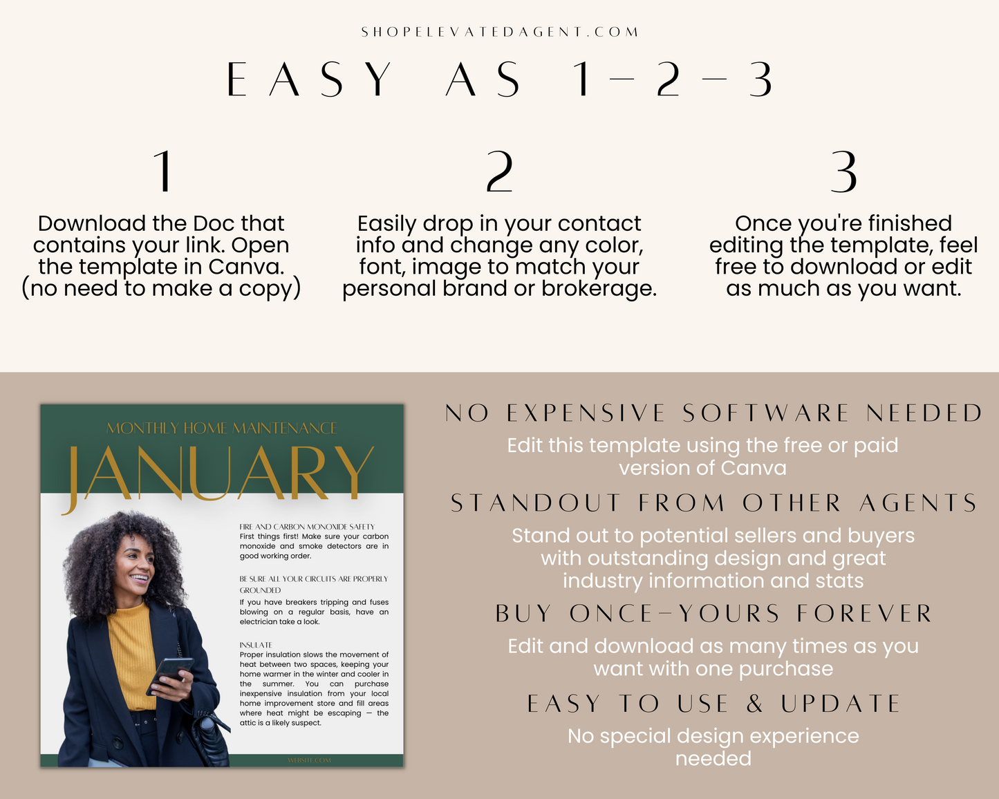 Attention Real Estate Agents! Keep your real estate marketing fresh and updated with this easy-to-use Realtor Canva Template designed by Elevated Agent. We stay on top of real estate marketing trends and produce new content daily.