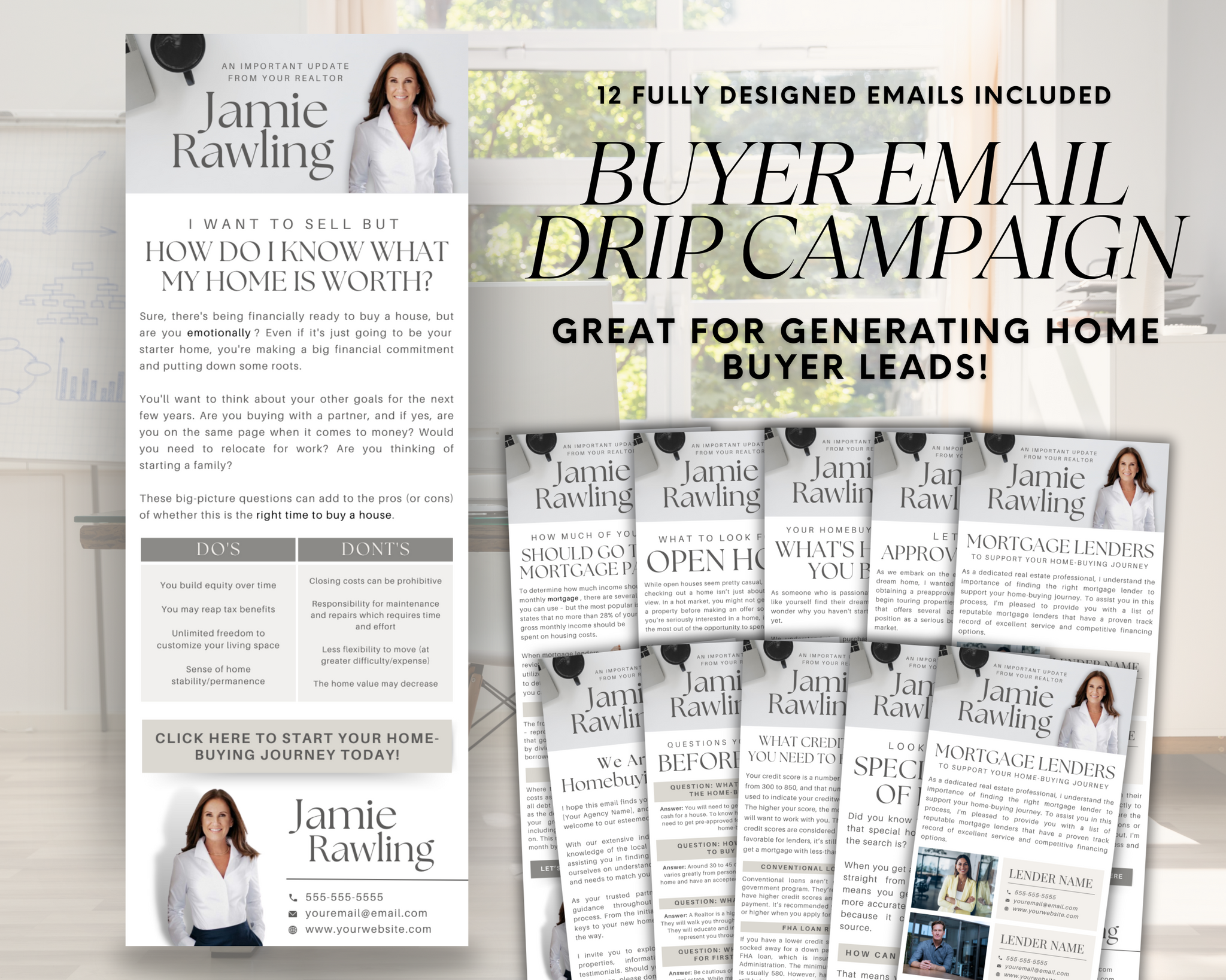 Take your client communication to the next level with our Real Estate Home Buyer Drip Email Template. Elevate your professional image, save time, and close more deals.
