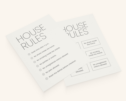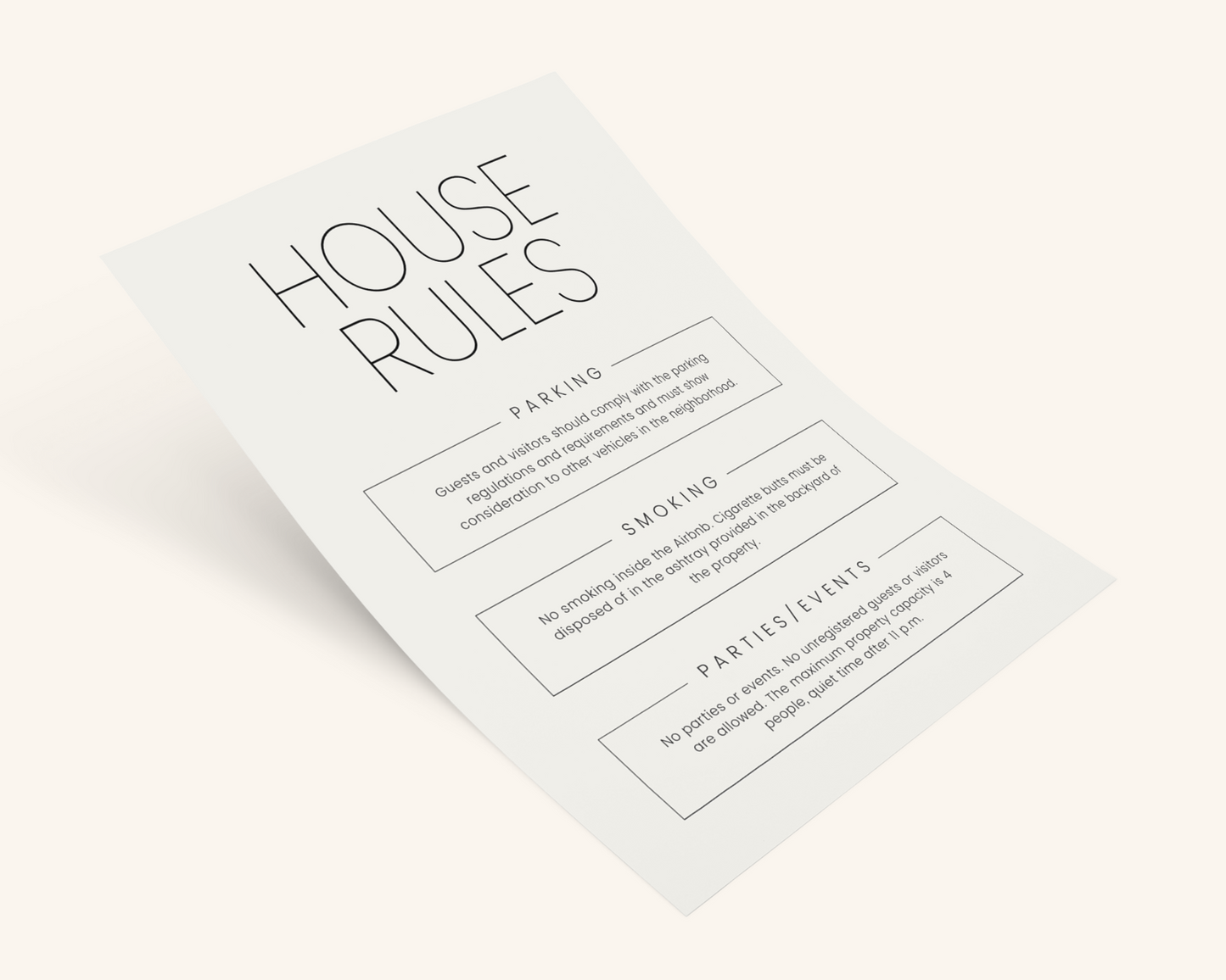 As a proud Airbnb host, you know that the key to a successful stay for both you and your guests is clear communication. This is where your Airbnb House Rules Sign comes in - a simple, yet effective way to relay important information to your guests without having to repeat yourself over and over.