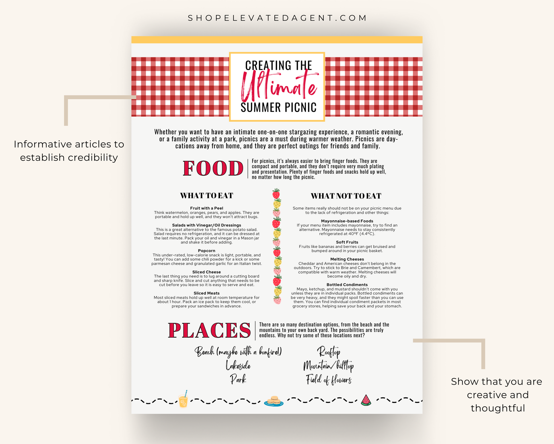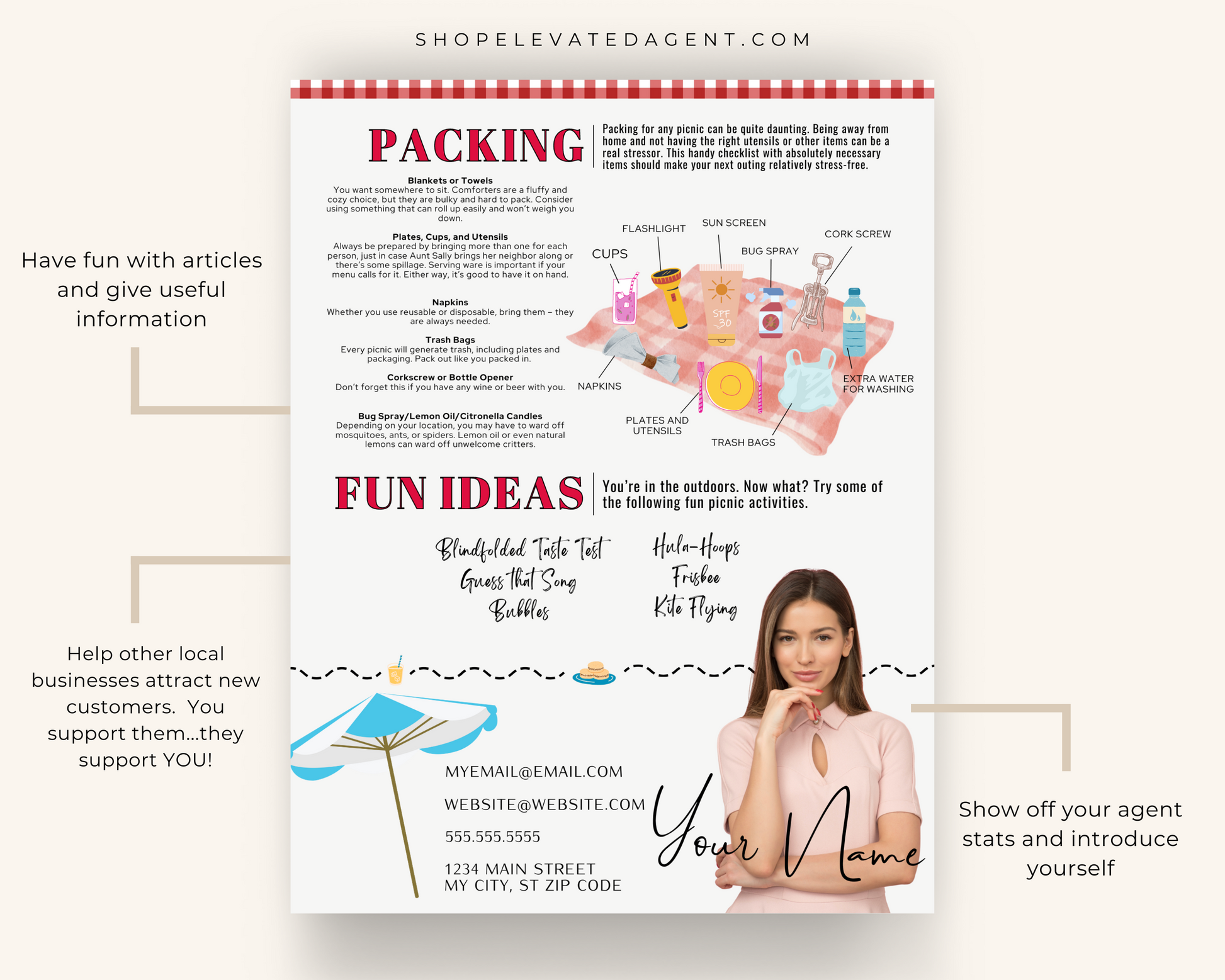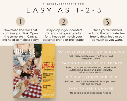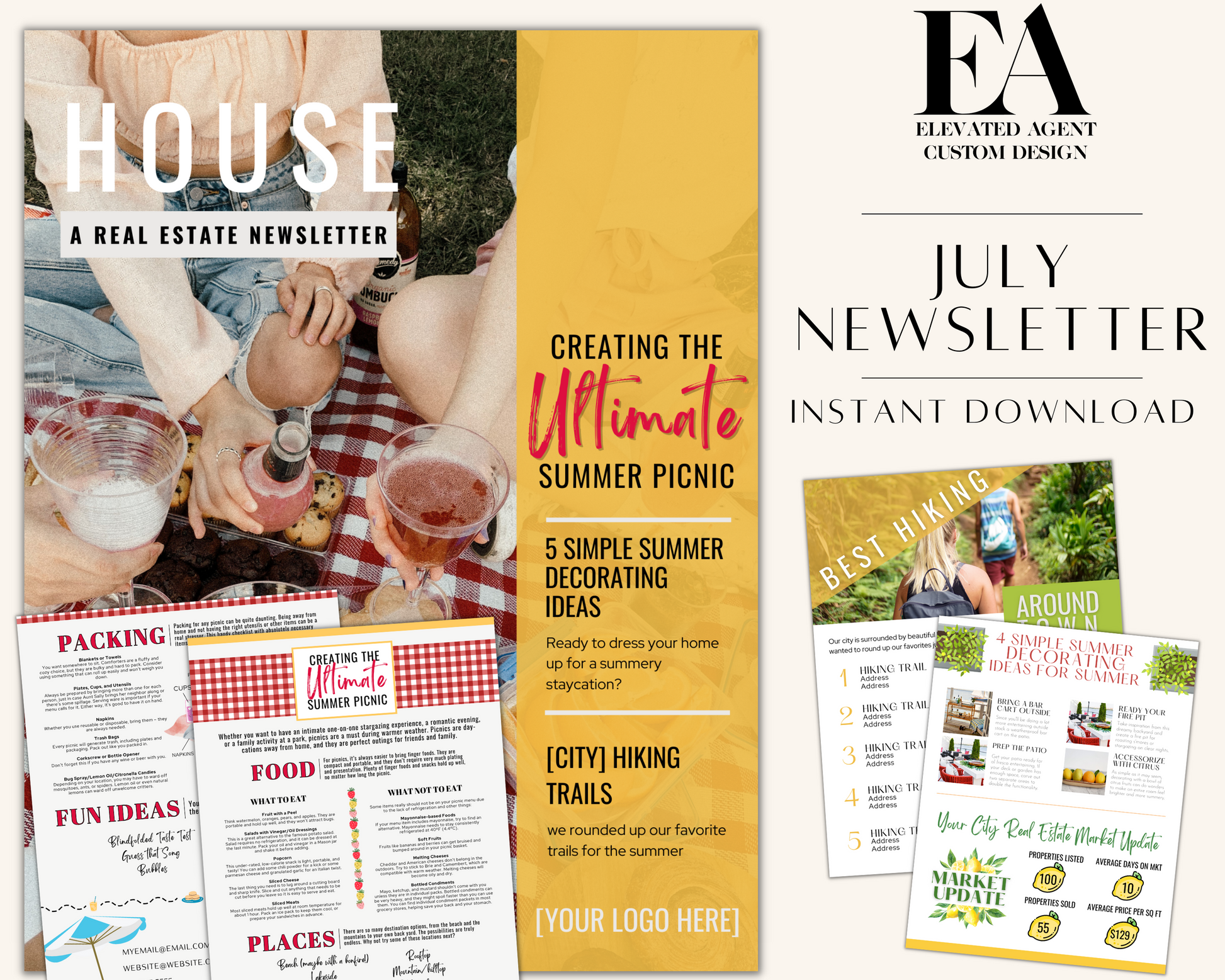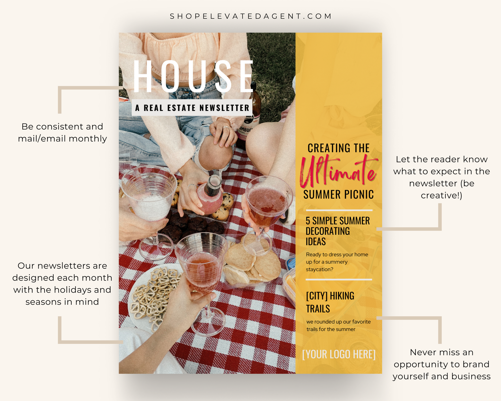 Attention Real Estate Agents! Keep your real estate marketing fresh and updated with this easy-to-use Realtor Newsletter designed by Elevated Agent. You can print and mail to a farm, email it to your database, or hand it out at events and open houses!