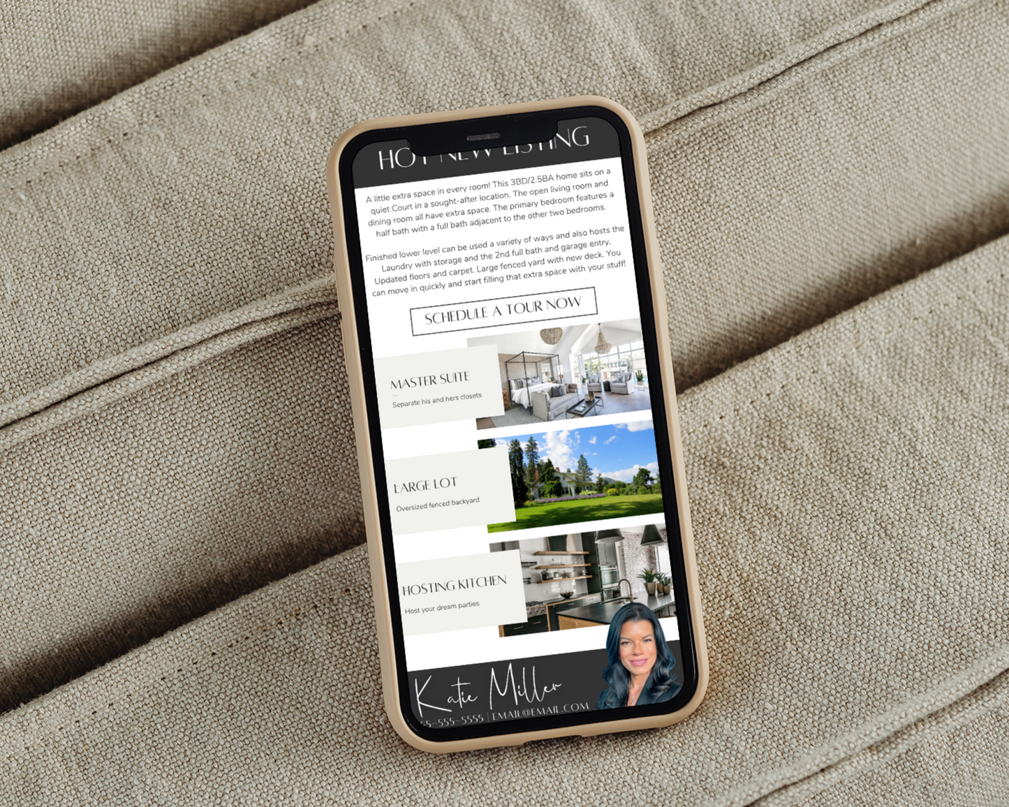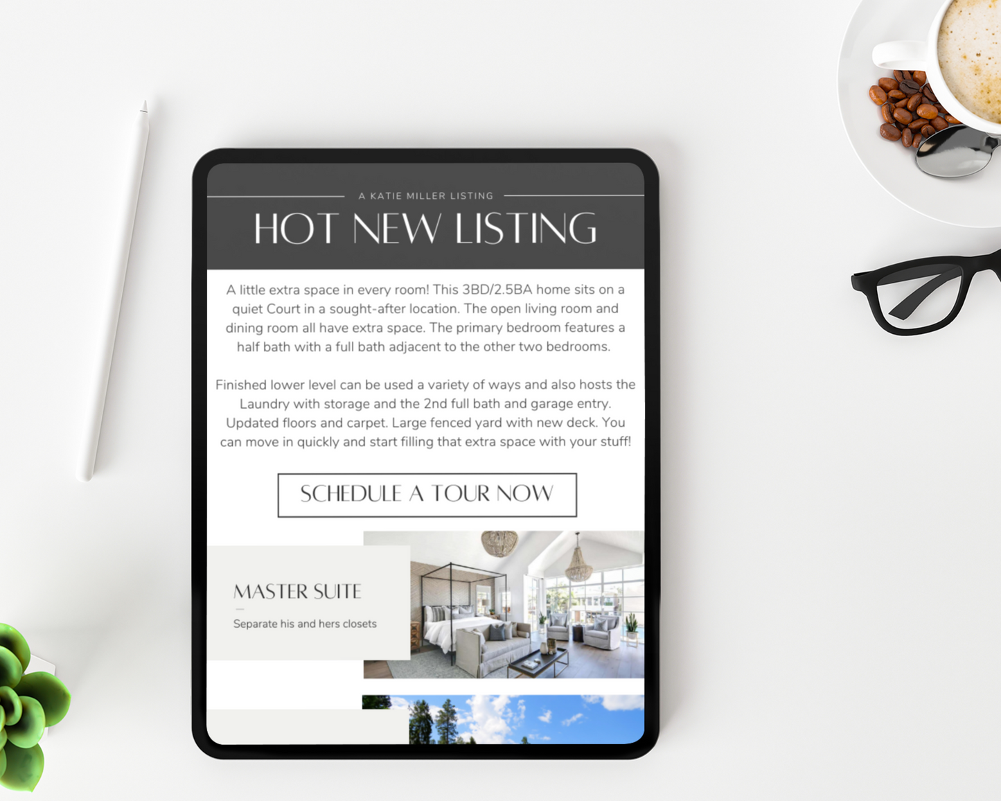 Created using Canva, our Just Listed Email Template is incredibly user-friendly, allowing you to effortlessly customize every aspect. From captivating visuals to compelling copy, this template has it all, making it the perfect tool for showcasing your new listings.