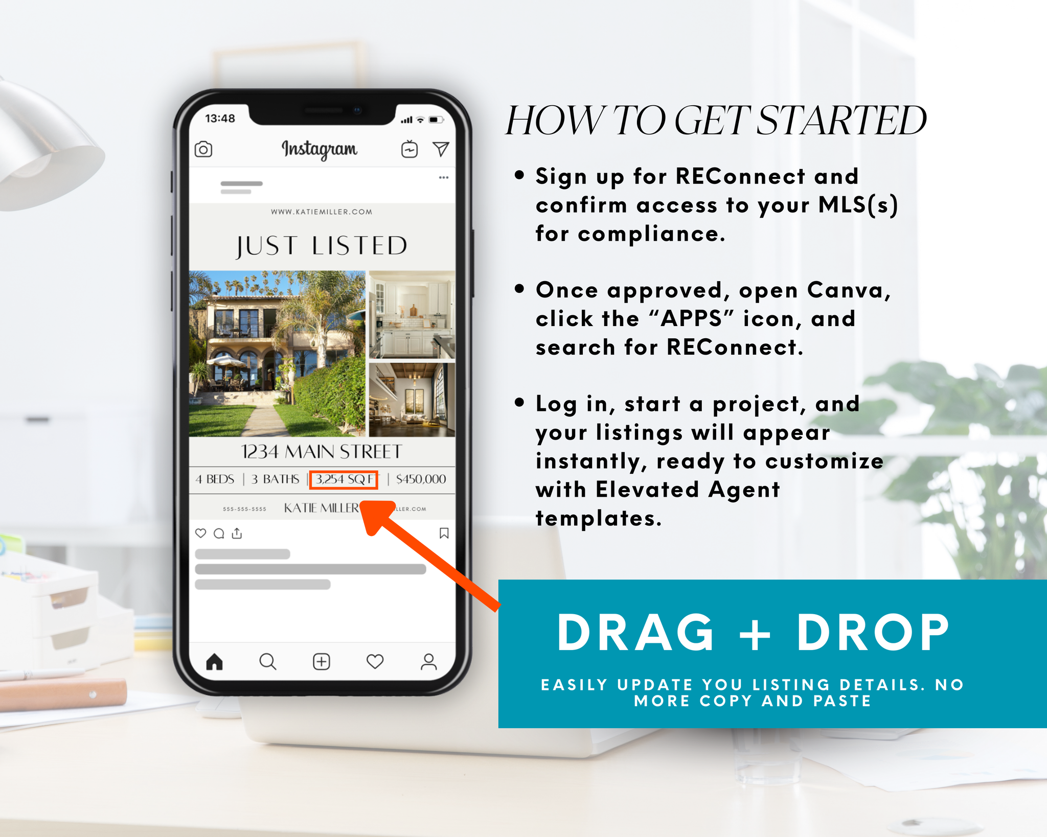 Create eye-catching listing announcements that look cohesive, professional, and ready to post, every single time.