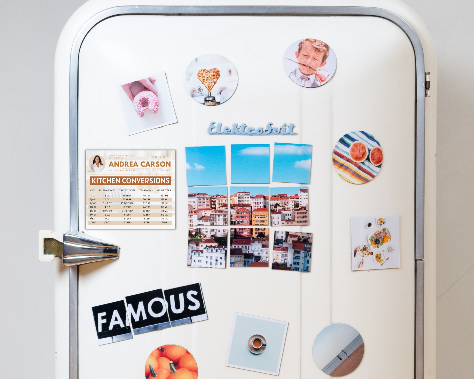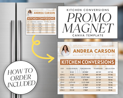 Attention Real Estate Agents! Use this Real Estate Template – Promo Magnet with Kitchen Conversions 4 as an easy and effective way to promote your real estate business. Look no further than our promotional magnet Canva template! With customizable designs and your own personal touch, these magnets make the perfect giveaway for home sellers and home buyers, past clients, and potential leads. Whether you want to showcase your realtor stats or feature your real estate branding, our template makes it simple to create a magnet that leaves a lasting impression. Plus, with its durable material and long-lasting effects, your clients will be sure to remember you every time they open their fridge. So, what are you waiting for? Start customizing your promotional magnet today and watch your business grow!