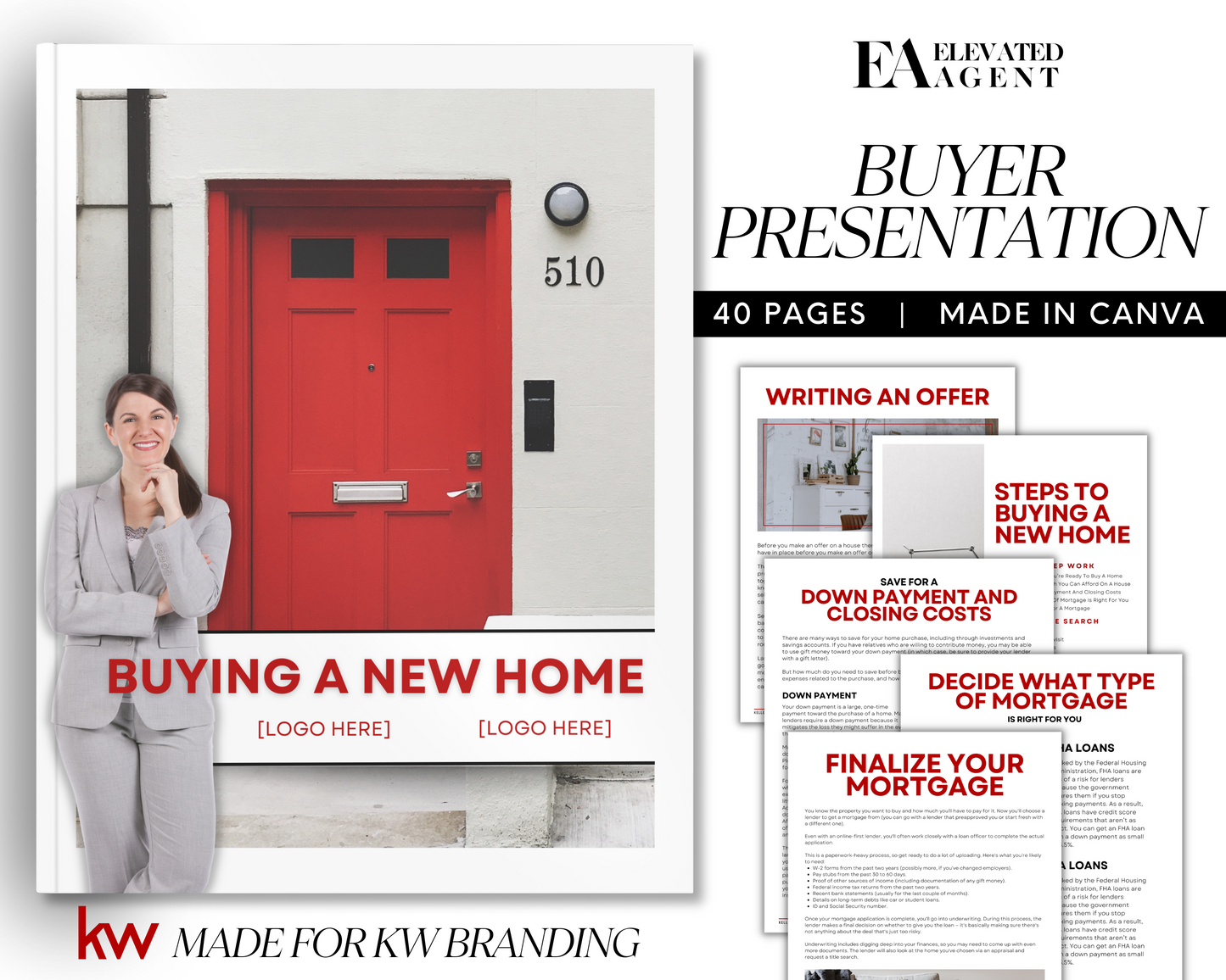 An impressive KW buyer presentation is key to a successful listing appointment where the client hires you as the real estate professional to sell their home. This KW Listing Presentation real estate template is customizable and will address questions a buyer will have about the process.