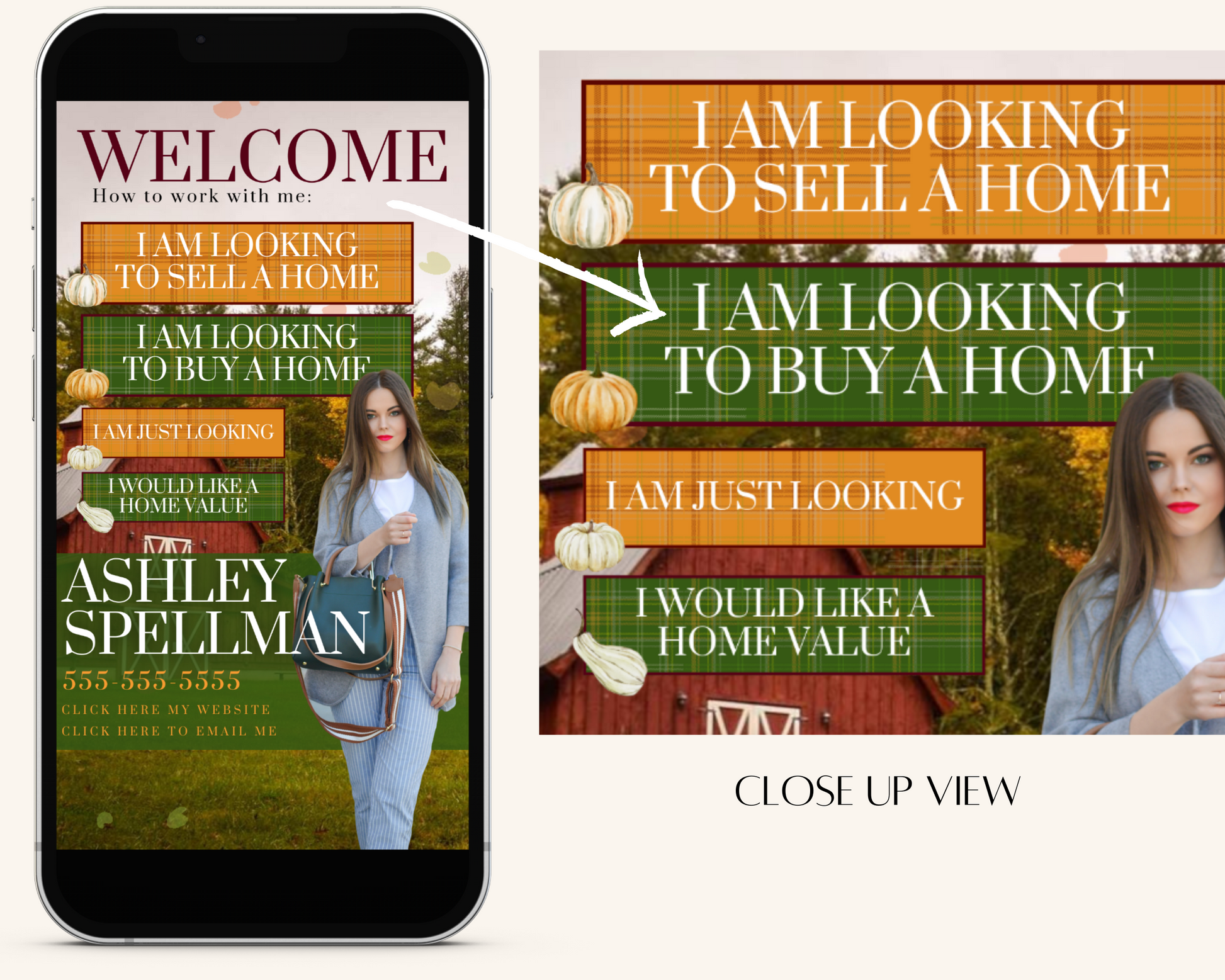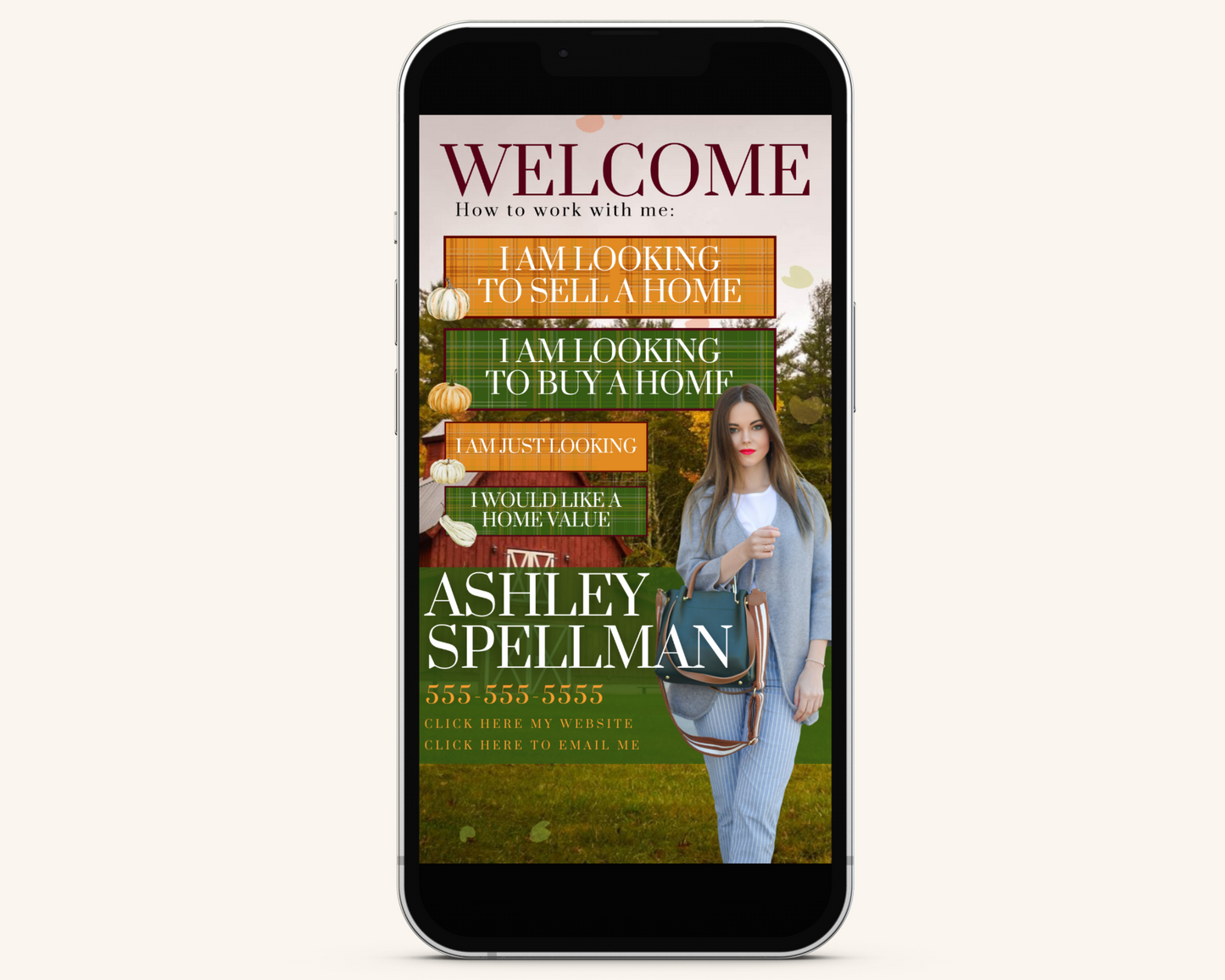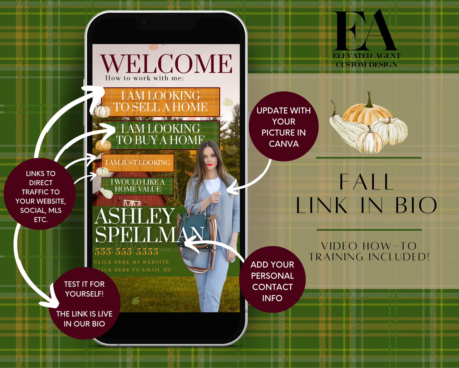 The perfect Link in Bio is here! We have designed a fall template for any real estate agent to use. If you are ready to take your real estate marketing game to the next level, this is beautiful canva template can help you passively lead generate.