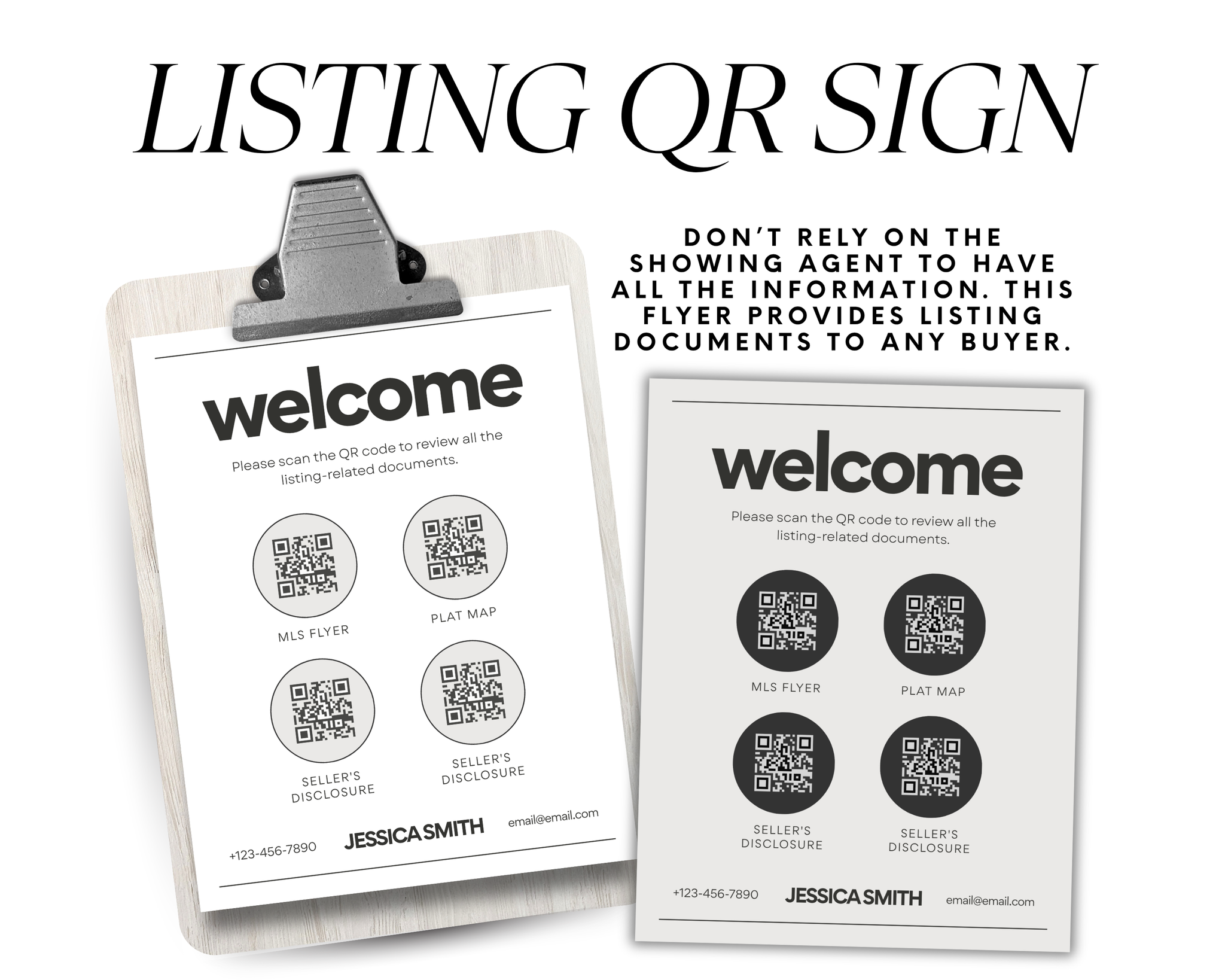 Turn every property into a seamless, self-guided experience with this professionally designed Listing QR Sign Template. Created for real estate marketing, this printable sign allows potential buyers to instantly access property details, virtual tours, or contact information with a quick scan.