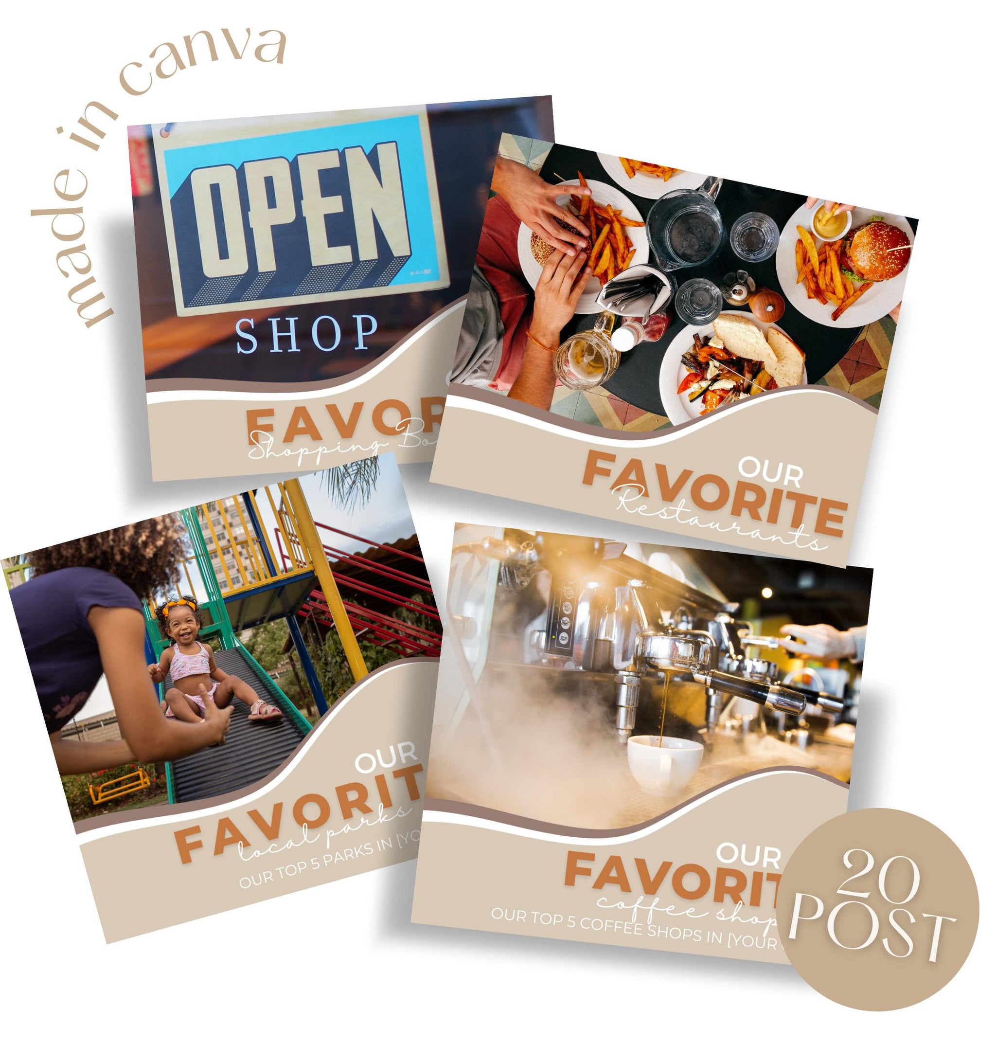 Just take photos of your favorite places and update the images inside of Canva. Don't forget to tag the business when you post for an extra organic boost!