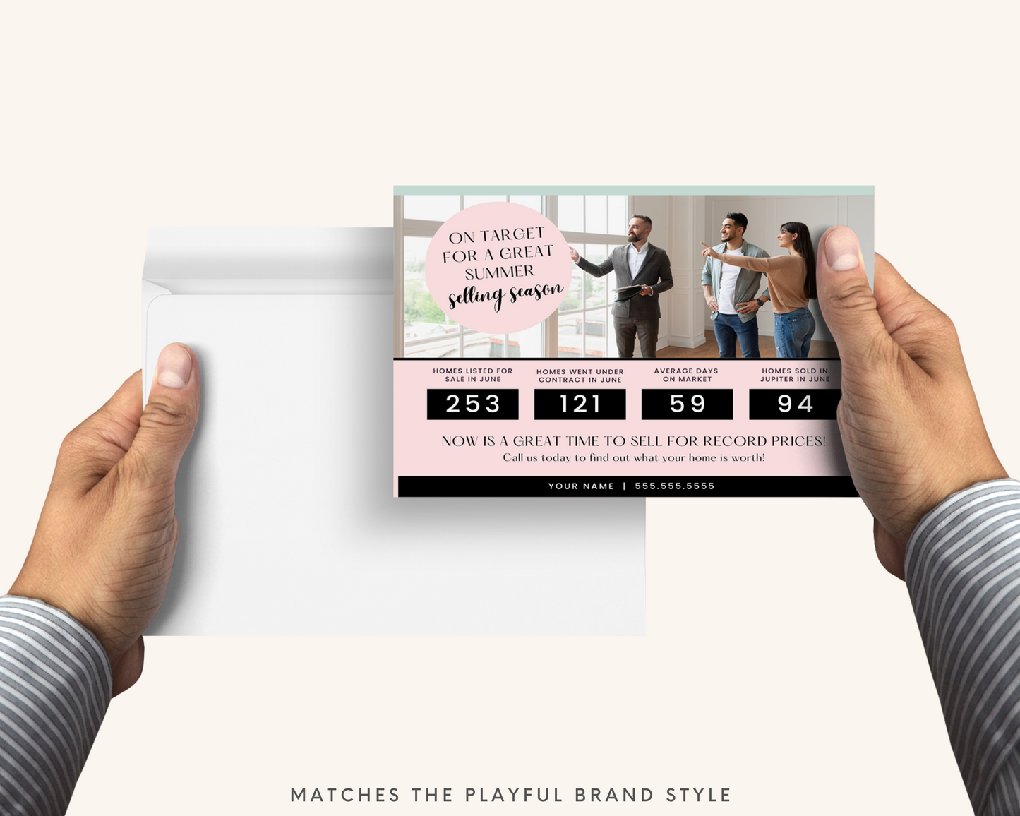 Elevate your Real Estate Marketing with this Market Update Postcard - Playful Brand today.