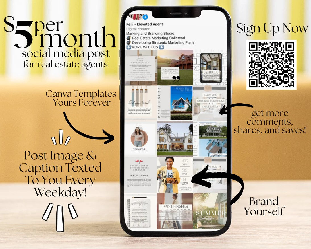 Keep your real estate marketing fresh and updated with this easy-to-use Real Estate Template in Canva designed by Elevated Agent. We stay on top of real estate marketing trends and produce new content daily.