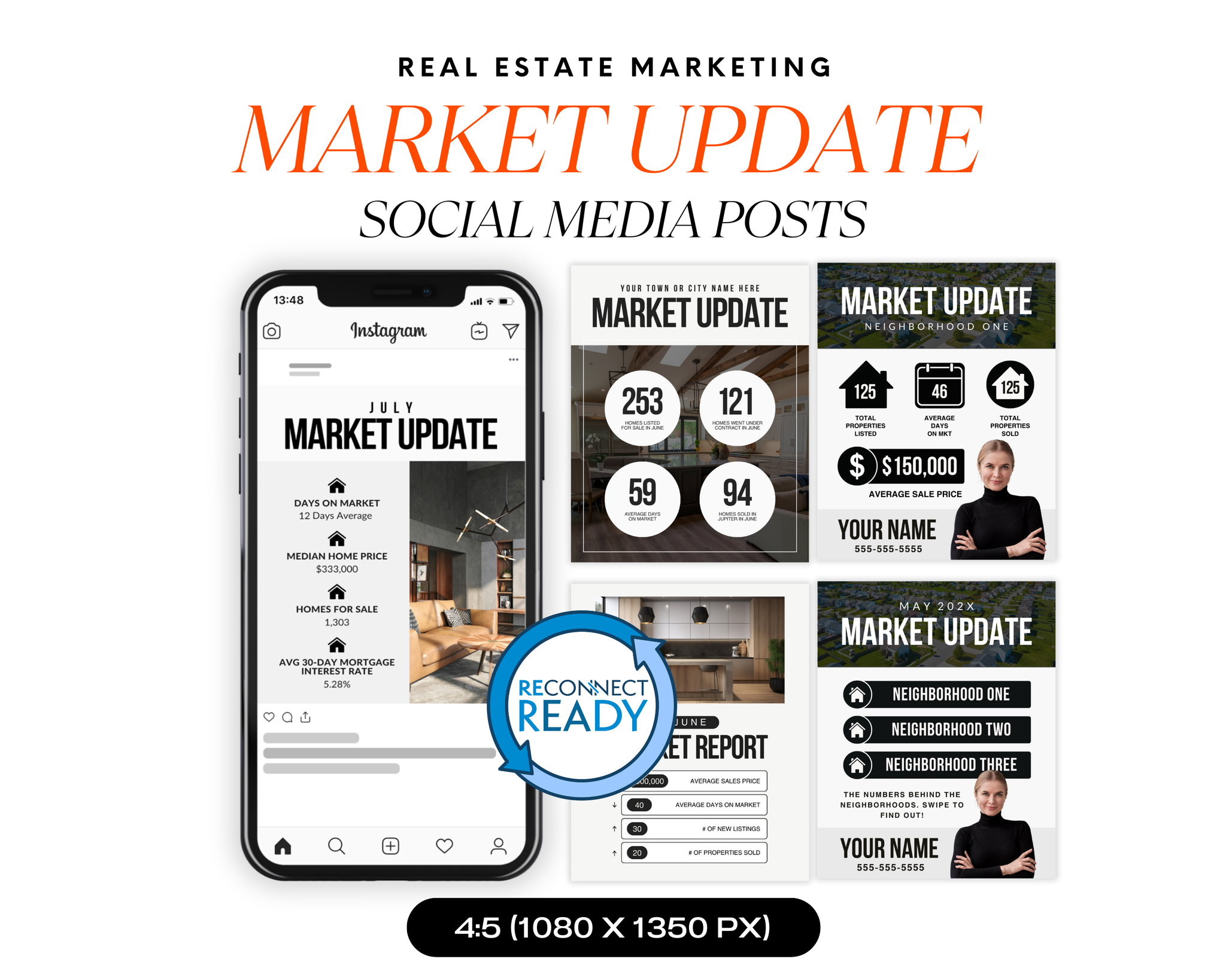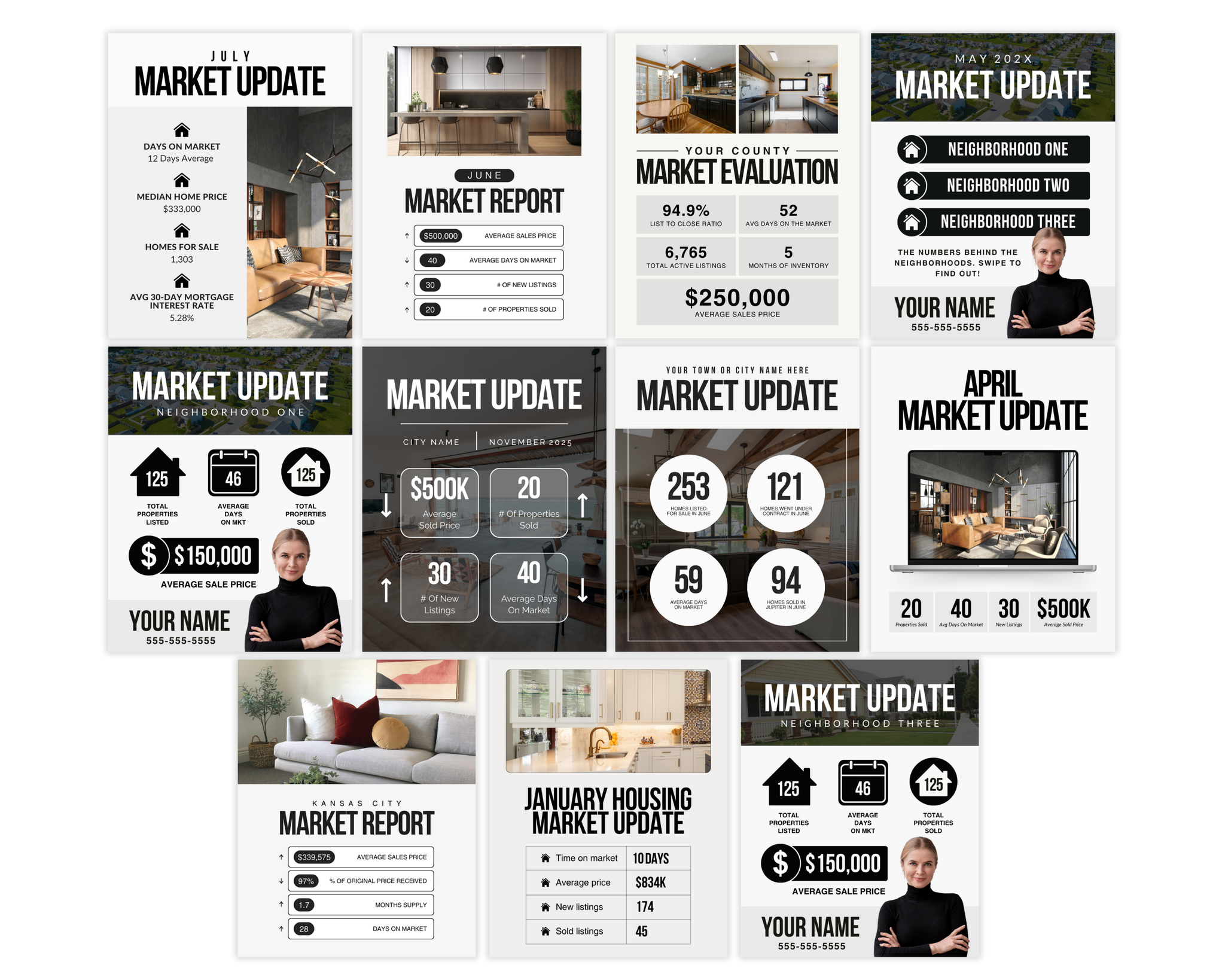 Stay consistent, professional, and informative with this Real Estate Market Update Social Media Template, designed to help you share clear market insights in a visually engaging way. Perfect for monthly or quarterly updates, this template makes it easy to present key market data while keeping your brand front and center.