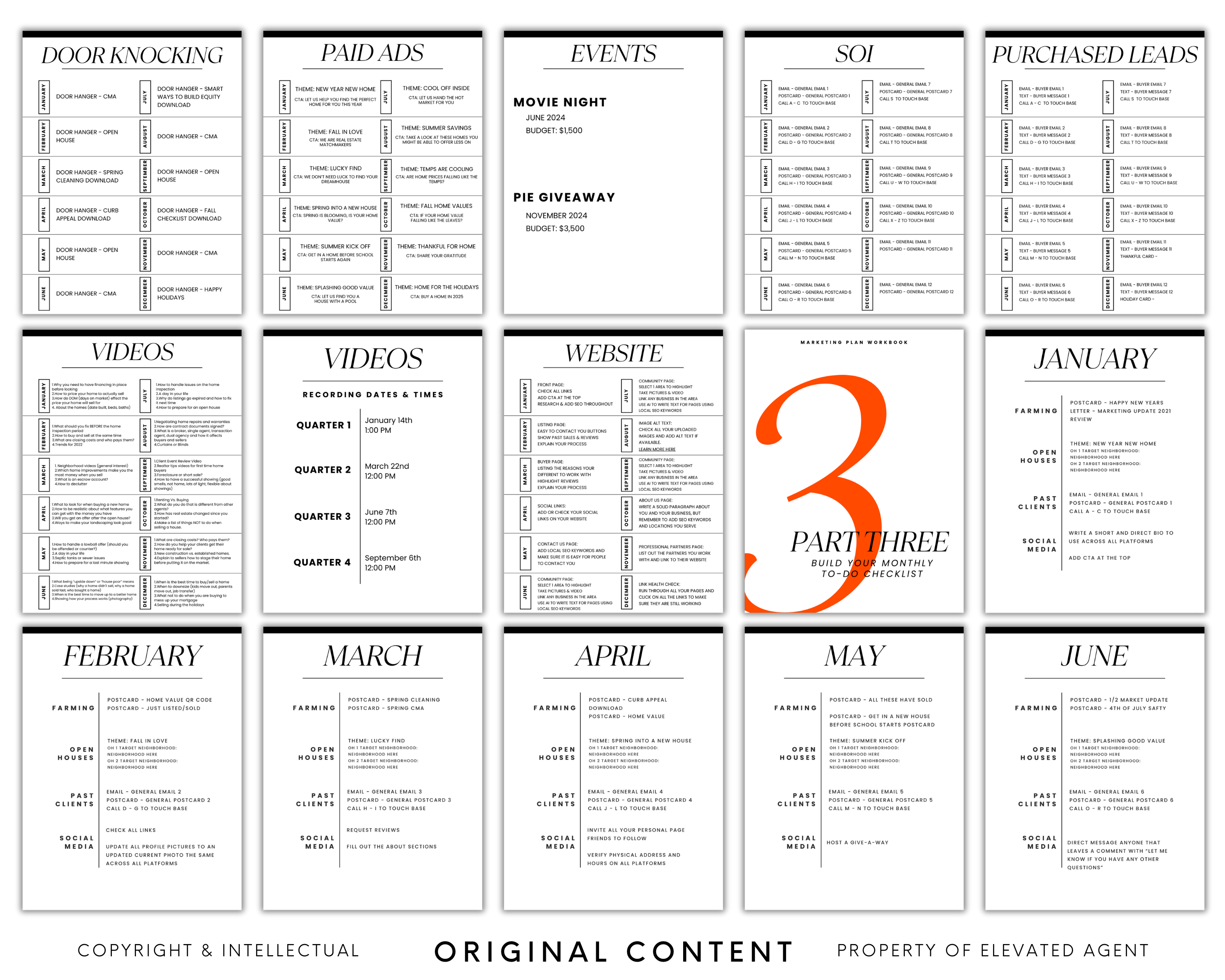 Our comprehensive lookbook perfectly complements our workbook and training video. This lookbook is your secret weapon for quickly implementing high-quality marketing materials into your real estate business.