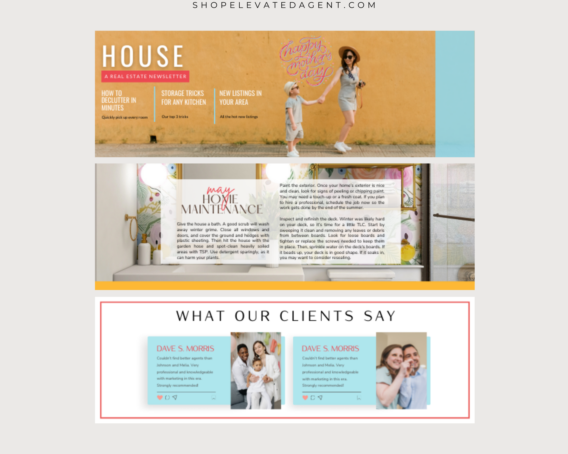 Attention Real Estate Agents! Keep your real estate marketing fresh and updated with this easy-to-use Realtor Newsletter designed by Elevated Agent.
