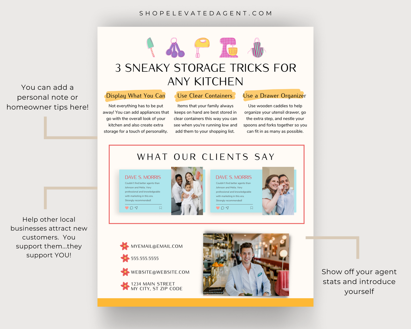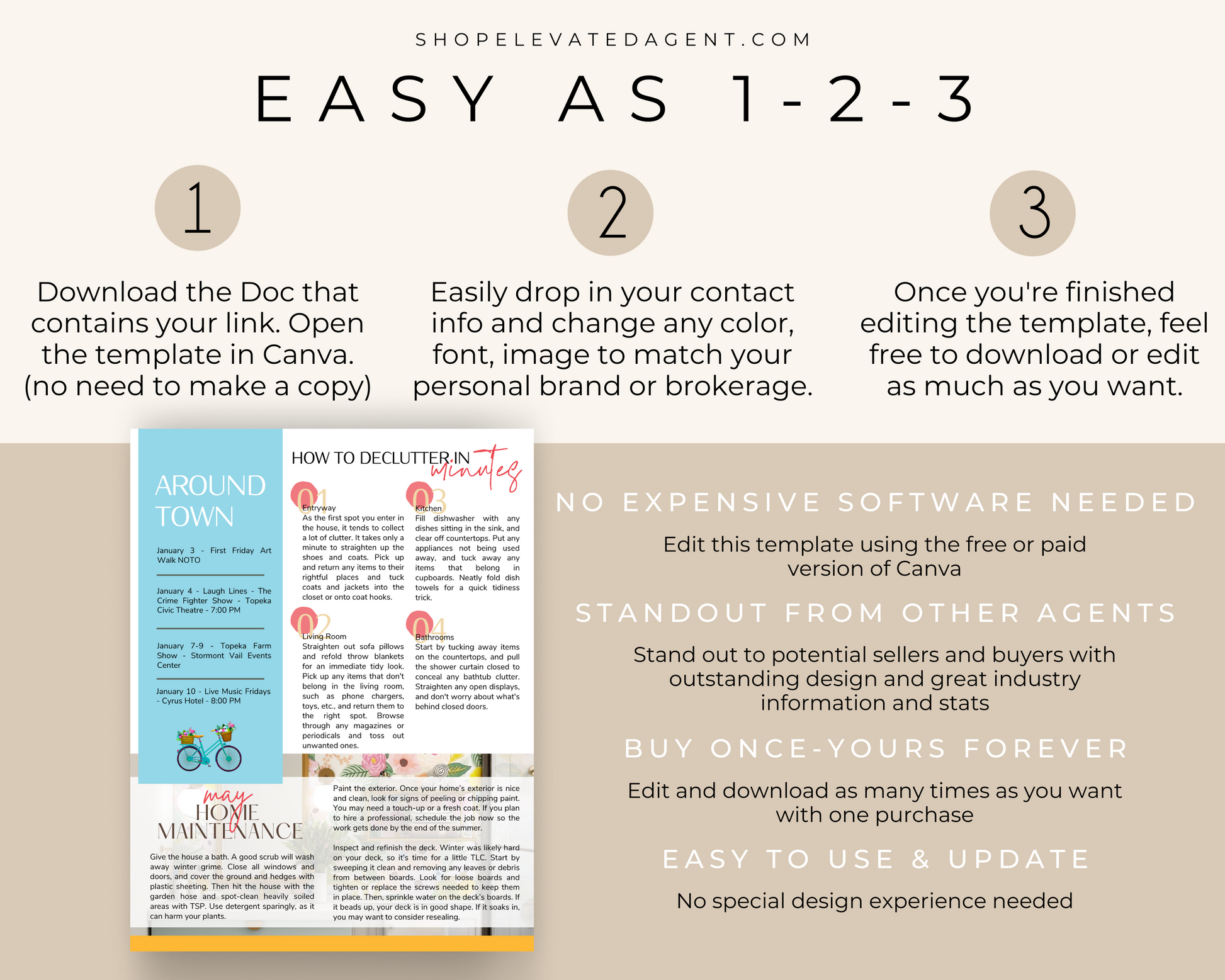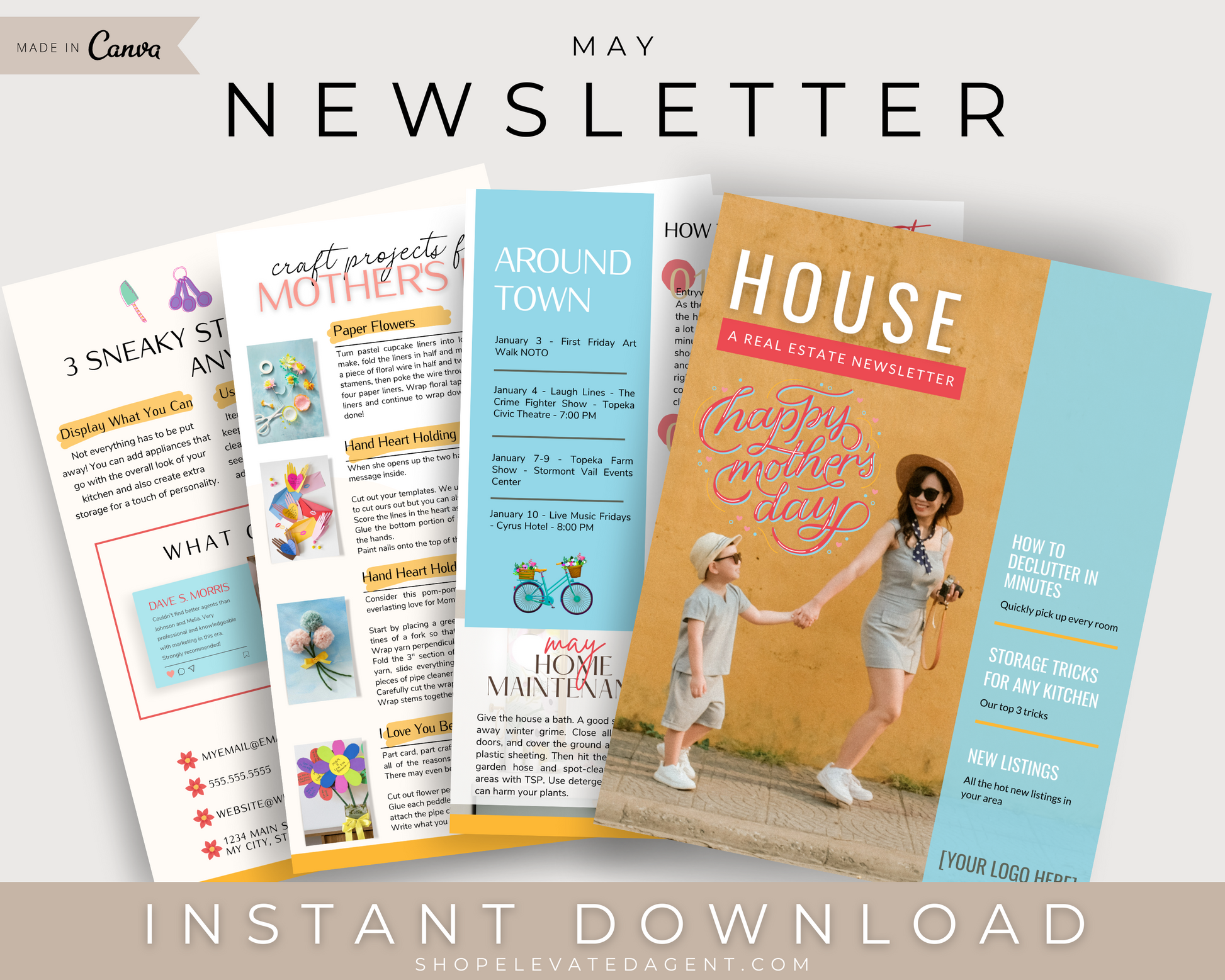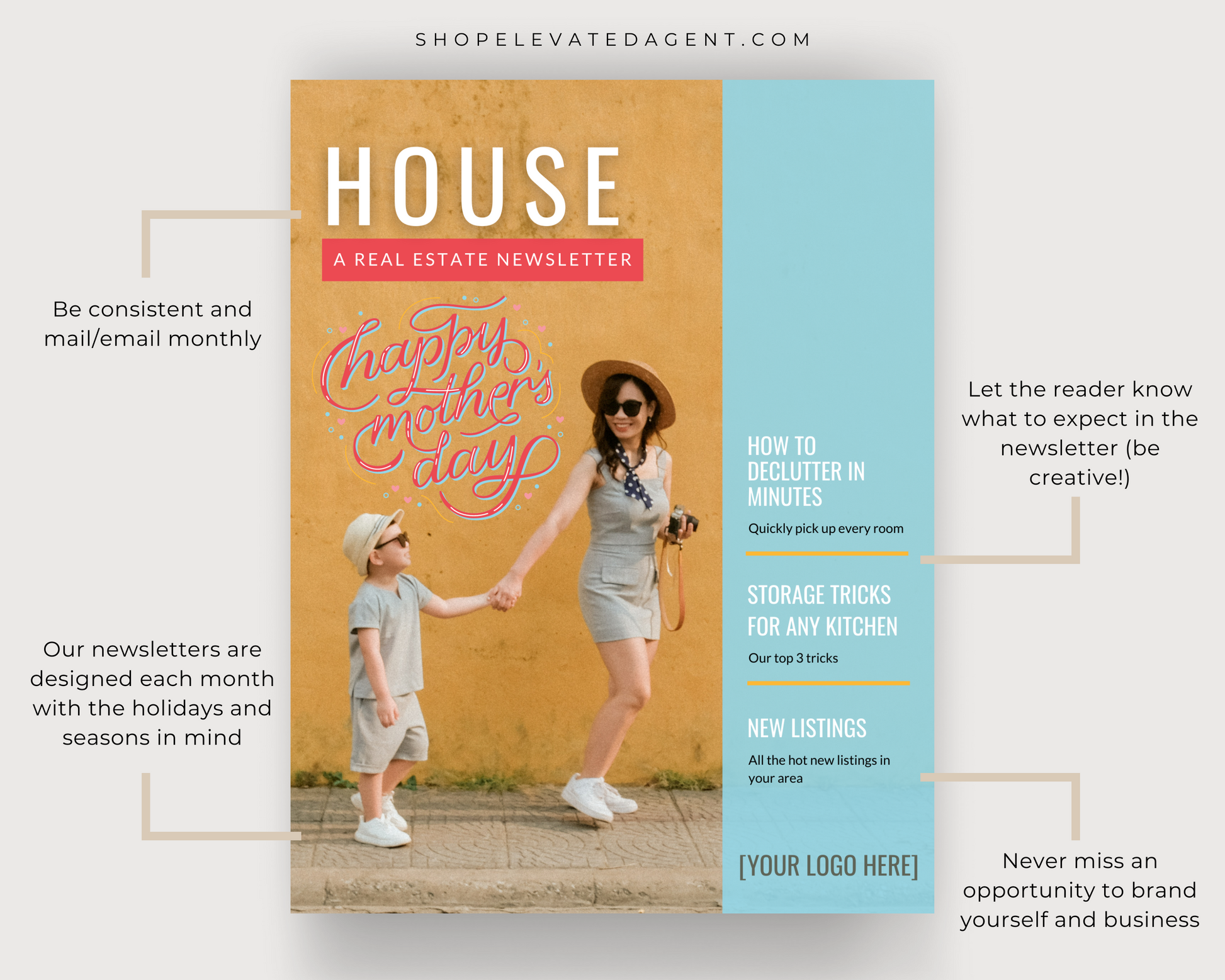 Attention Real Estate Agents! Keep your real estate marketing fresh and updated with this easy-to-use Realtor Newsletter designed by Elevated Agent. You can print and mail to a farm, email it to your database, or hand it out at events and open houses!