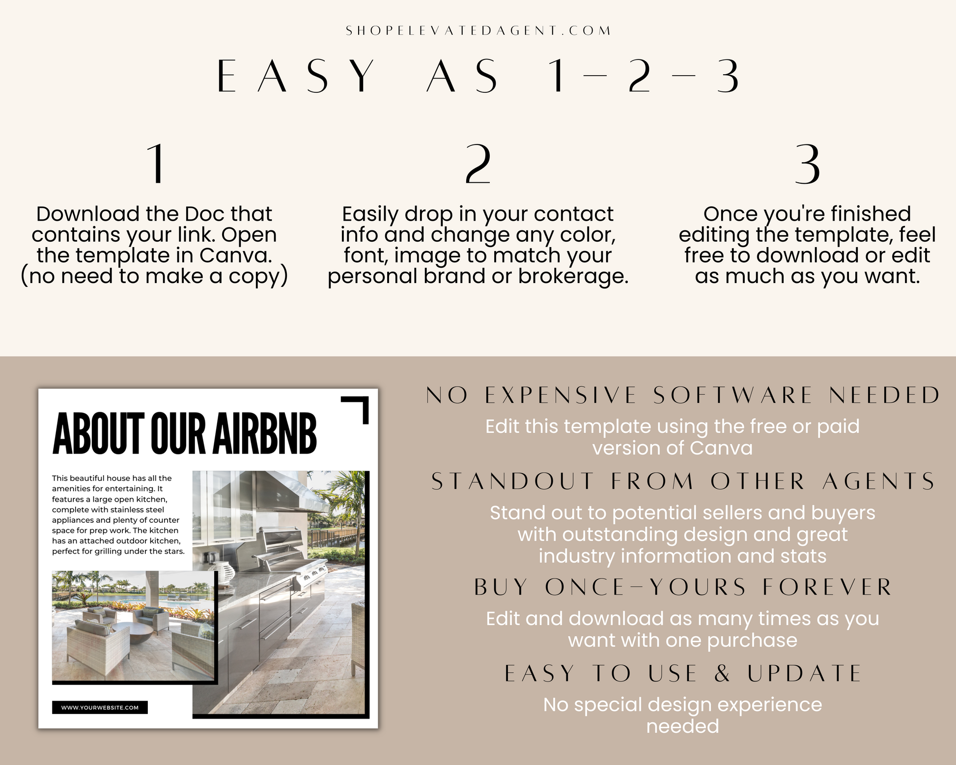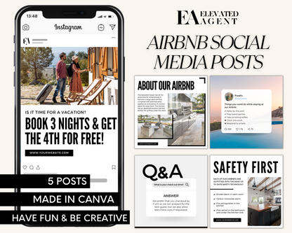Attention Real Estate Agents! Use this Real Estate Template – Minimal Airbnb Social Media Posts 4 to promote an Airbnb short term rental property on social media. Take the guesswork out of what to post every day and use these easy-to-edit templates to promote your property.