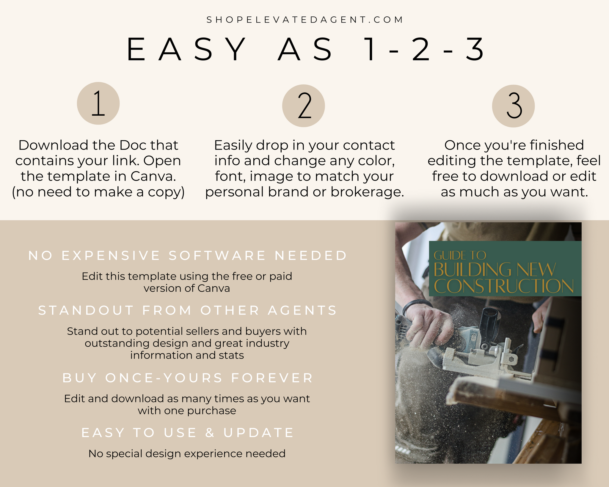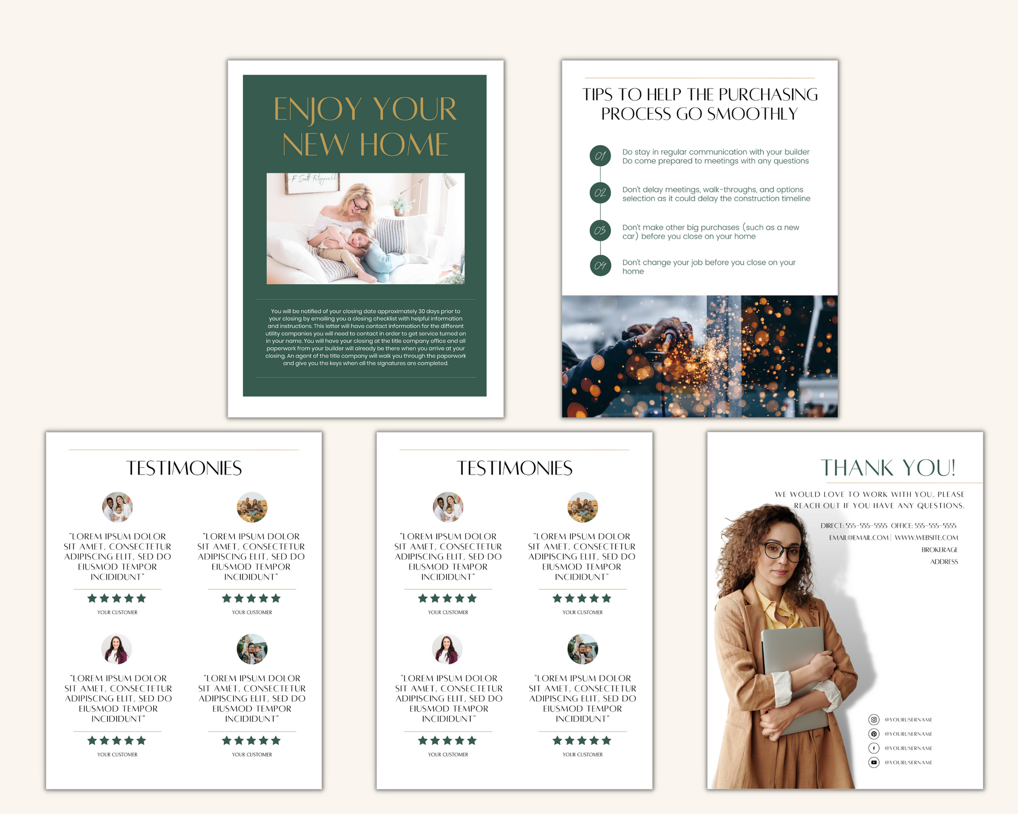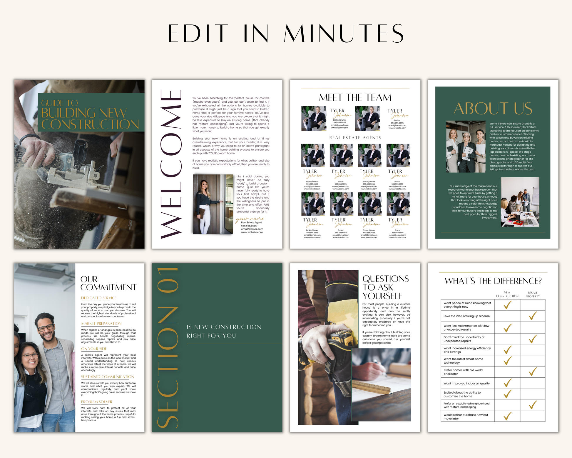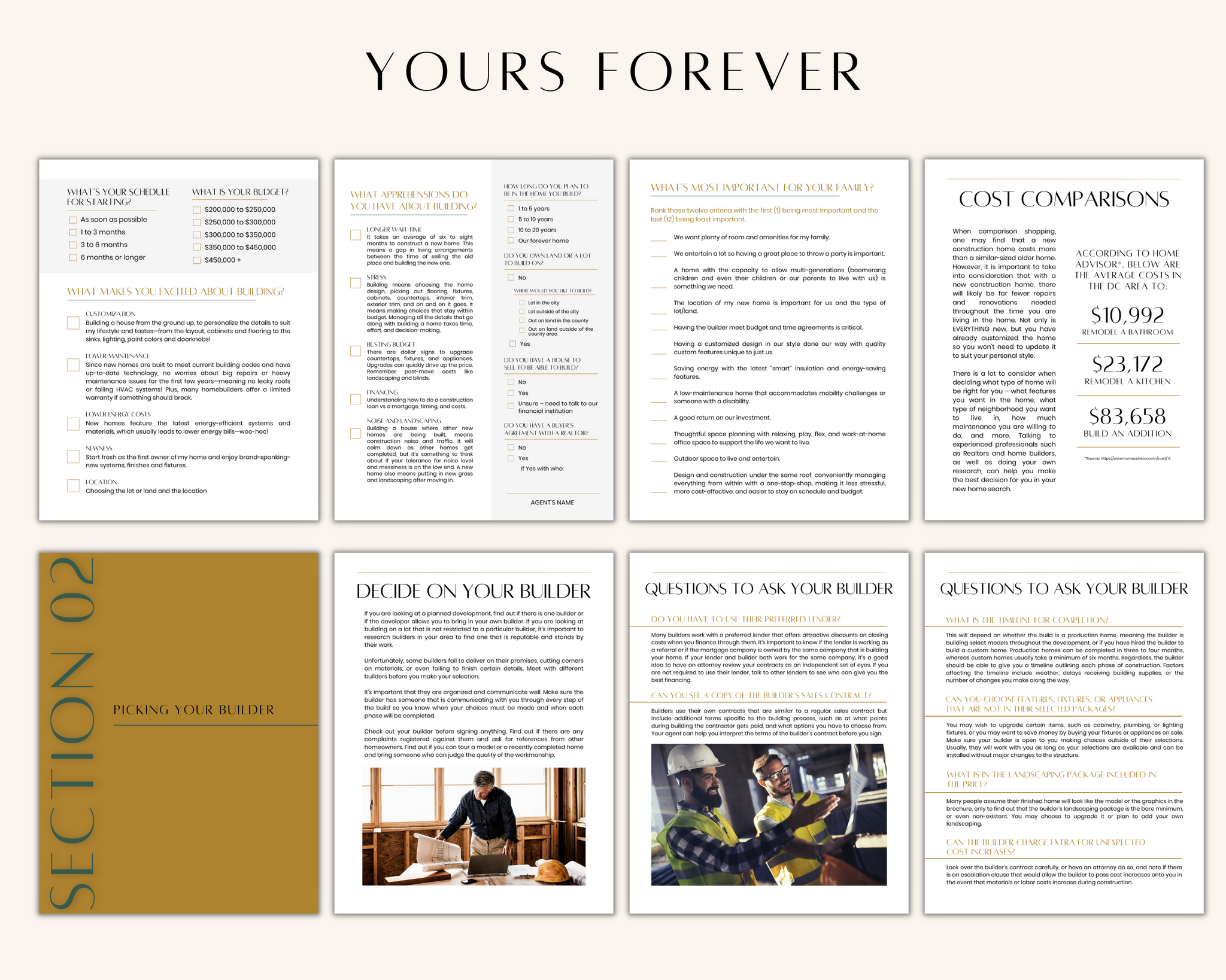 Real Estate Agents: never have a client that is confused about the home building process ever again! This real estate guide will that your buyers from the first step of building a new home to closing day. Take all the confusion out of the process and have beautiful real estate marketing pieces to brand yourself as well!