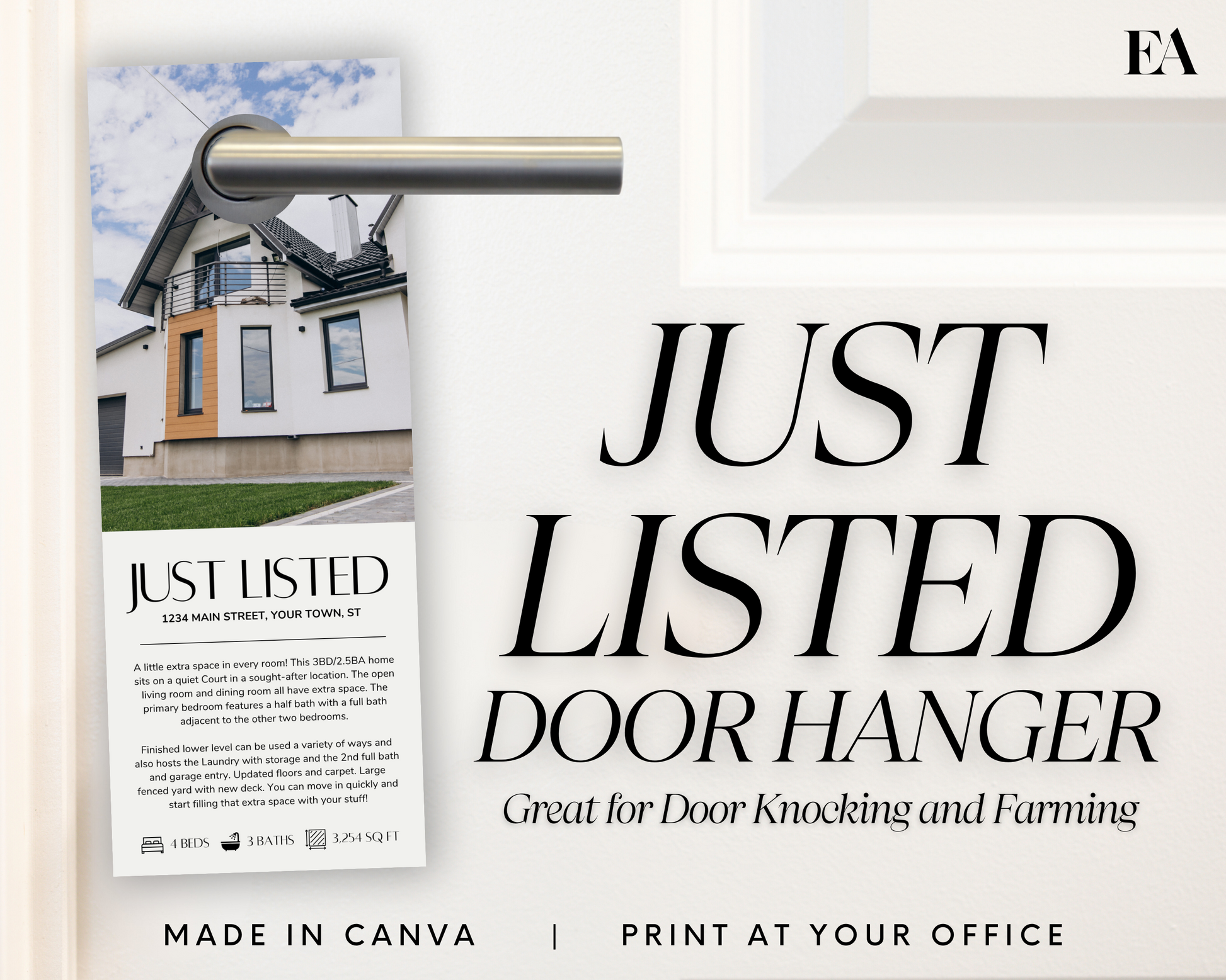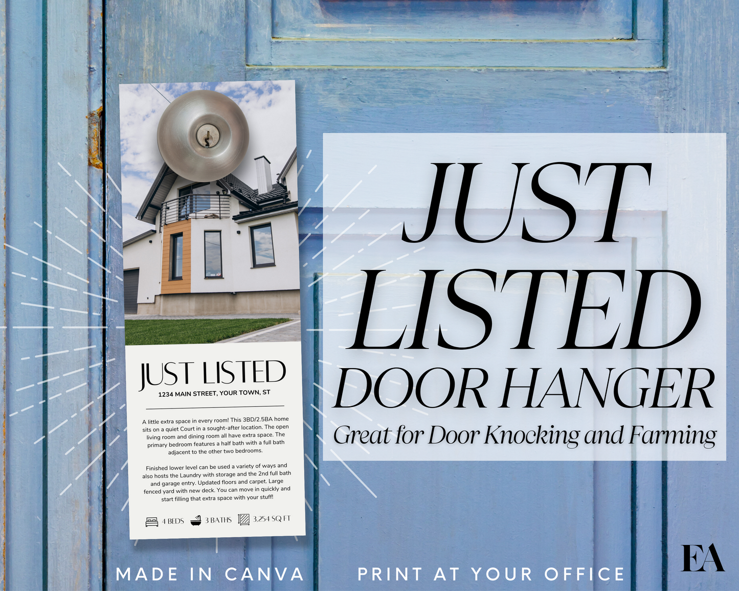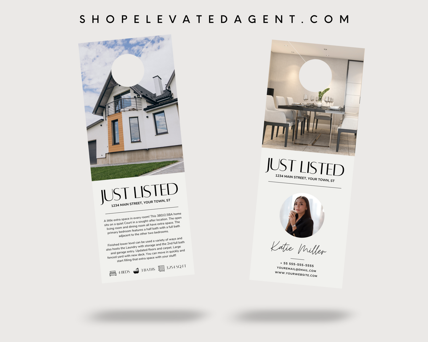 Boost your visibility, gain more listings, and win over new clients with our exceptional Just Listed and Just Sold door hangers. Embrace the power of first-hand engagement and watch your real estate business soar to new heights.