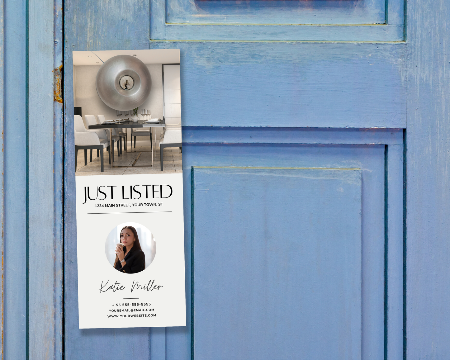 Make a lasting impression in your neighborhood with our beautifully designed door hangers – the perfect marketing tool for real estate agents! Whether you're announcing a Just Listed property or celebrating a successful Just Sold deal, or open house, our eye-catching door hanger templates will turn heads and generate leads.