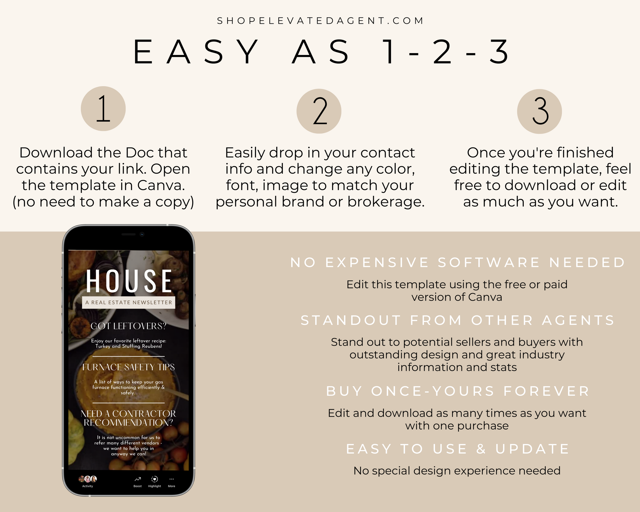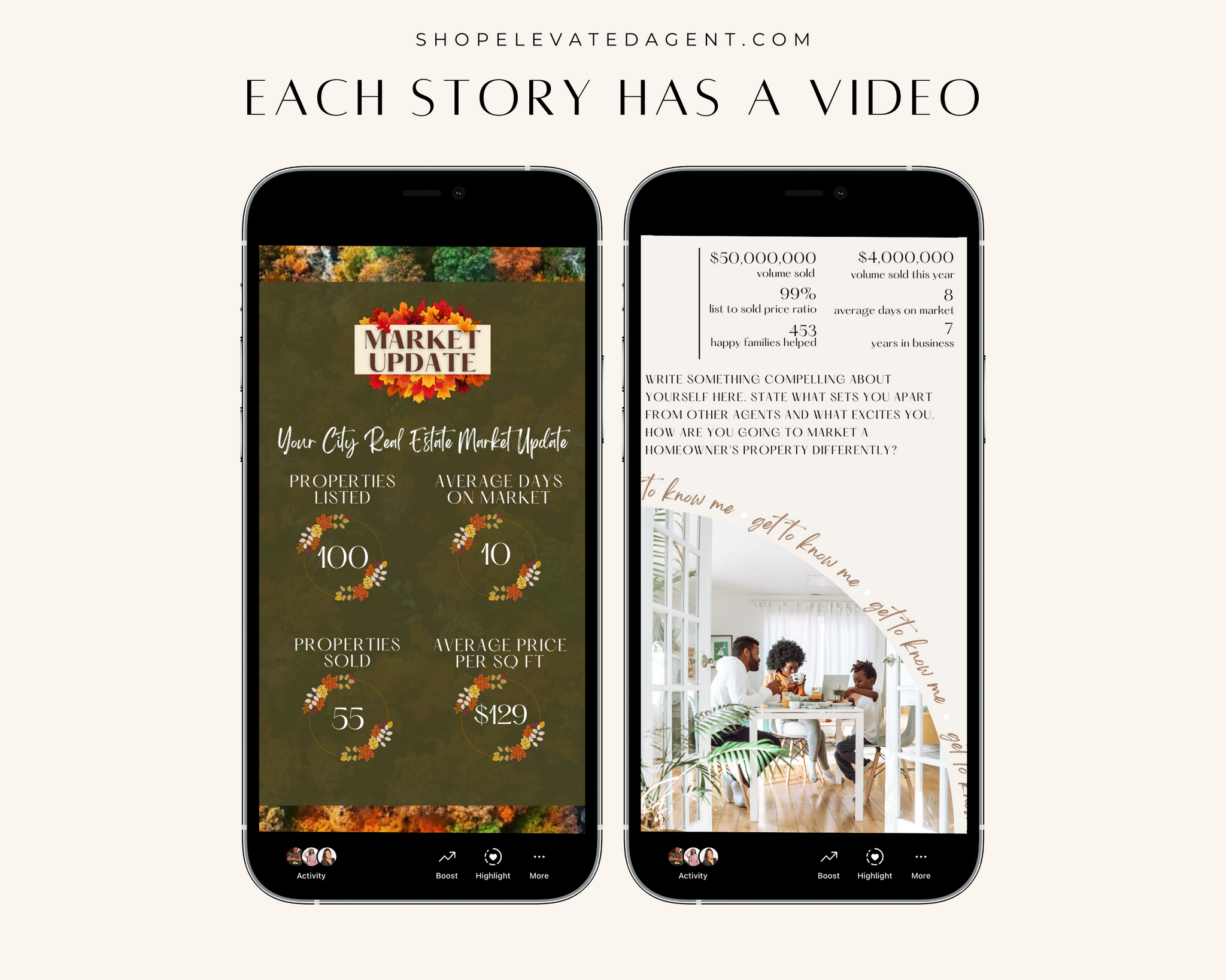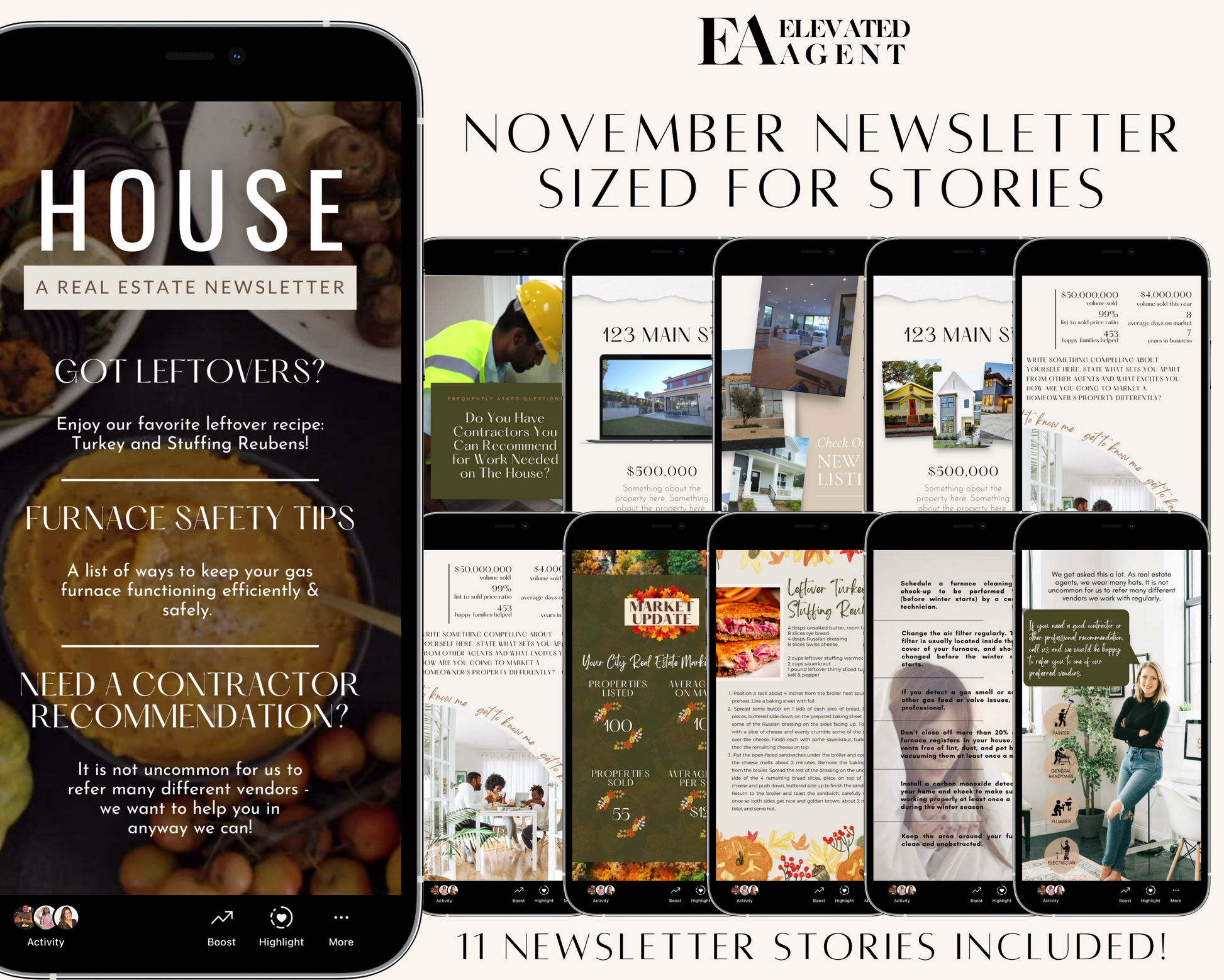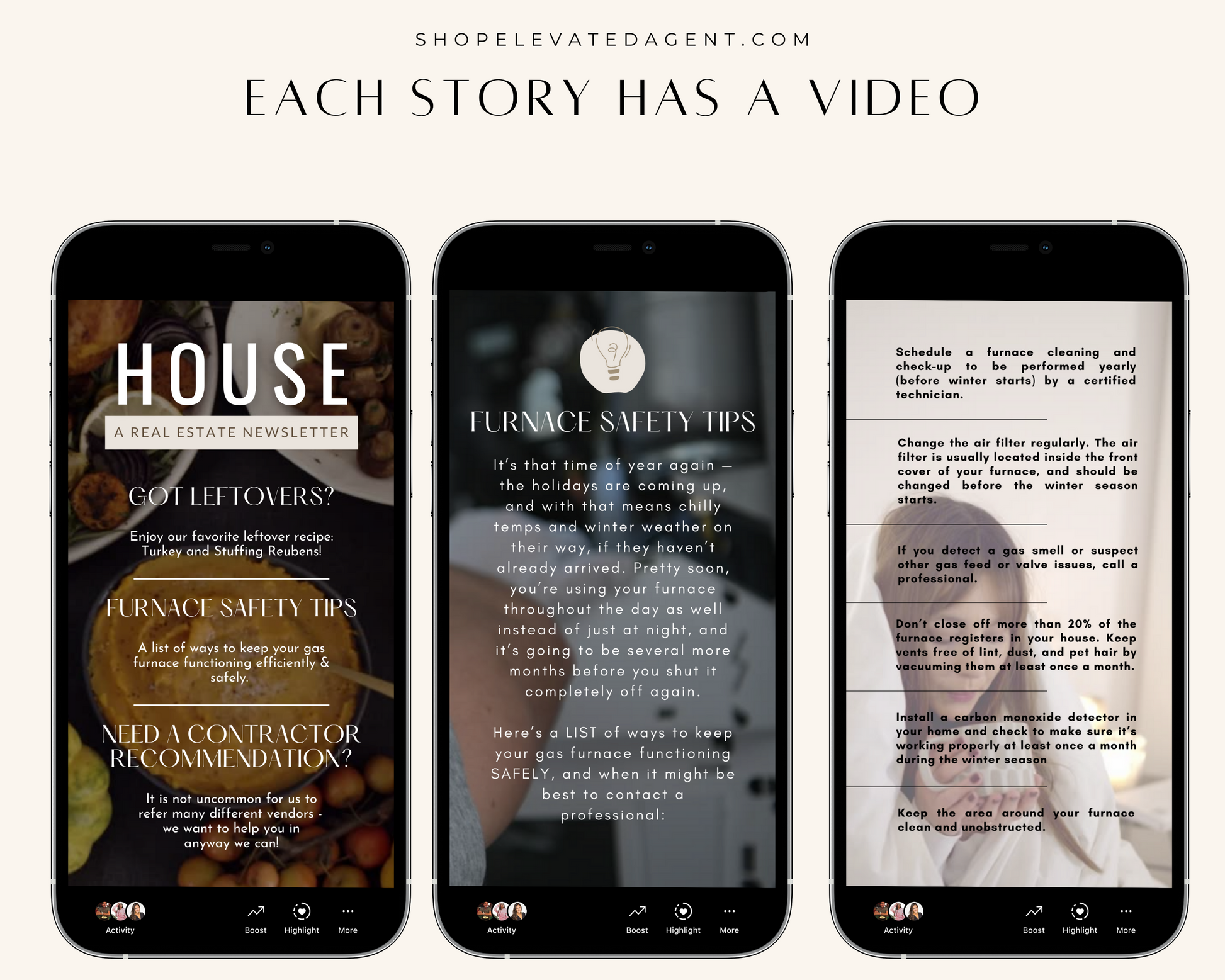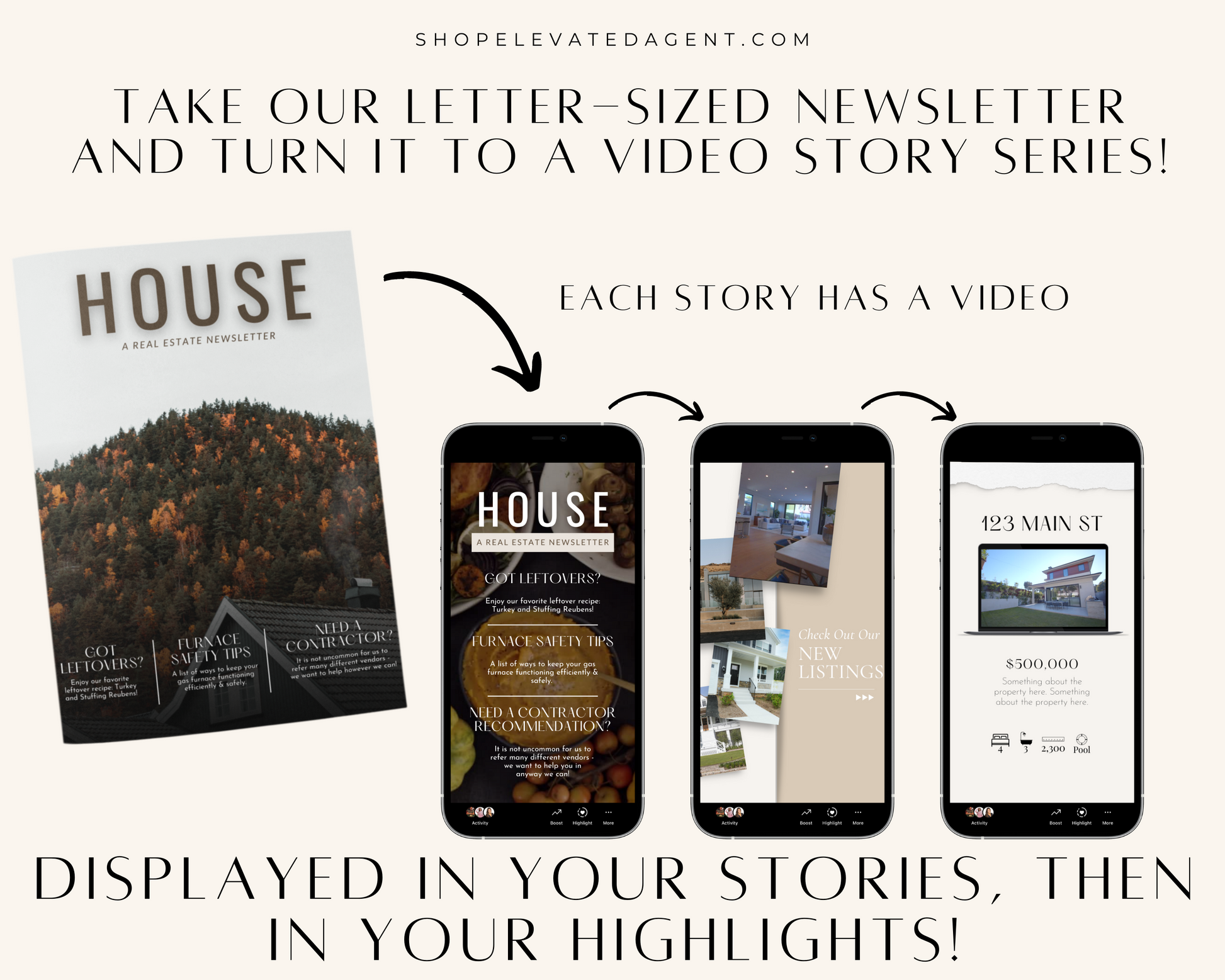 Attention Real Estate Agents! Keep your real estate marketing fresh and updated with this easy-to-use Realtor Instagram Story Newsletter designed by Elevated Agent. We stay on top of real estate marketing trends and produce new content daily.