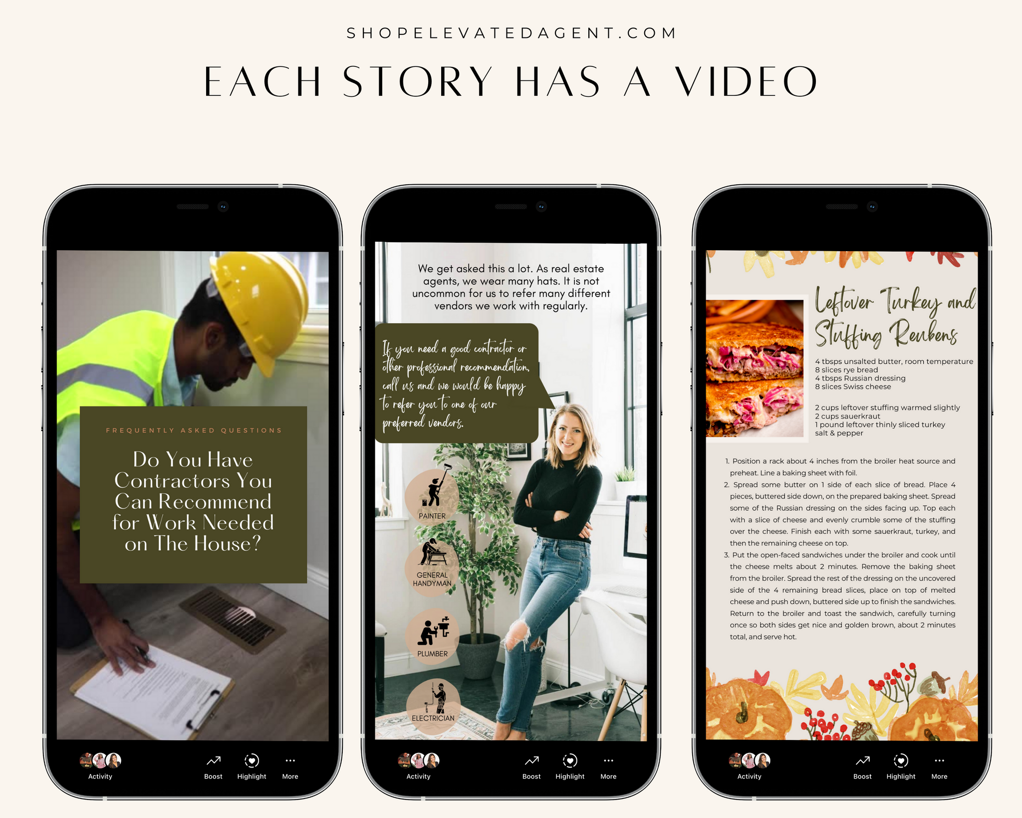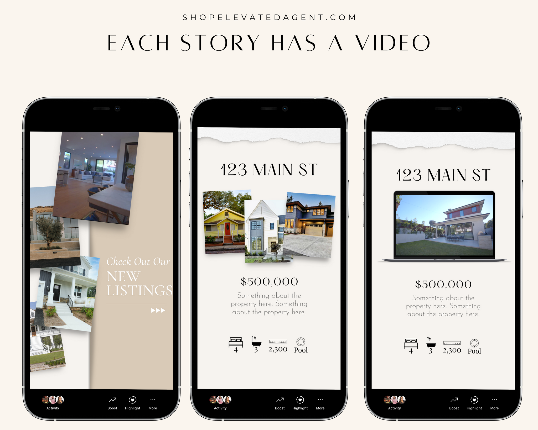 These are sized perfectly for your Real Estate Instagram and Real Estate Facebook Stories.
