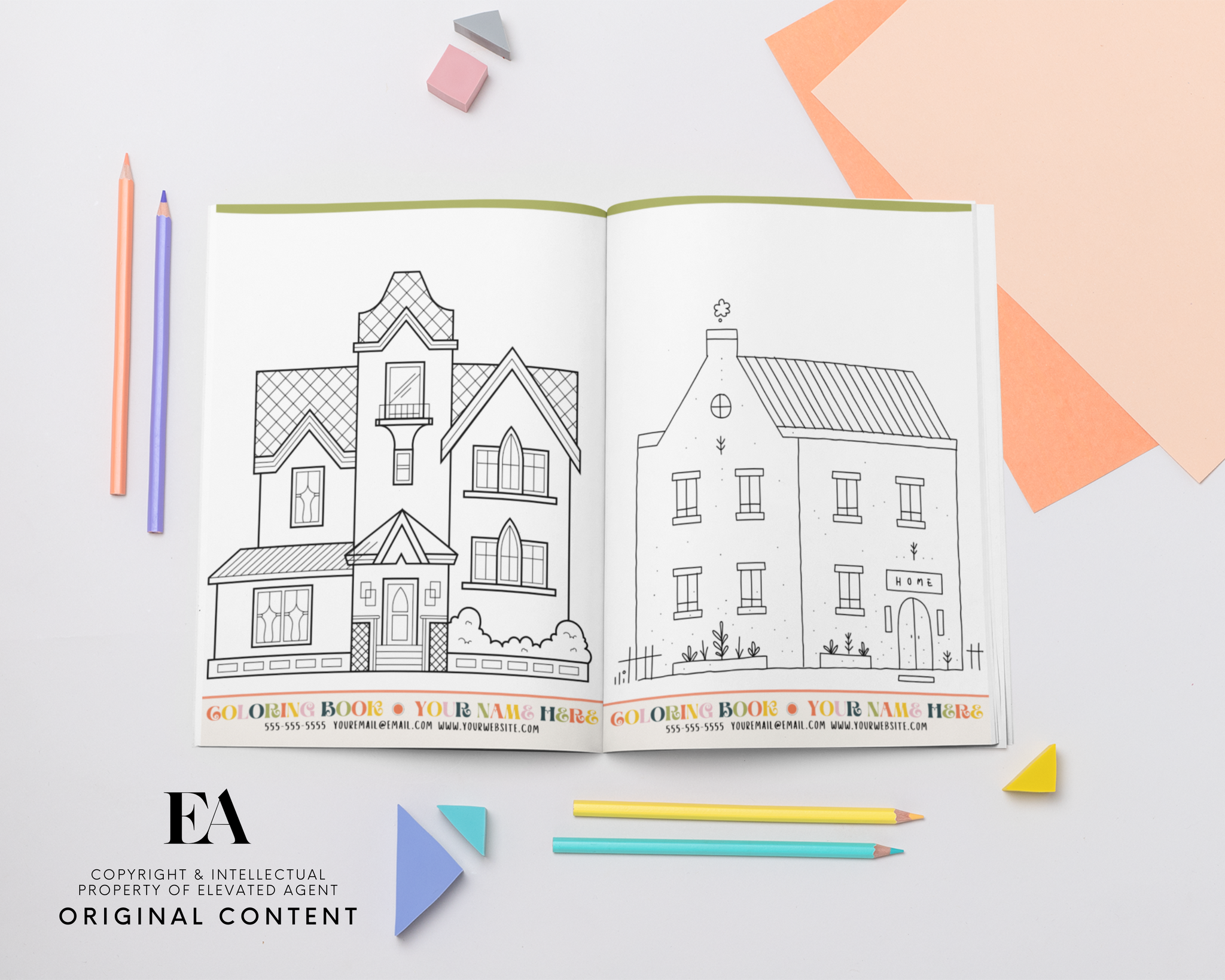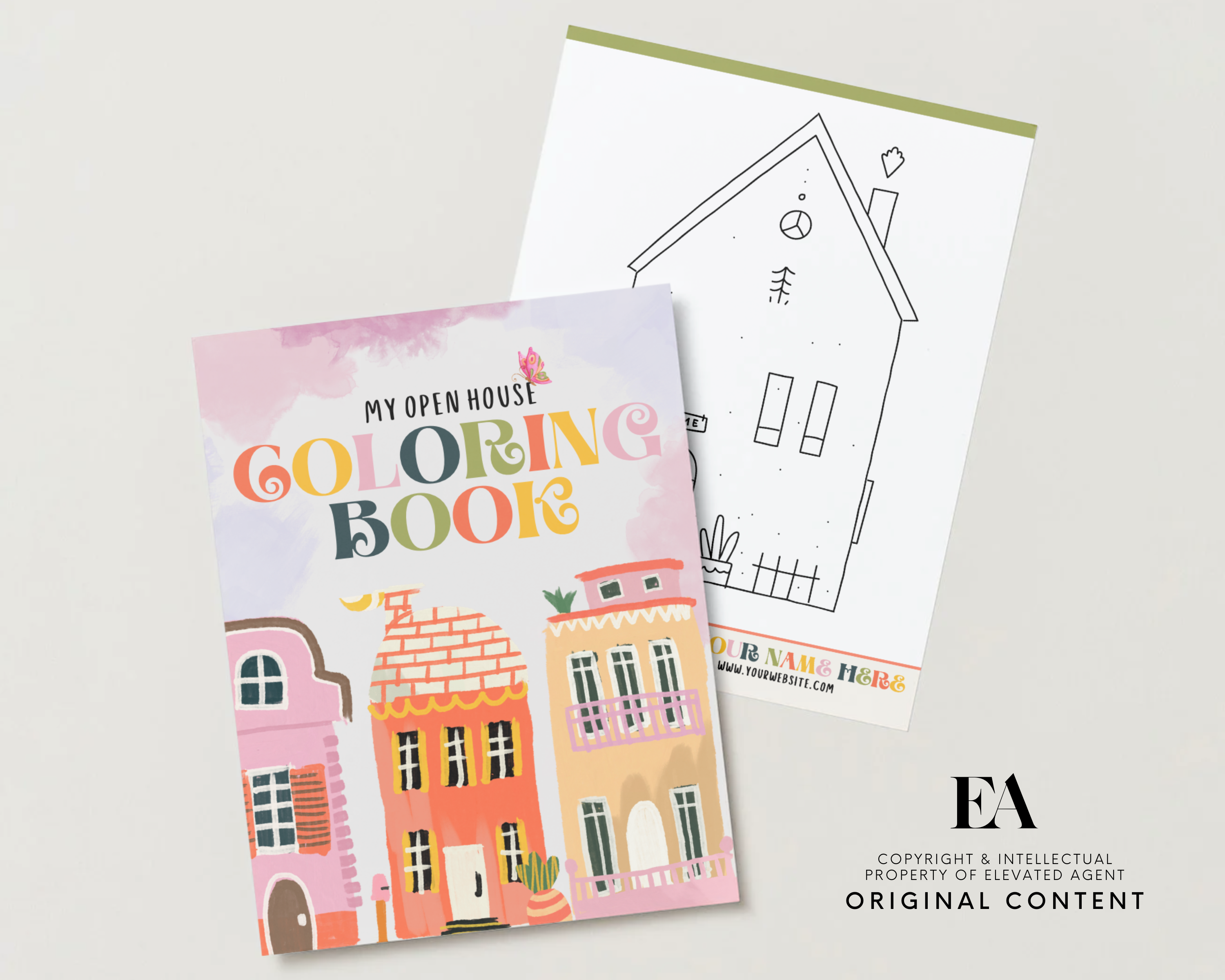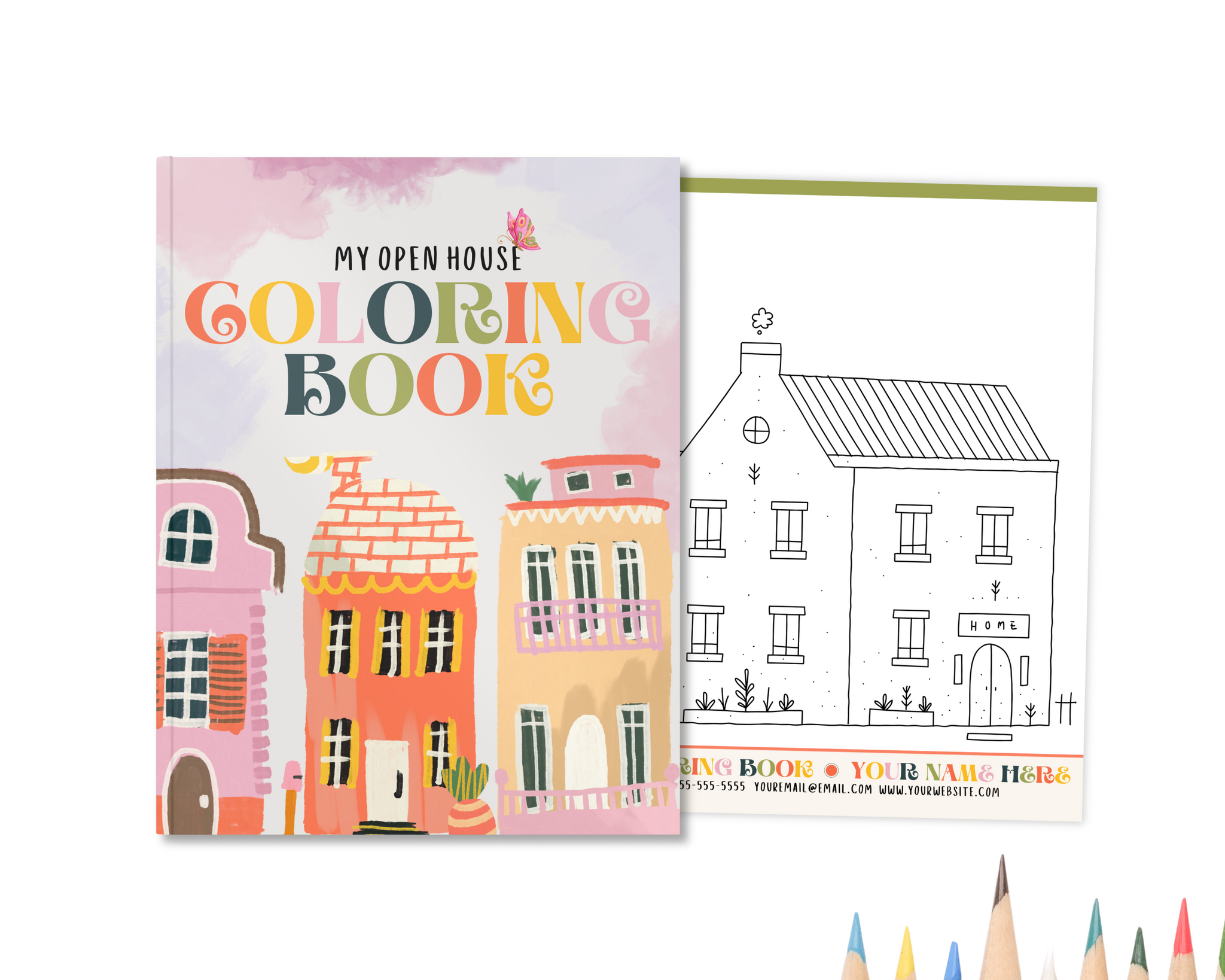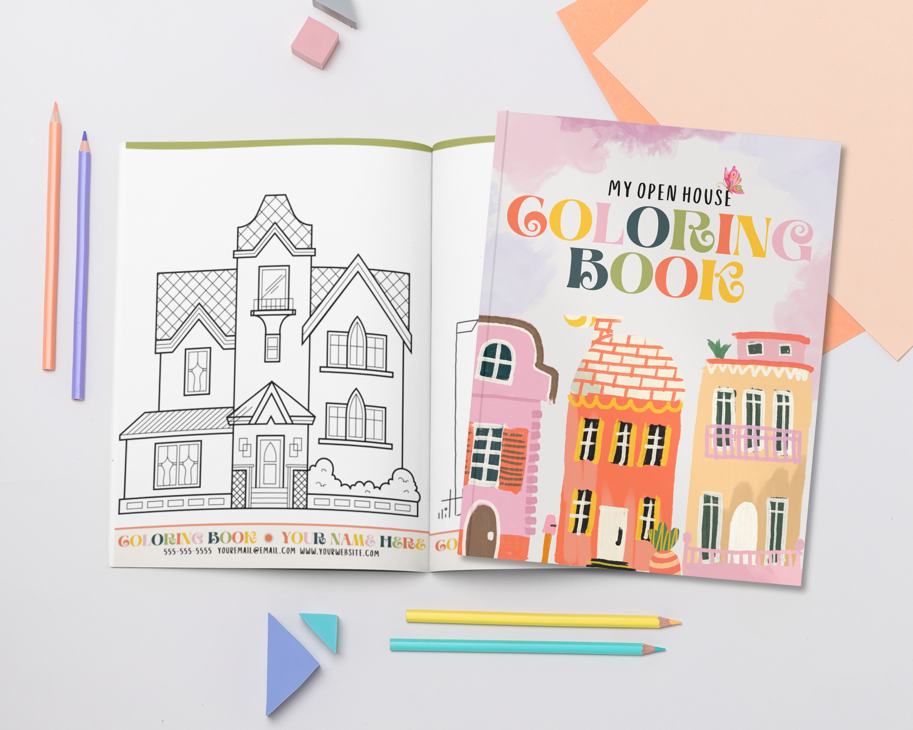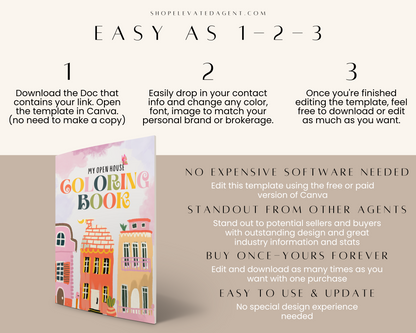 Give the kids something to do at a real estate open house! I love to print these and leave them in the living room while I host an open house. The kids can color and take them home with them, every page has your branding on it so they never forget :)