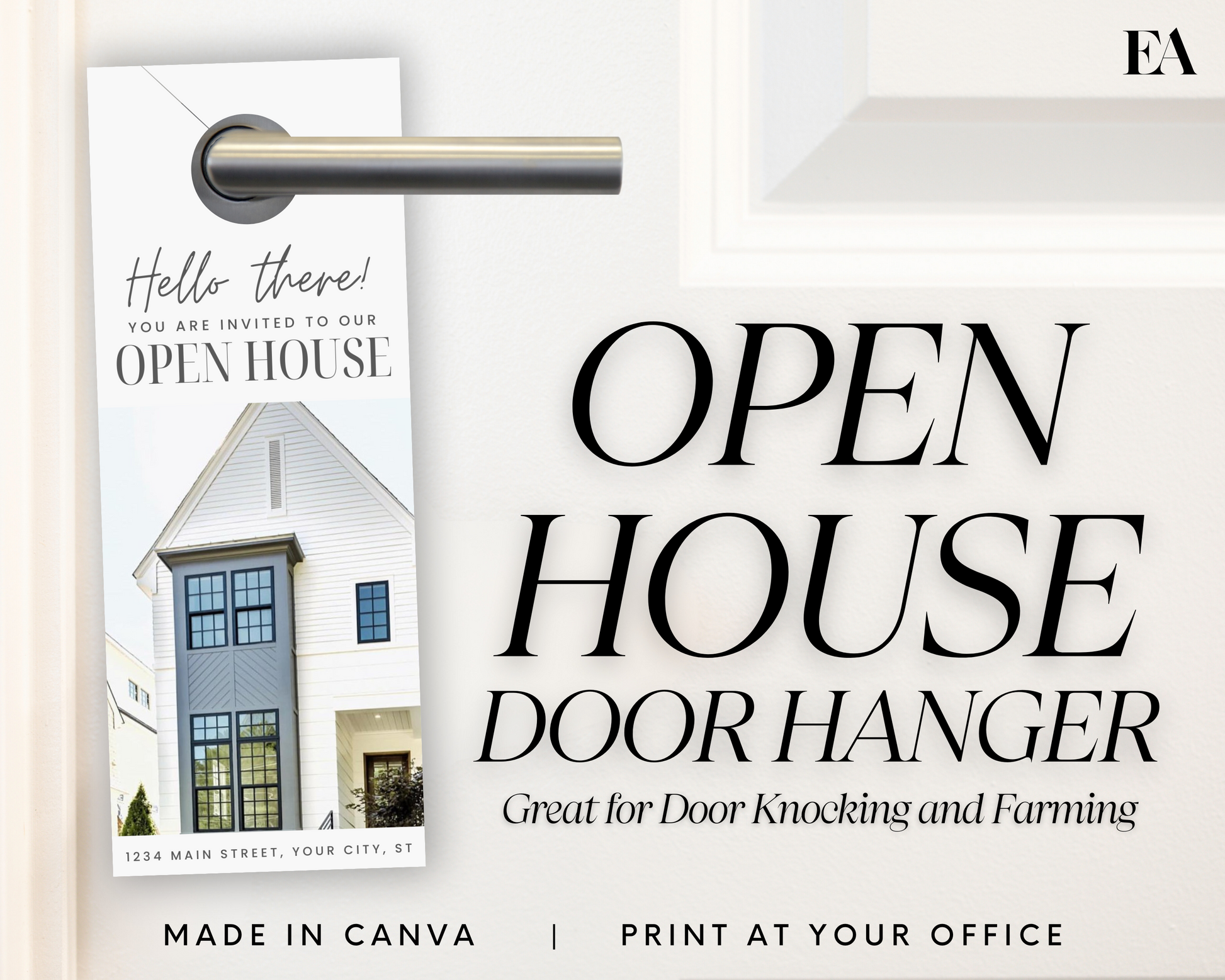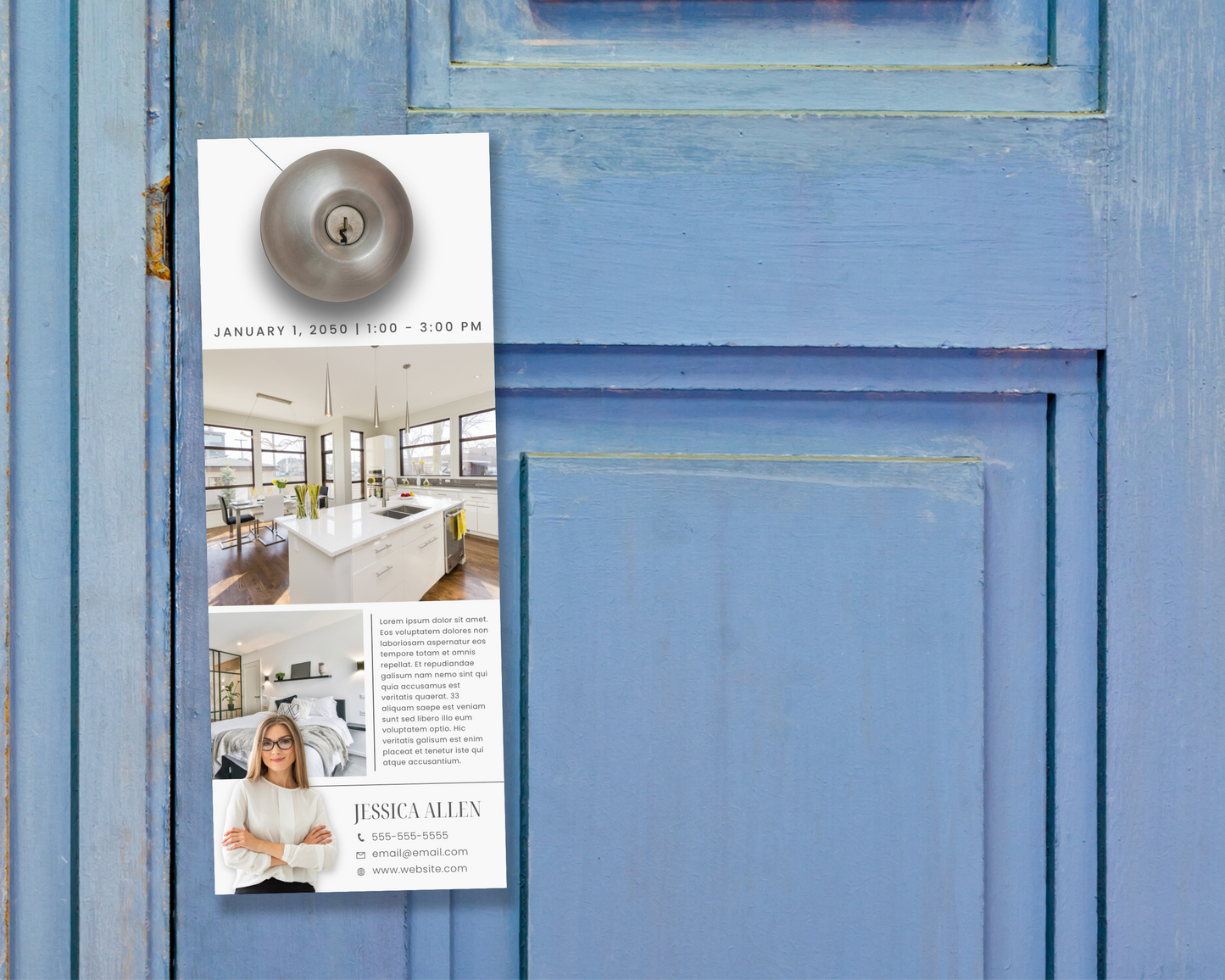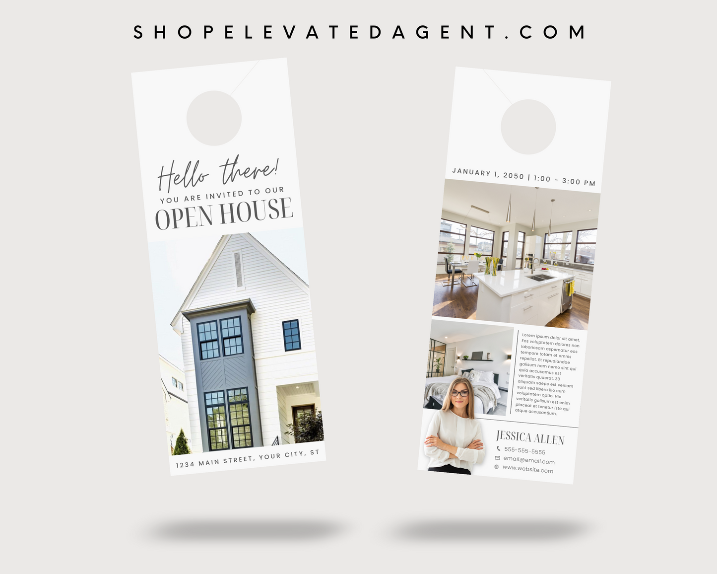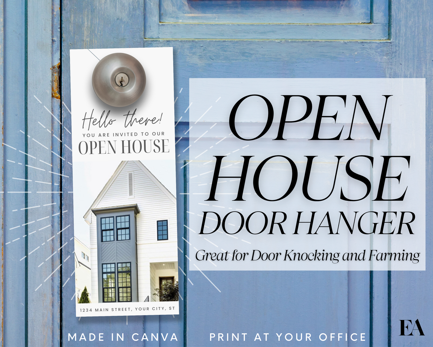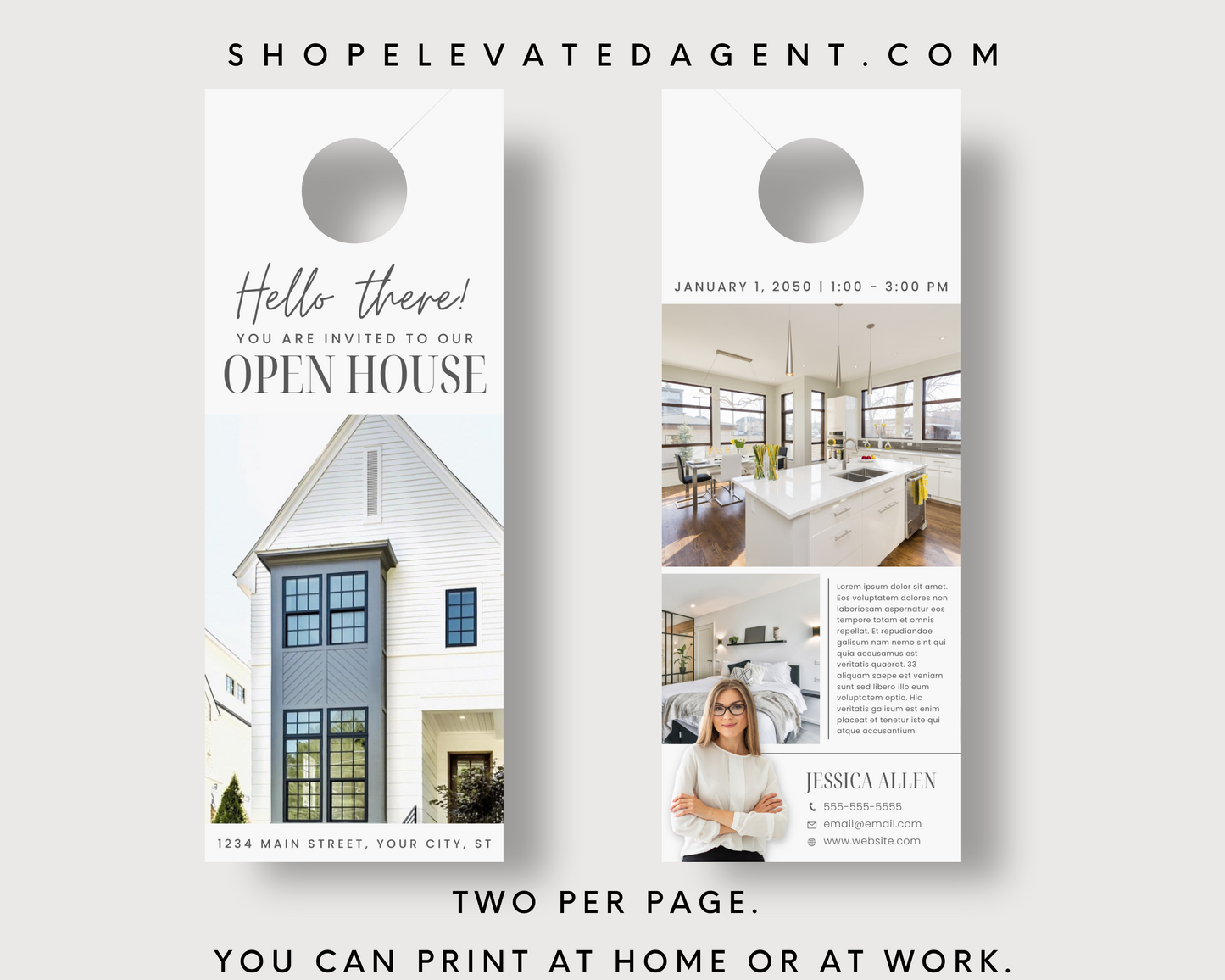Make a lasting impression on potential buyers and sellers with our stunning Open House Door Hanger for Real Estate. Elevate your real estate marketing game and stand out from the competition with our professionally designed, printable door hangers.