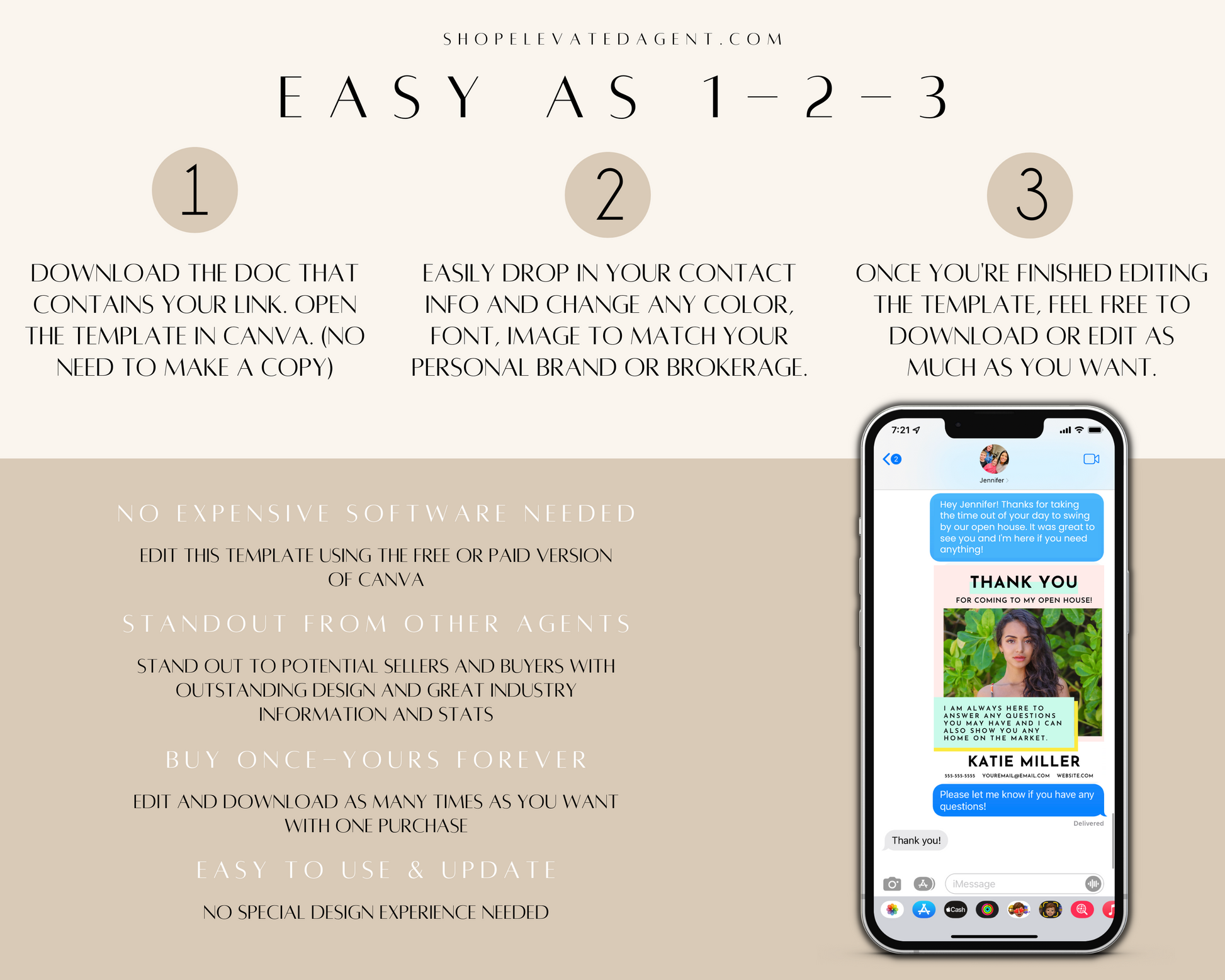 Attention Real Estate Agents! Keep your real estate marketing fresh and updated with this easy-to-use Realtor Canva Template designed by Elevated Agent. We stay on top of real estate marketing trends and produce new content daily.