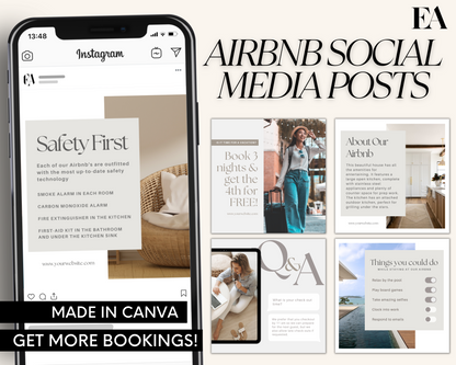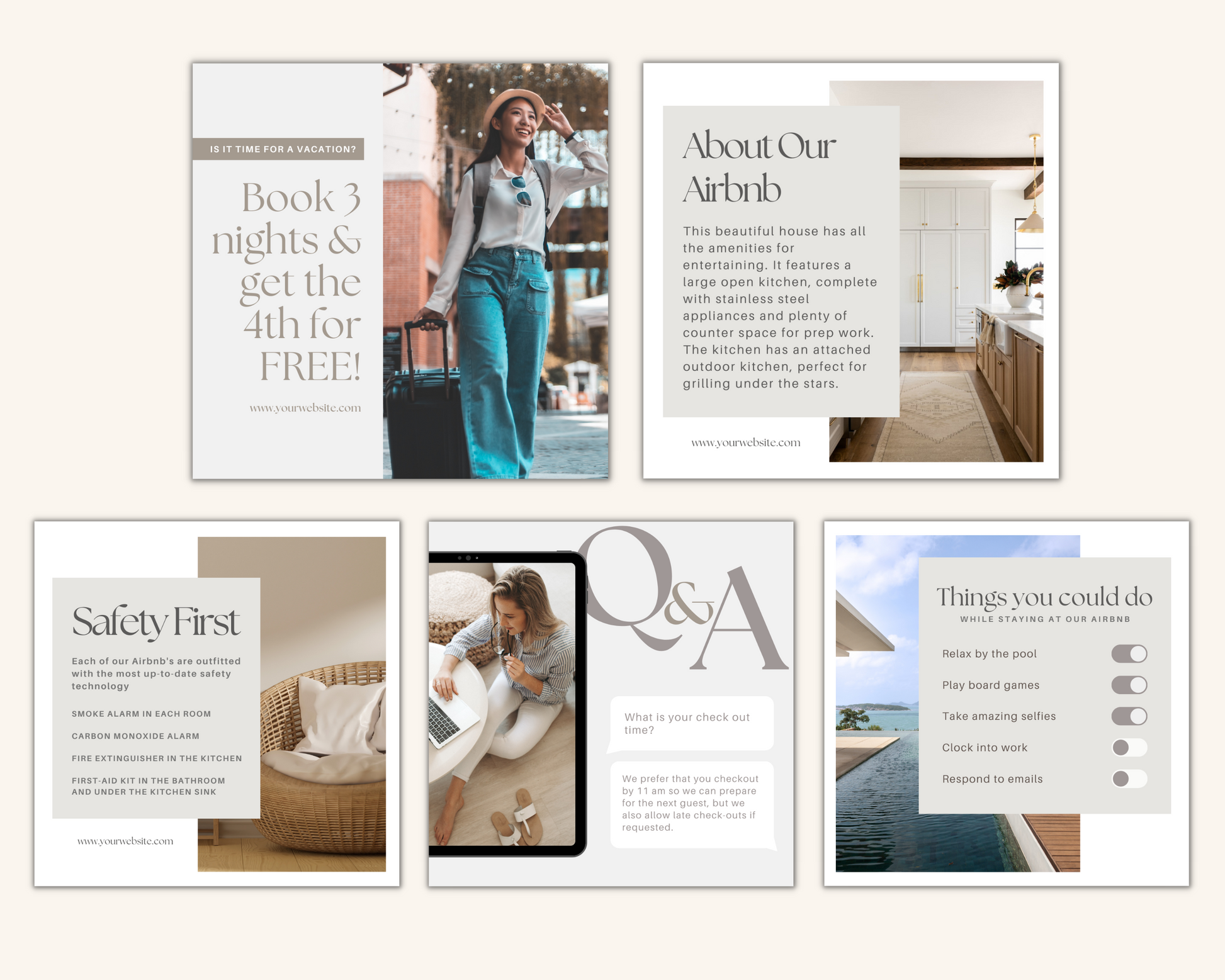Attention professional Airbnb or VRBO hosts! Use this Real Estate Template – Peaceful Airbnb Social Media Posts 1 to promote an Airbnb short term rental property on social media. Take the guesswork out of what to post every day and use these easy-to-edit templates to promote your property.