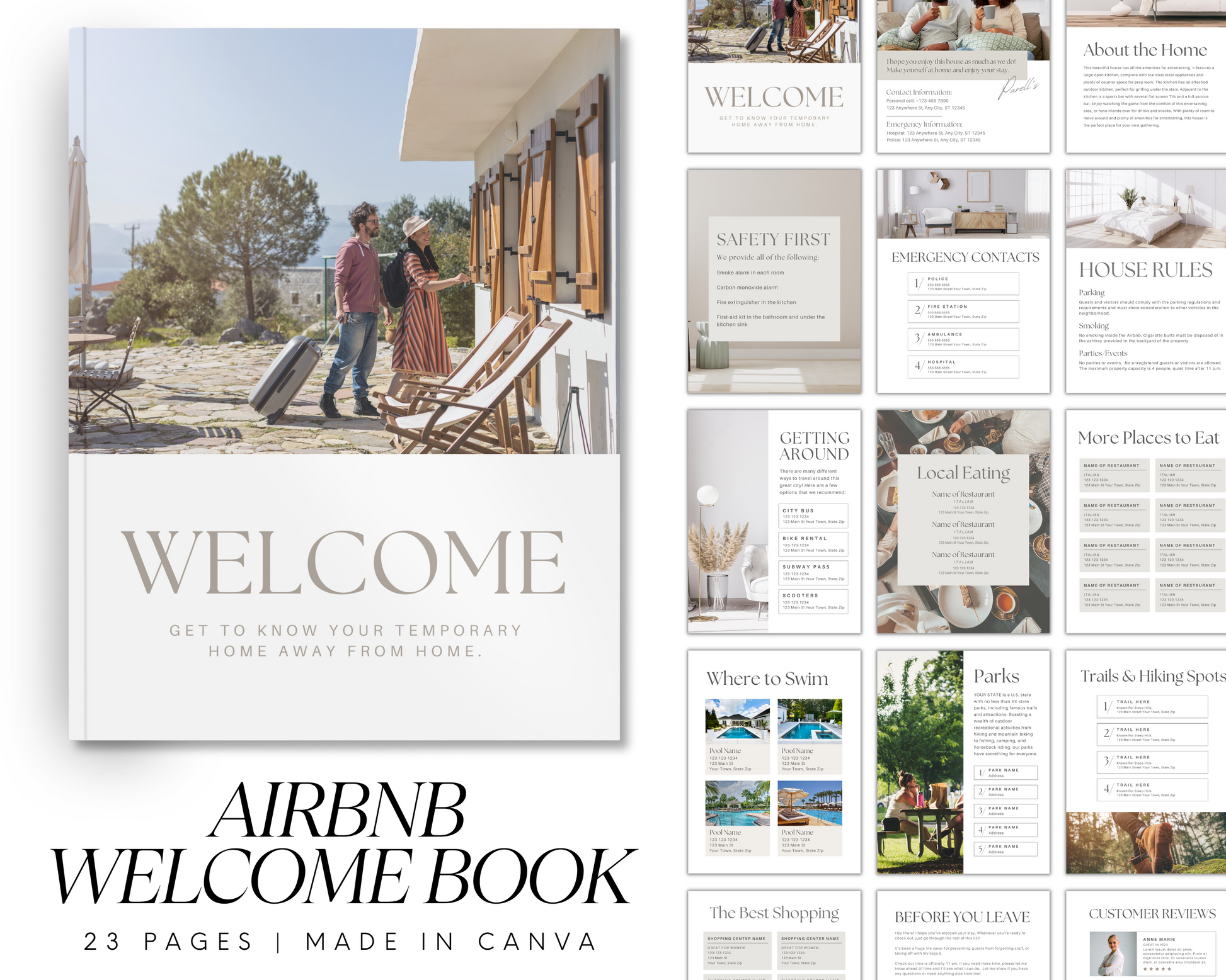Attention Real Estate Agents! Use this Real Estate Template – Peaceful Airbnb Welcome Book to promote an Airbnb short term rental property. Boost those reviews and customer experiences by giving the home this beautiful custom book with details all about the property.