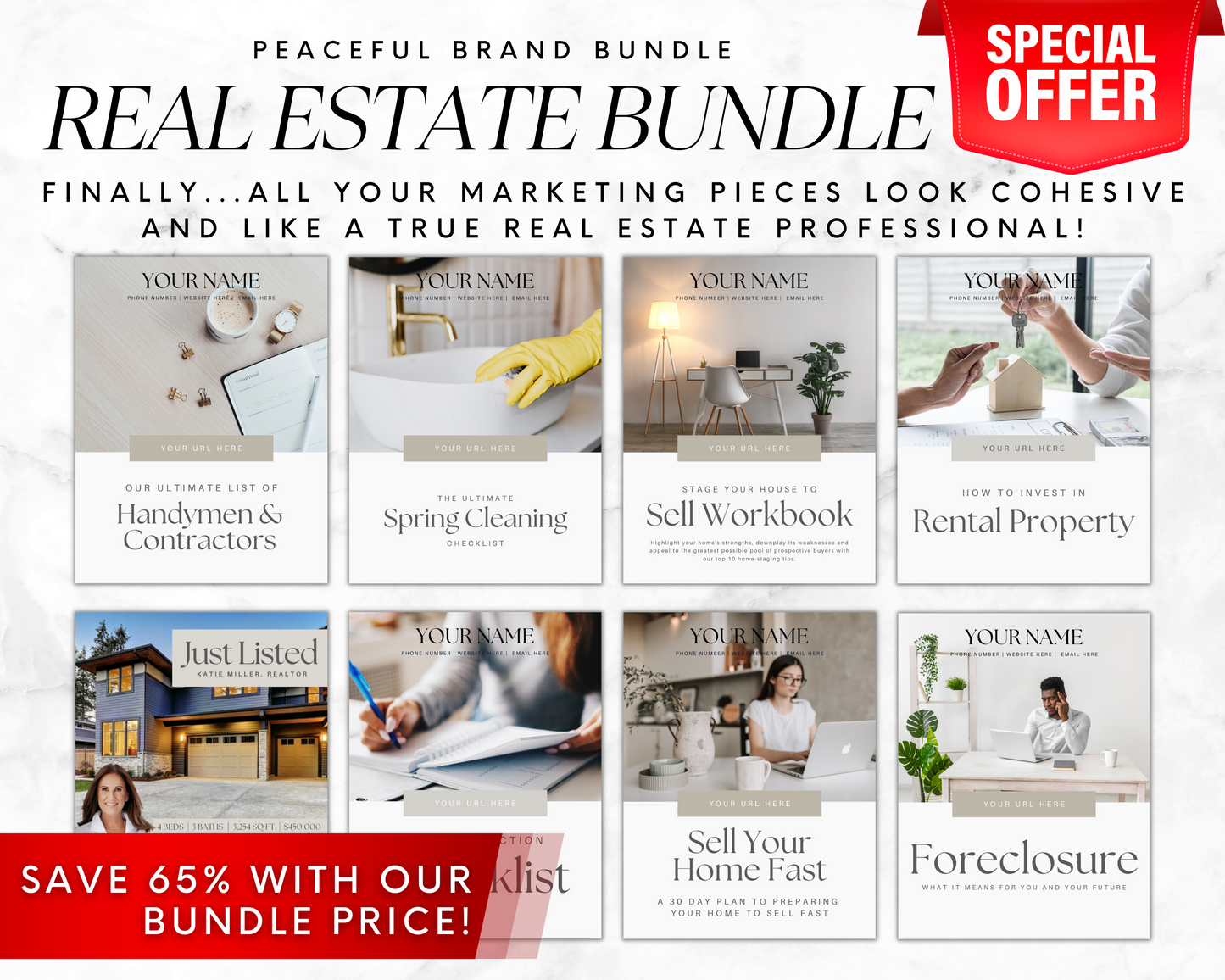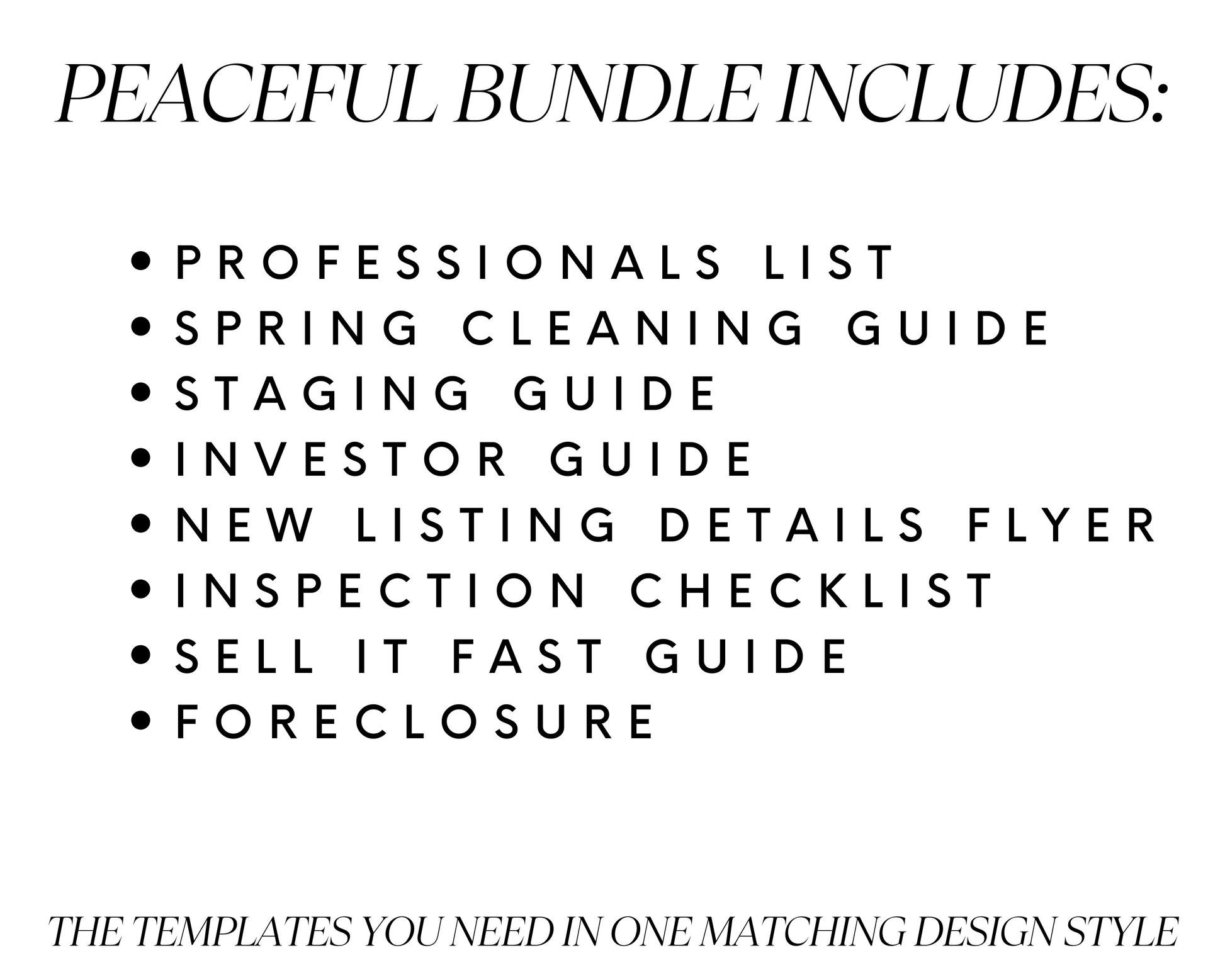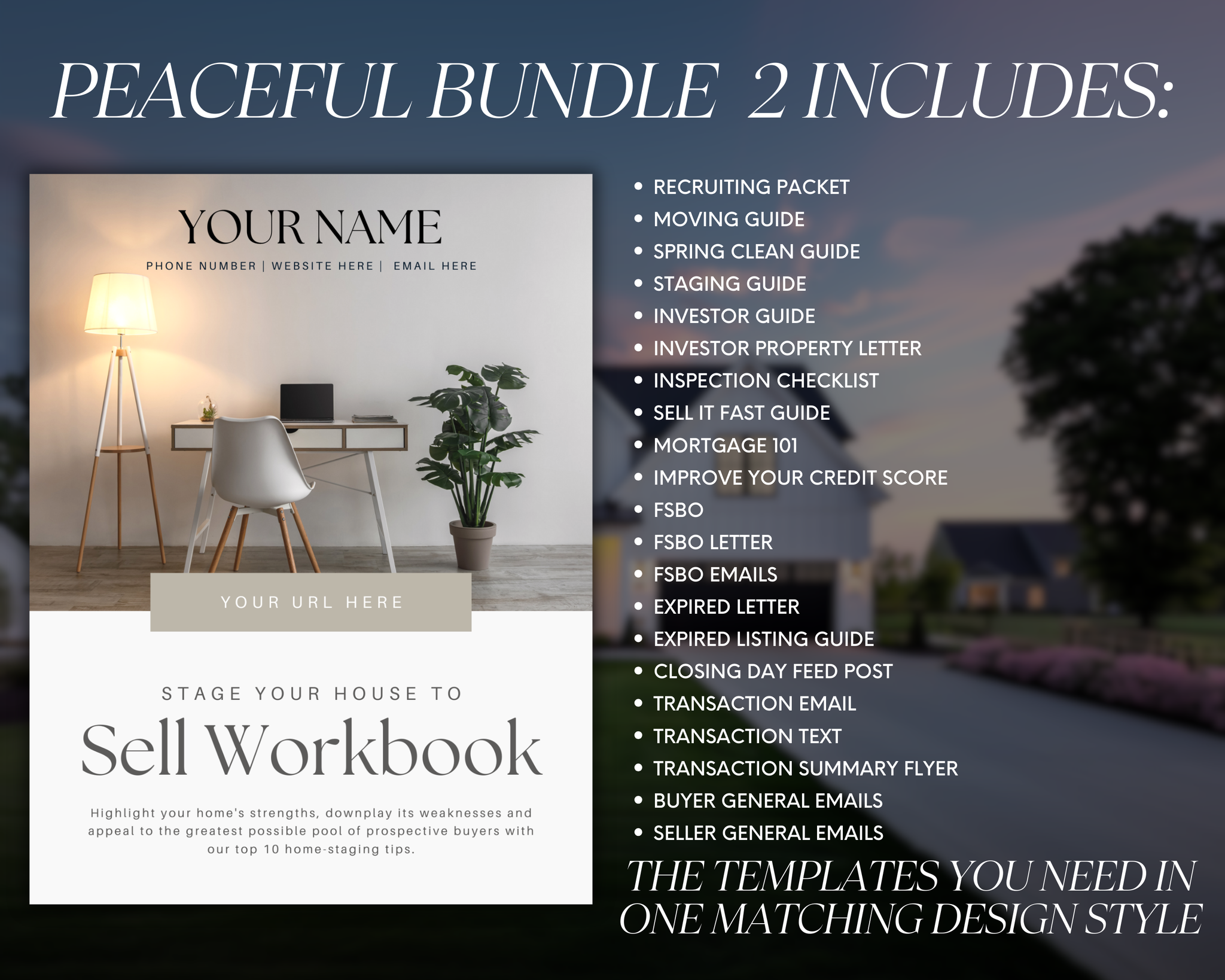 Be sure to check out the coordinating Peaceful Bundle Brand Templates for more coordinating real estate templates.