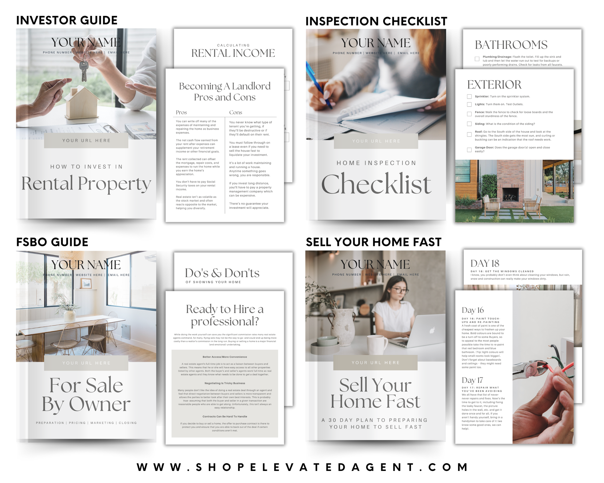 Each template in this bundle, from the eye-catching Transaction Text Images to a detailed Real Estate Email Templates, is impeccably designed using Canva, and tells a compelling story about your offerings. Our Sell Your Home Fast Guide provides vital information for home sellers on how to present their homes in the best light possible for a seamless sale.