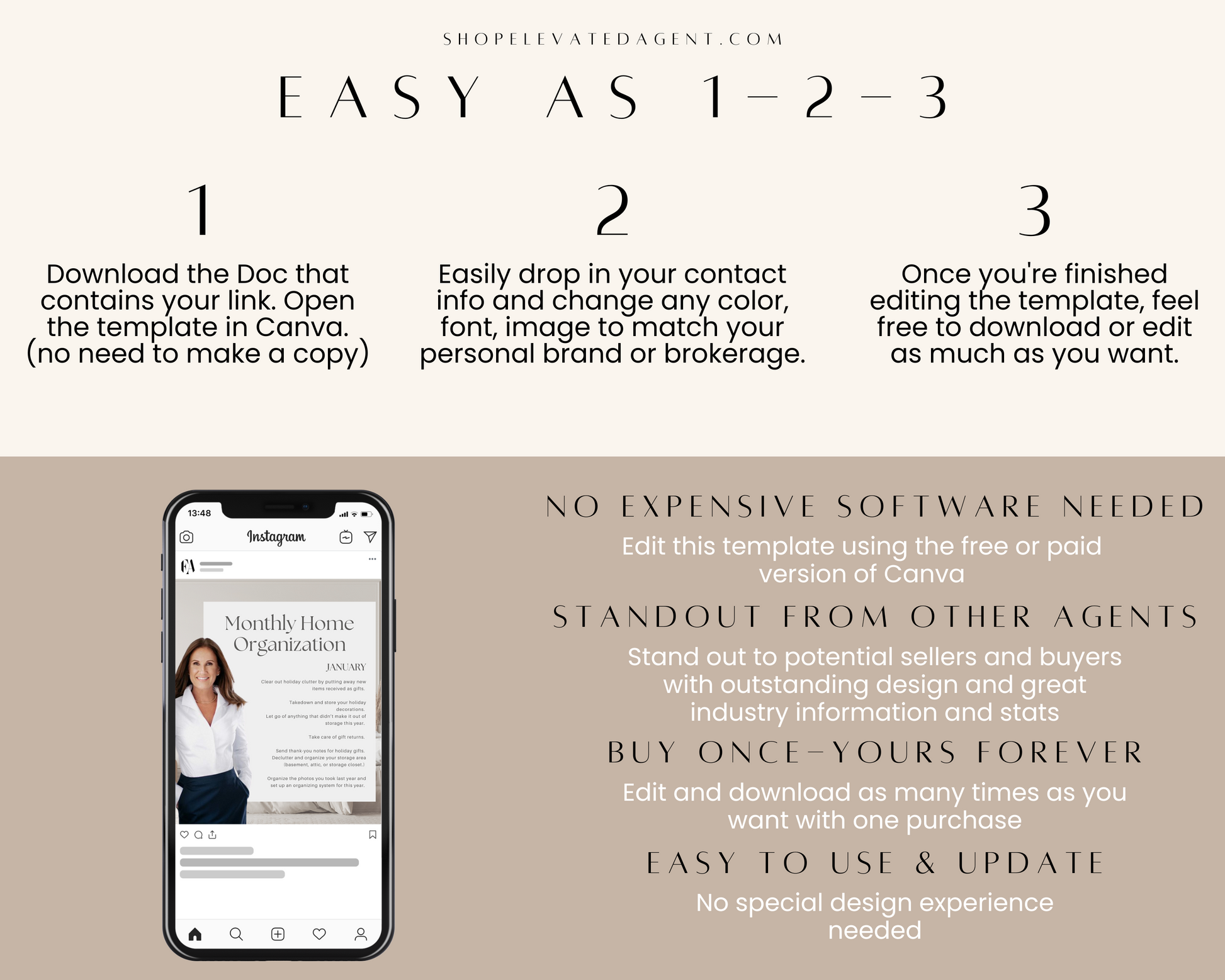 Attention Real Estate Agents! Keep your real estate marketing fresh and updated with this easy-to-use Realtor Canva Template designed by Elevated Agent. We stay on top of real estate marketing trends and produce new content daily.