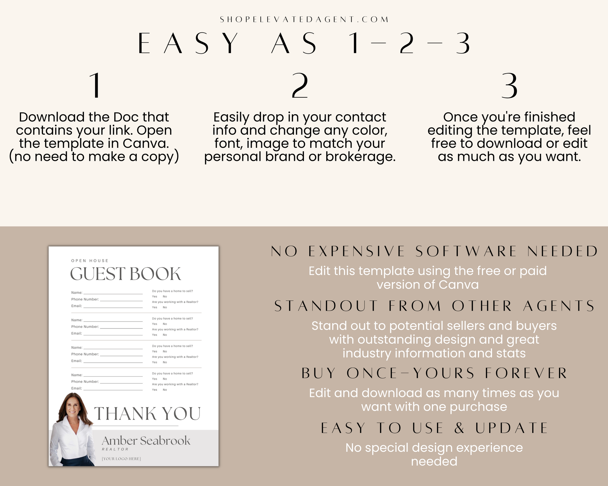 Attention Real Estate Agents! Keep your real estate marketing fresh and updated with this easy-to-use Realtor Canva Template designed by Elevated Agent. We stay on top of real estate marketing trends and produce new content daily.