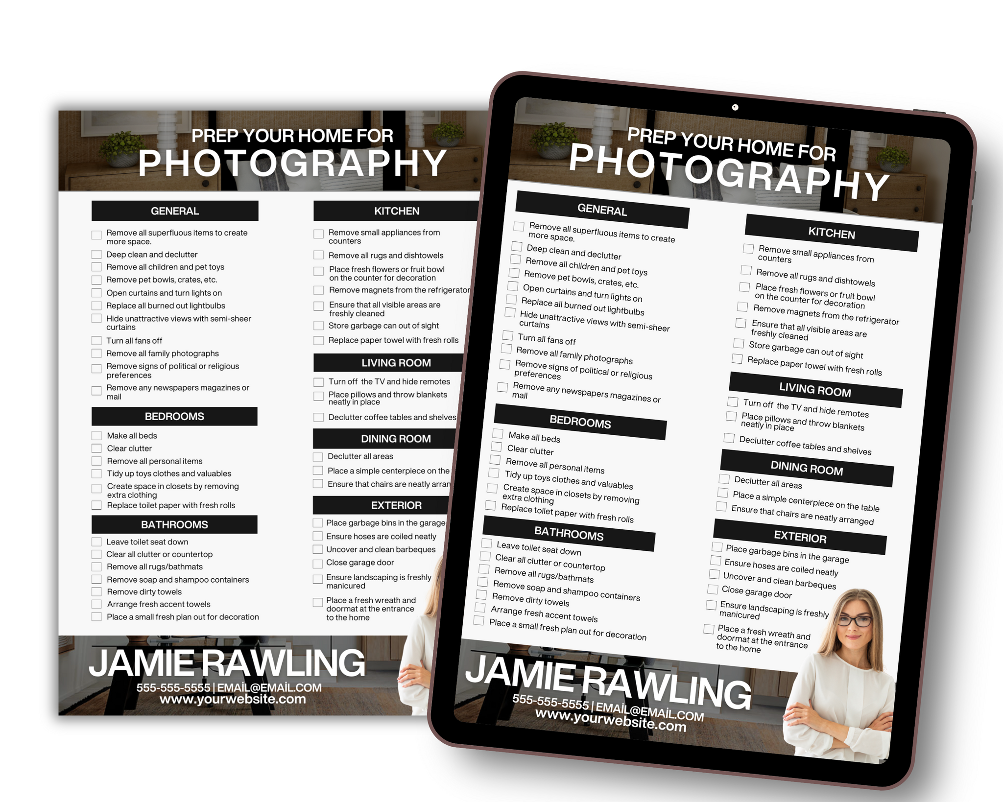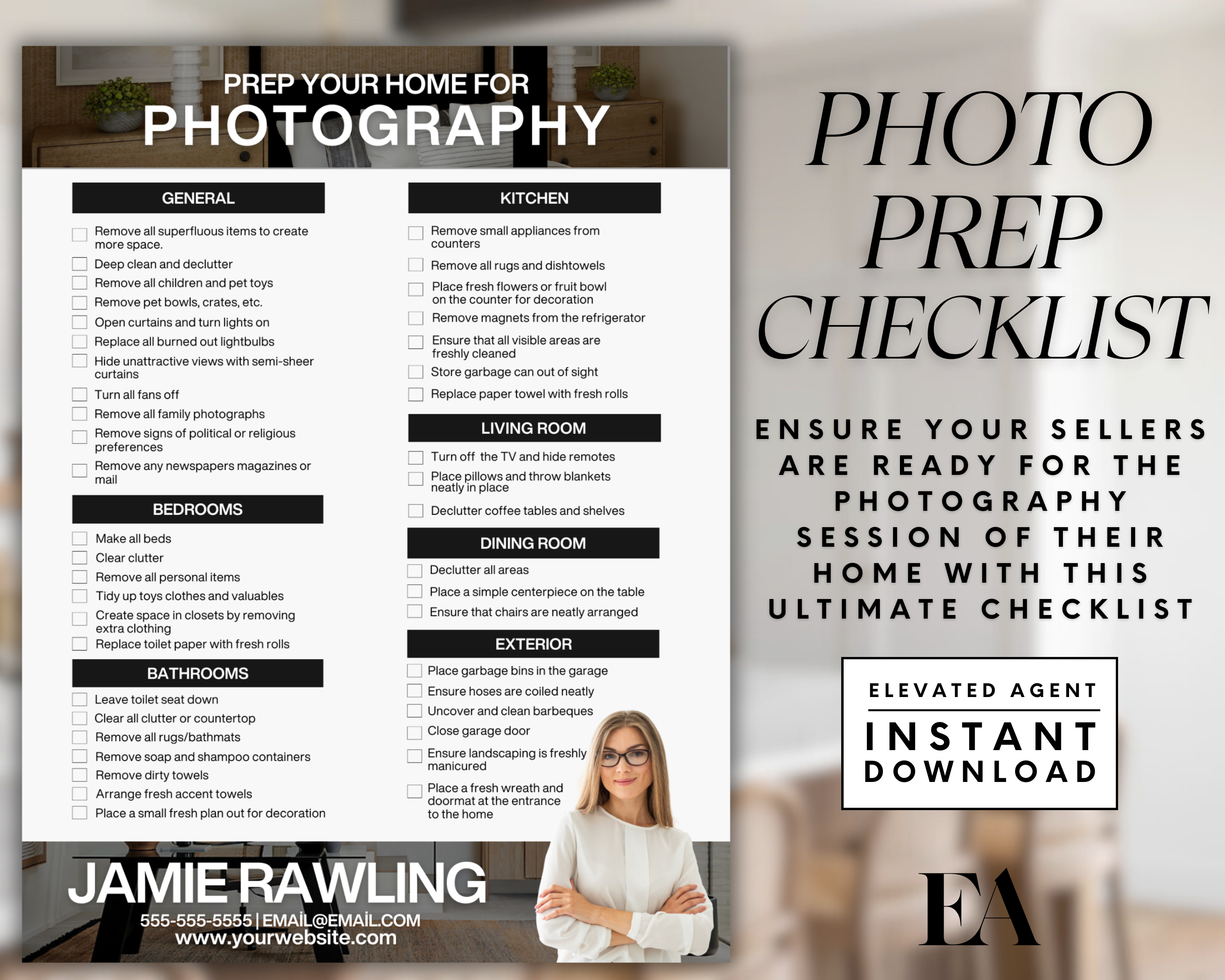 Get ready to elevate your real estate photography game with our Photography Prep Checklist Template! Designed specifically for savvy real estate agents like you.