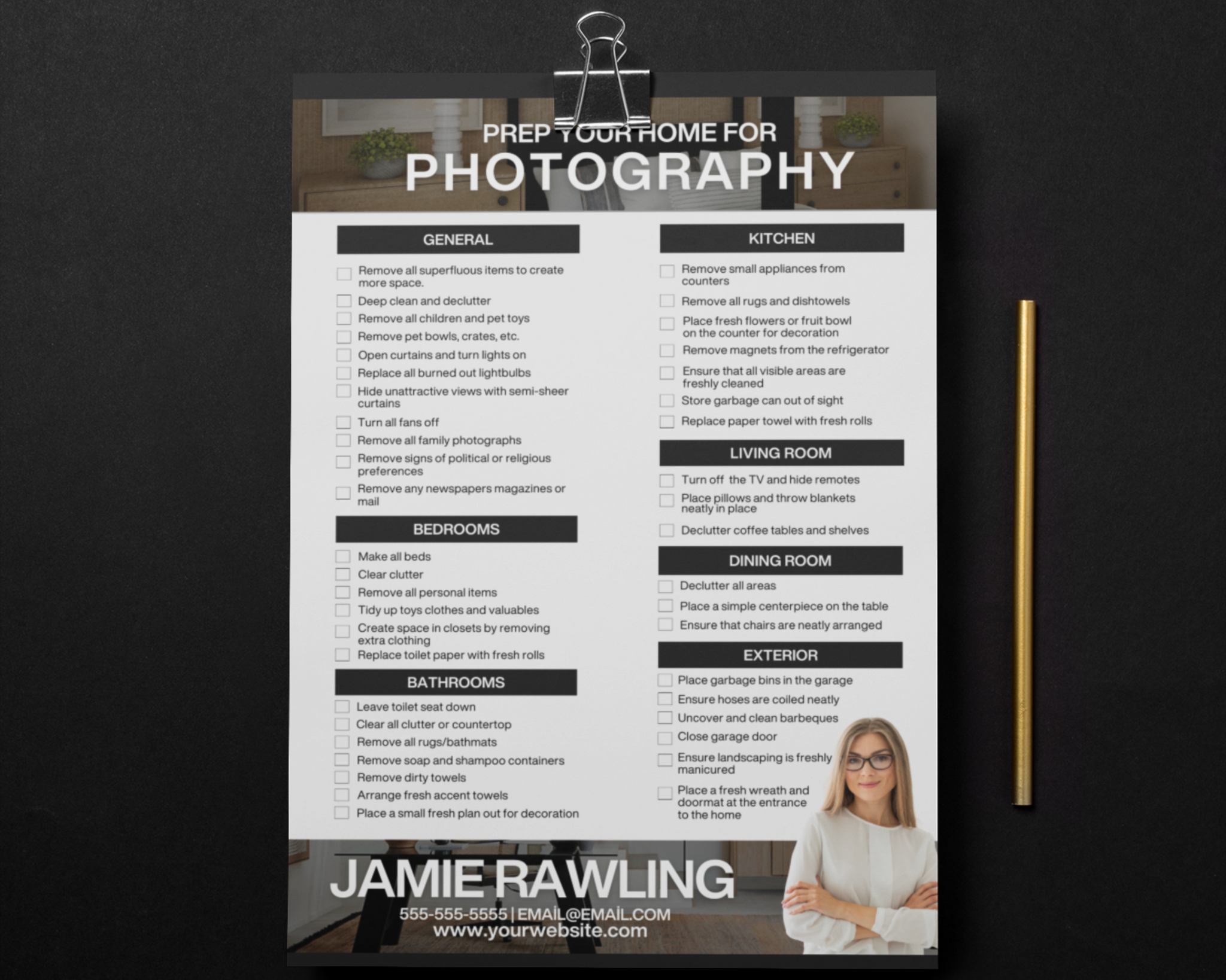 What sets our checklist apart? It's comprehensive! We've included everything you need to ensure every photoshoot is a success. From staging tips to lighting suggestions, each element is carefully curated to help you showcase properties in their best light.