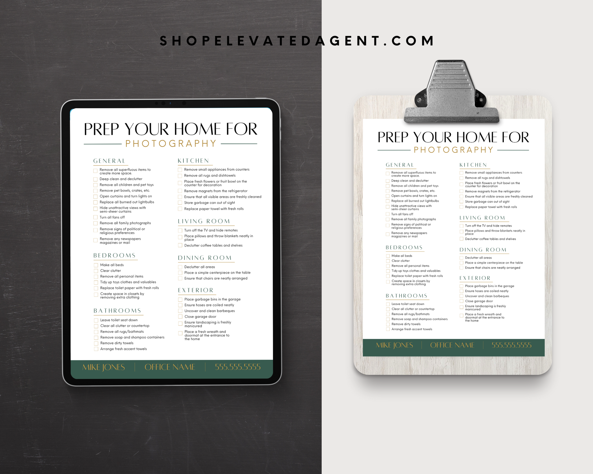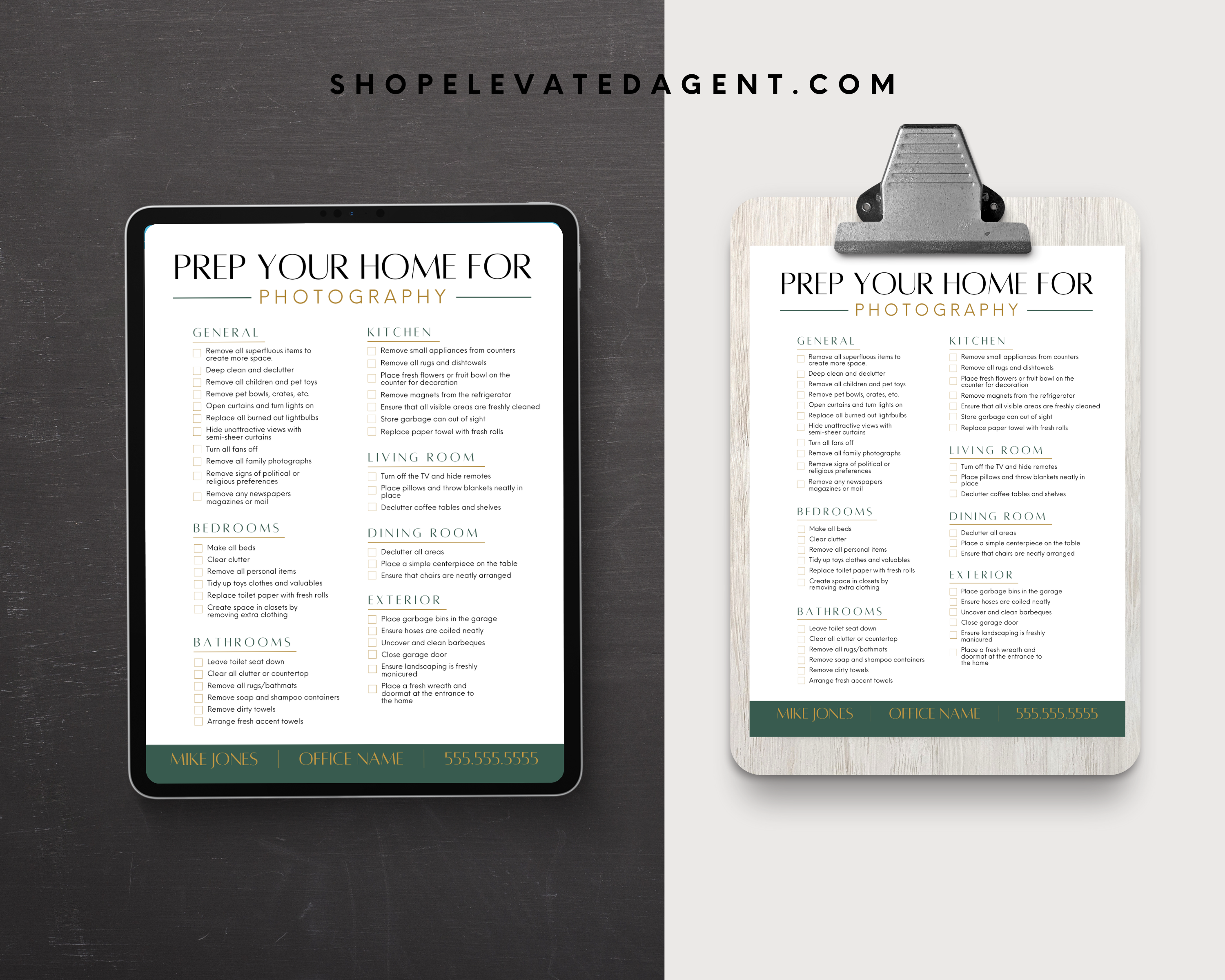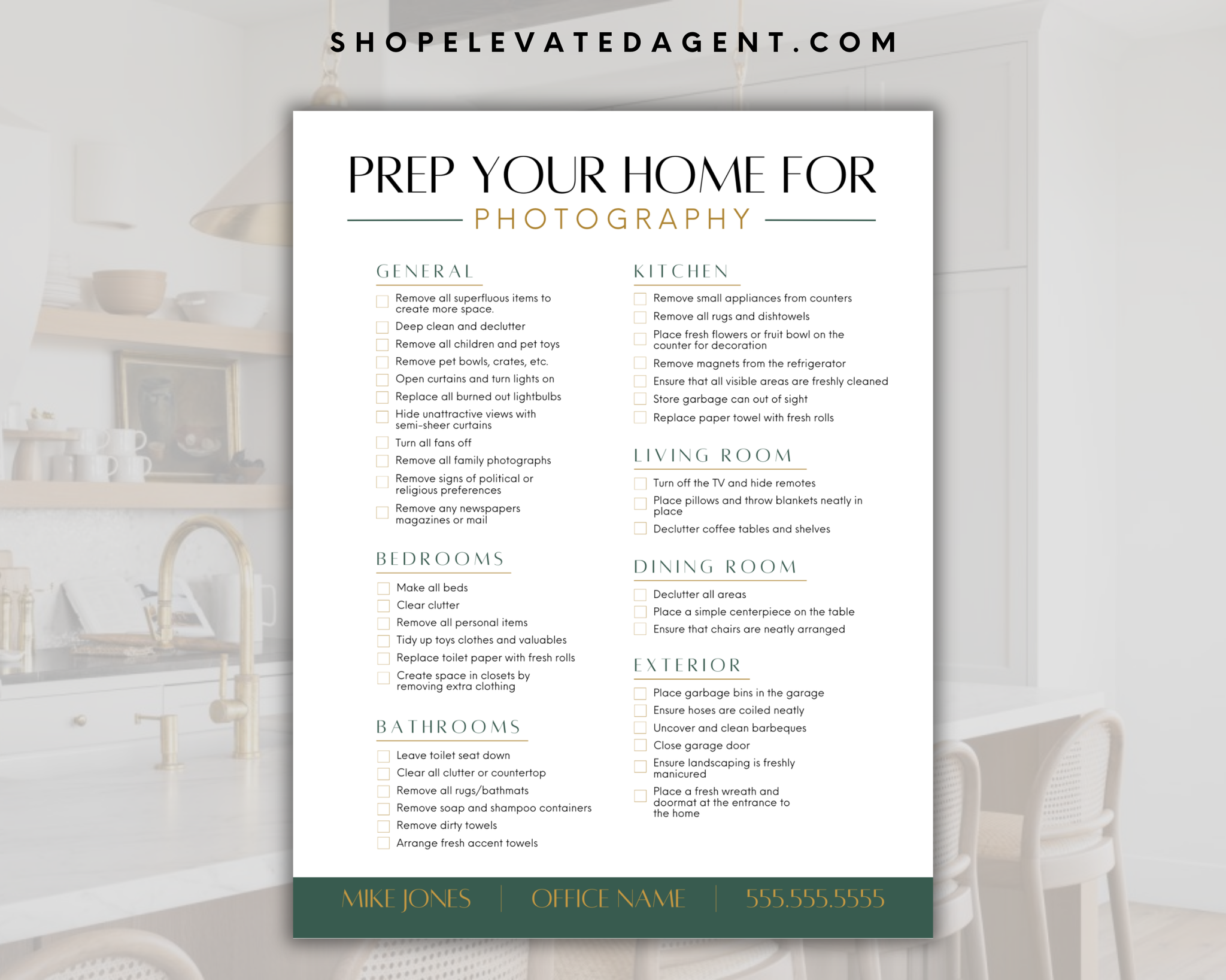 Help your clients prepare their properties like a pro, saving time and ensuring every listing stands out. With clear instructions and a visually appealing design, this checklist simplifies the photography preparation process, making it a must-have for any real estate professional.
