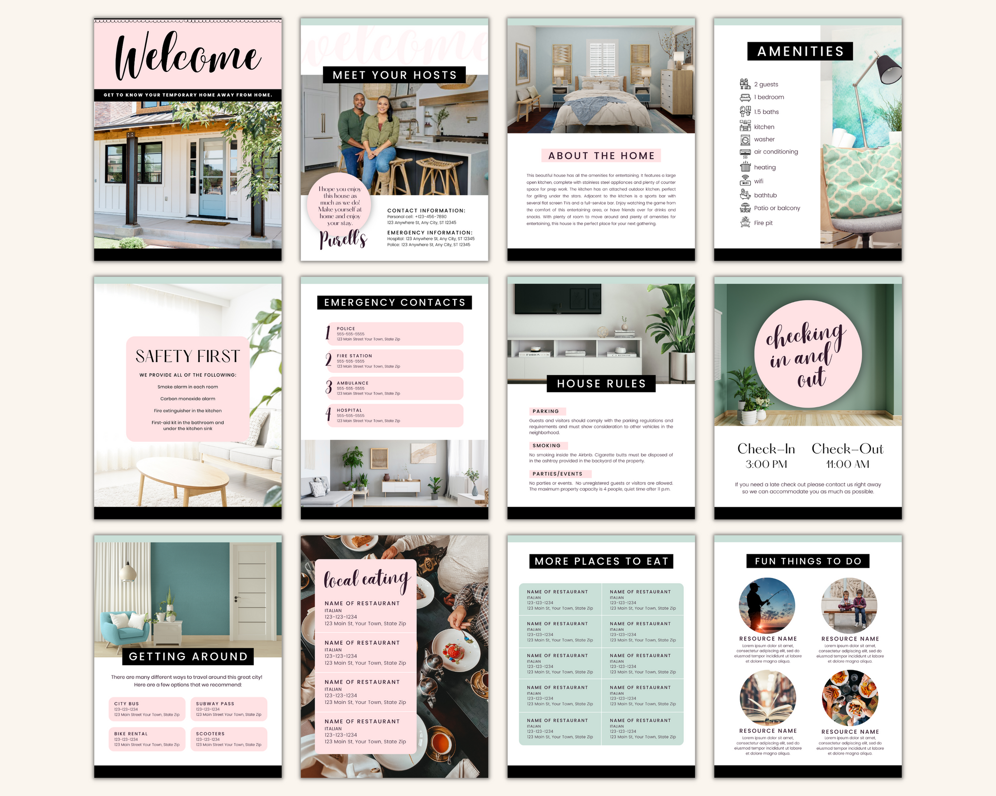 Attention Real Estate Agents! Use this Real Estate Template – Playful Airbnb Book to promote an Airbnb short term rental property. Boost those reviews and customer experiences by giving the home this beautiful custom book with details all about the property.