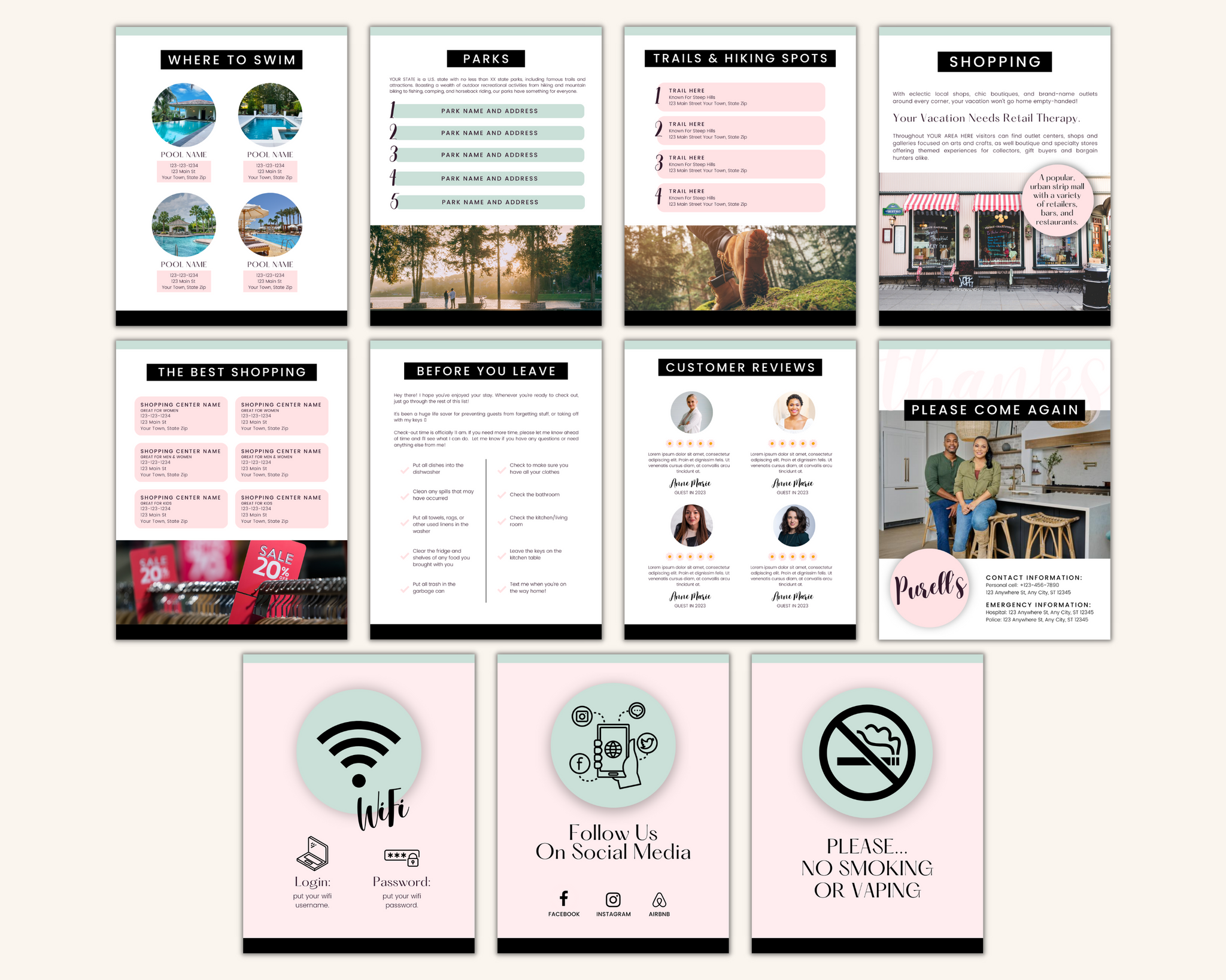 This Real Estate Template – Playful Airbnb Book can be printed at a local printer to leave at the property for the guests to enjoy. You can also email the digital file to your guests or have it as part of your listing.