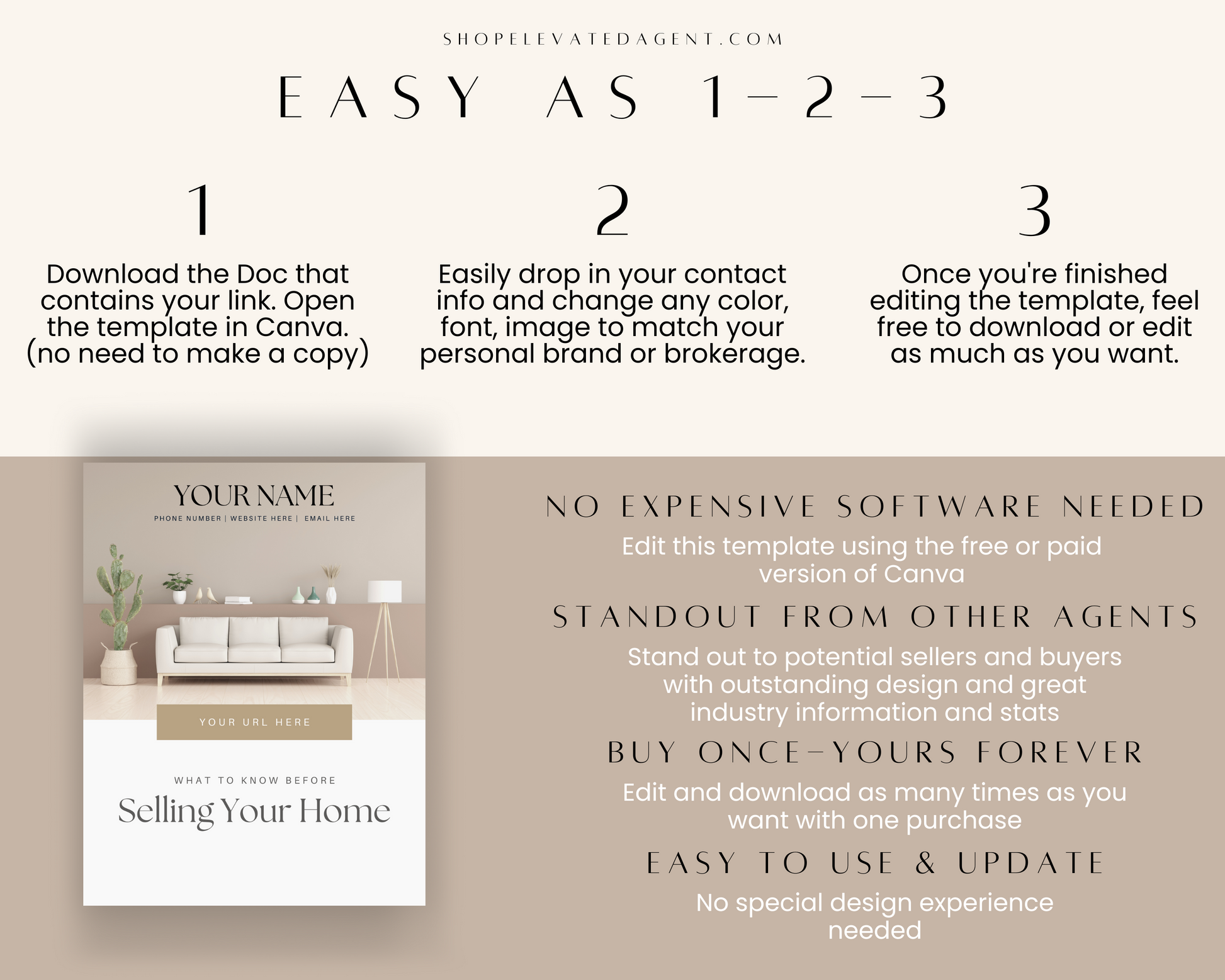 Attention Real Estate Agents! Keep your real estate marketing fresh and updated with this easy-to-use Realtor Canva Template designed by Elevated Agent. We stay on top of real estate marketing trends and produce new content daily.