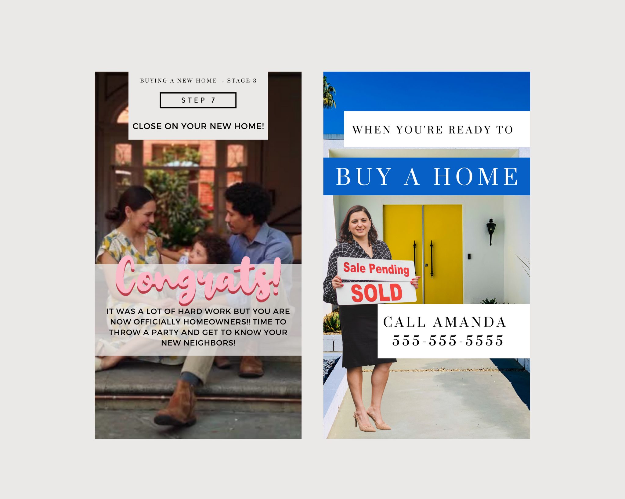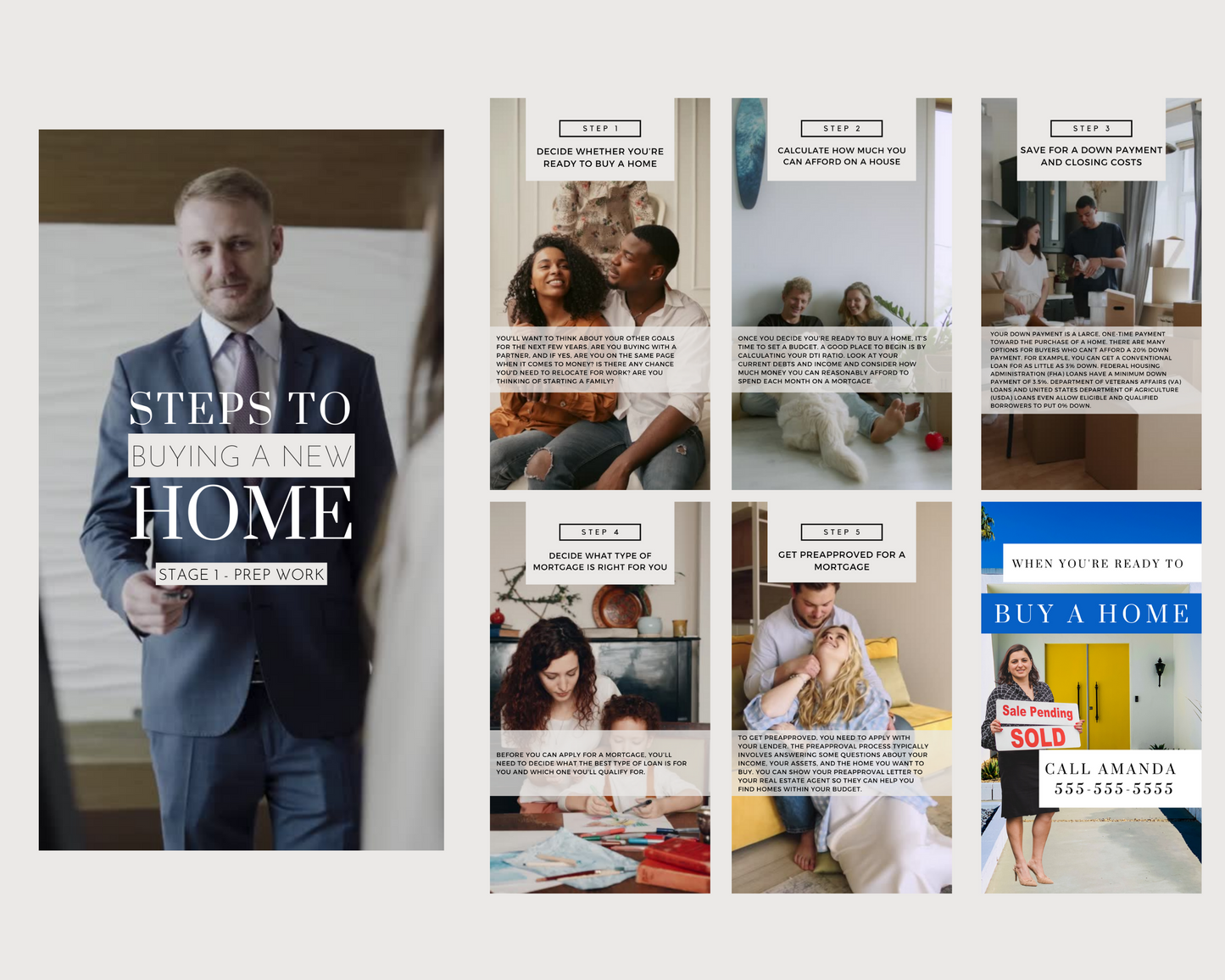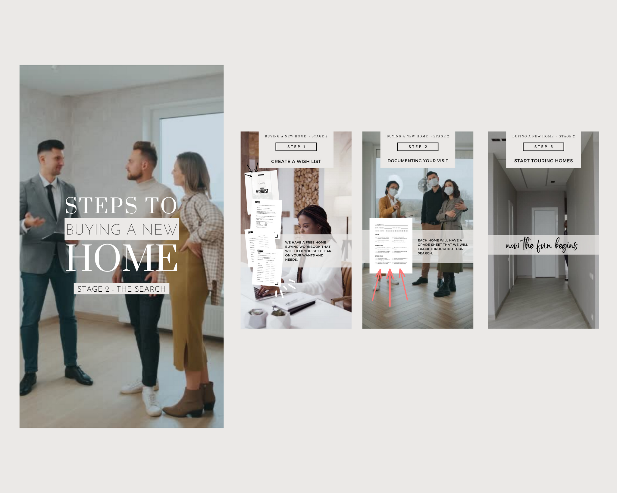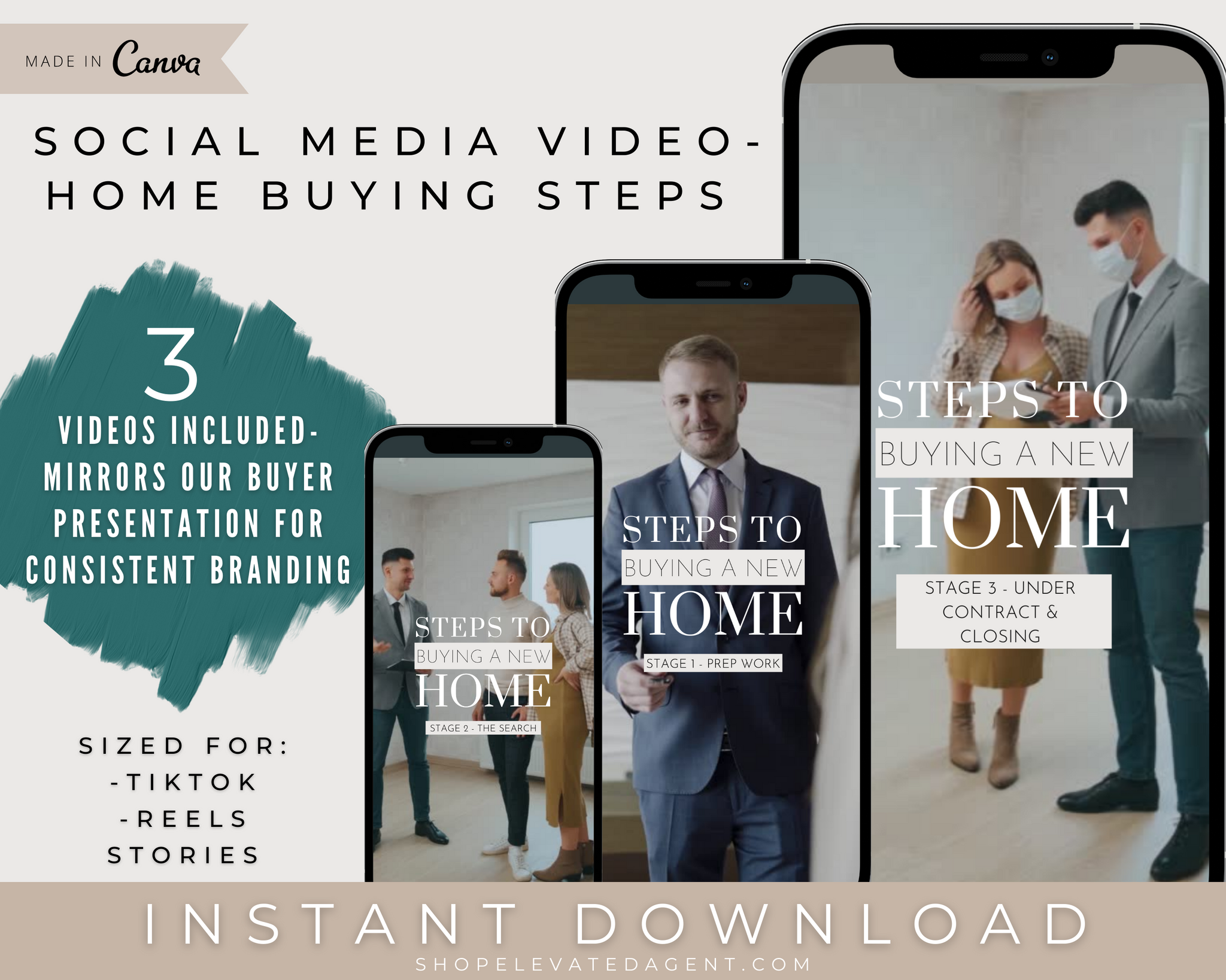 These 3 real estate social media videos will take your viewers through the home buying process. Stage 1, Stage 2, and Stage 3.