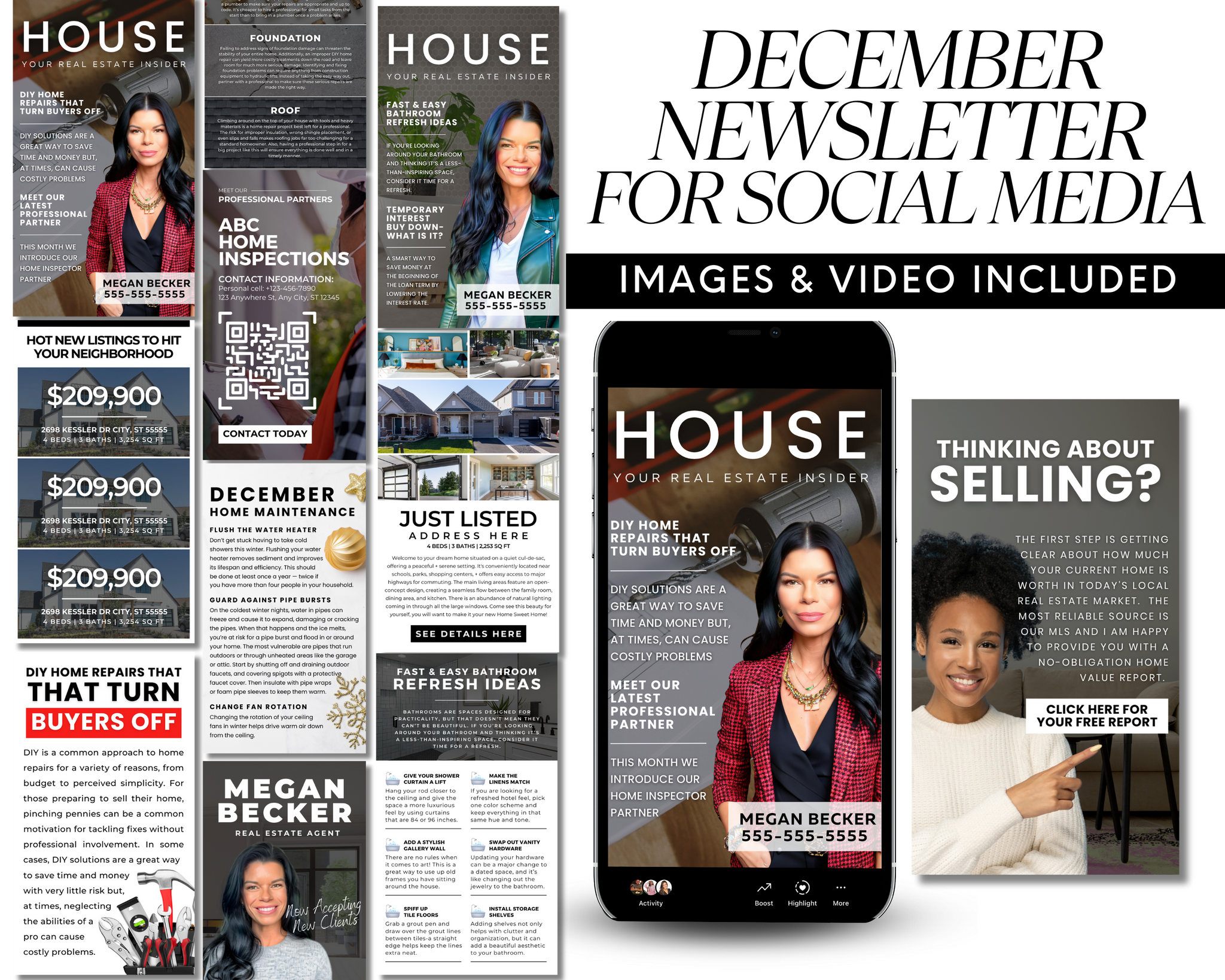 Get into the festive spirit with our stunning December Newsletter for Social Media Template! Perfect for real estate agents, this beautifully designed template is your secret weapon for captivating real estate marketing.