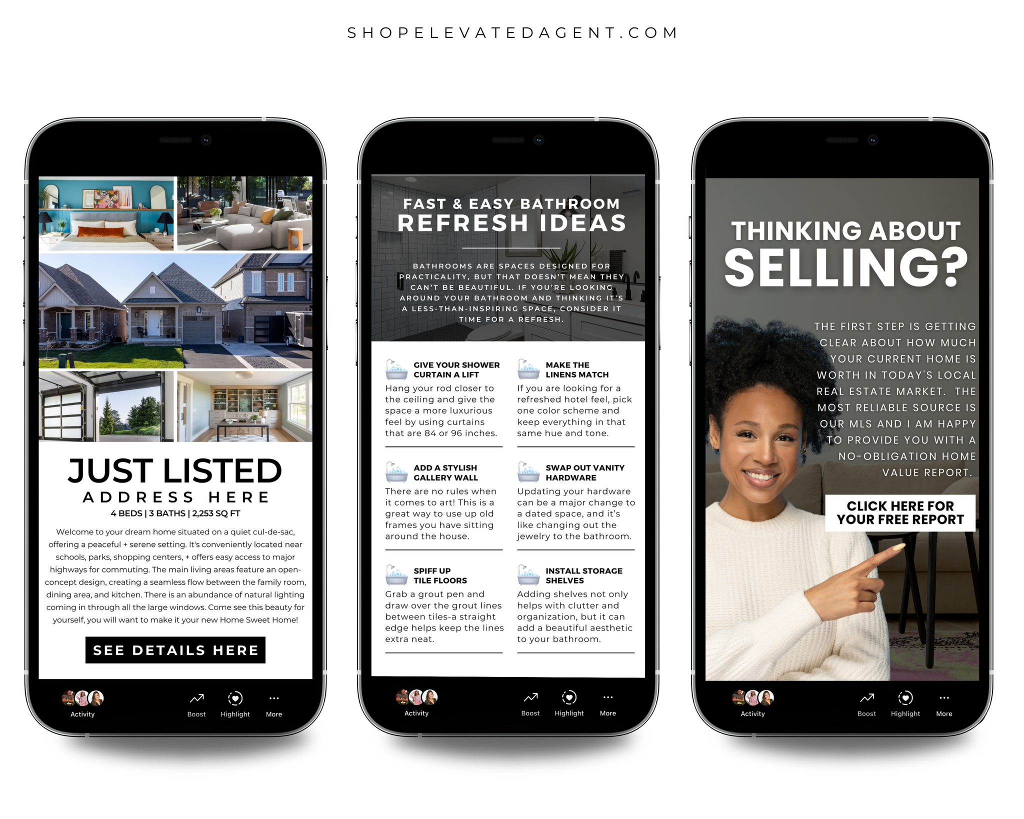 Created in Canva, it's incredibly easy to edit, ensuring you have everything you need to stand out in the competitive world of real estate. From captivating stories to eye-catching newsletter templates, this is your go-to for all things real estate marketing