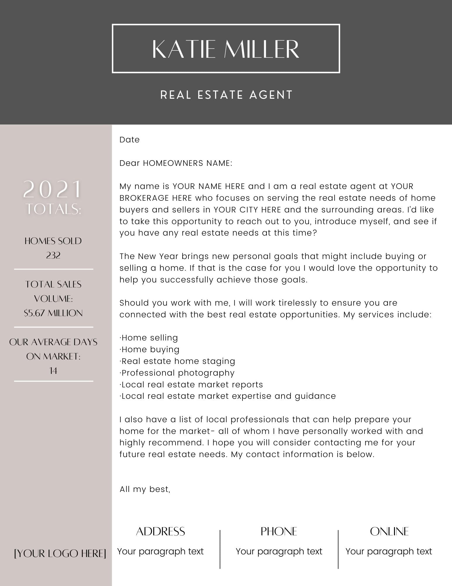 Attention real estate agents: Are you wanting to introduce yourself to the neighborhood as the area expert, say happy holidays to your past clients, and wish everyone a Happy New Year, this is your letter!