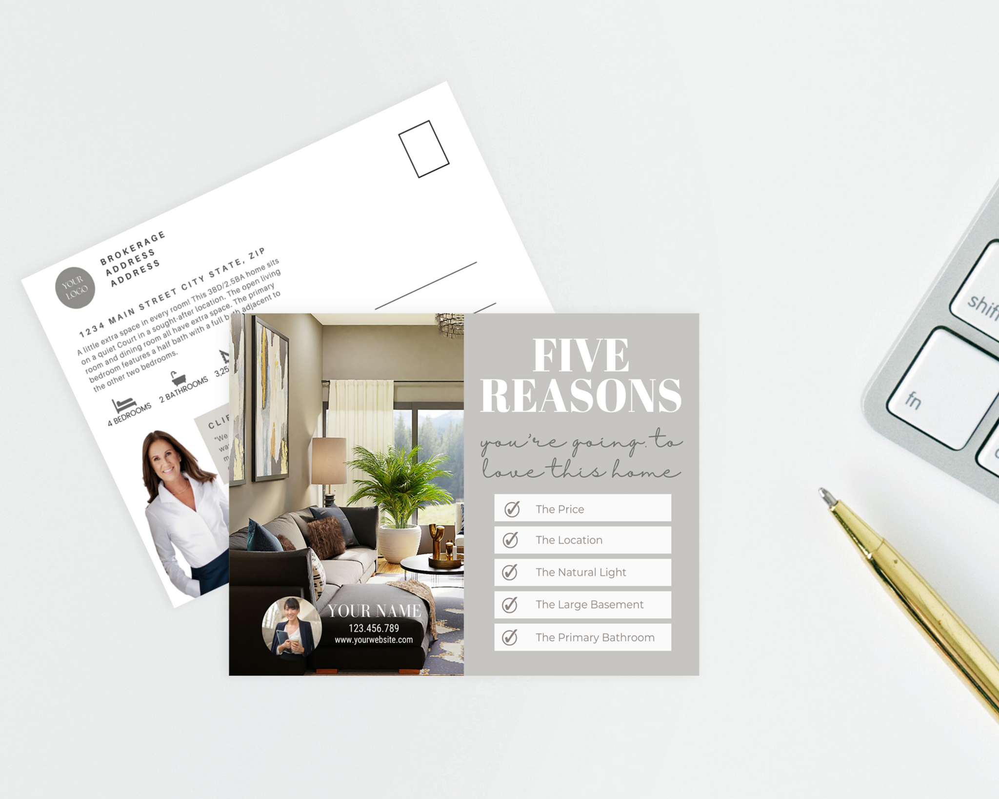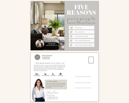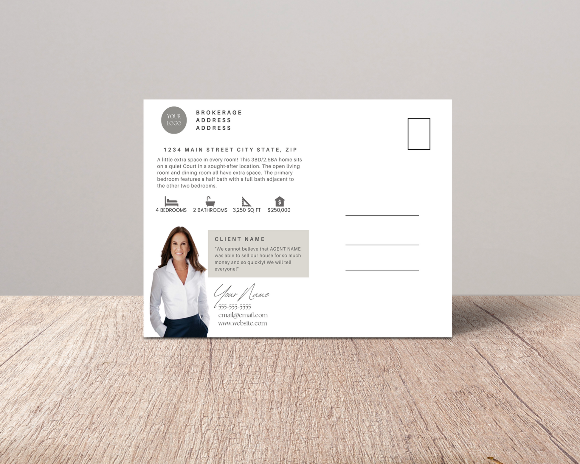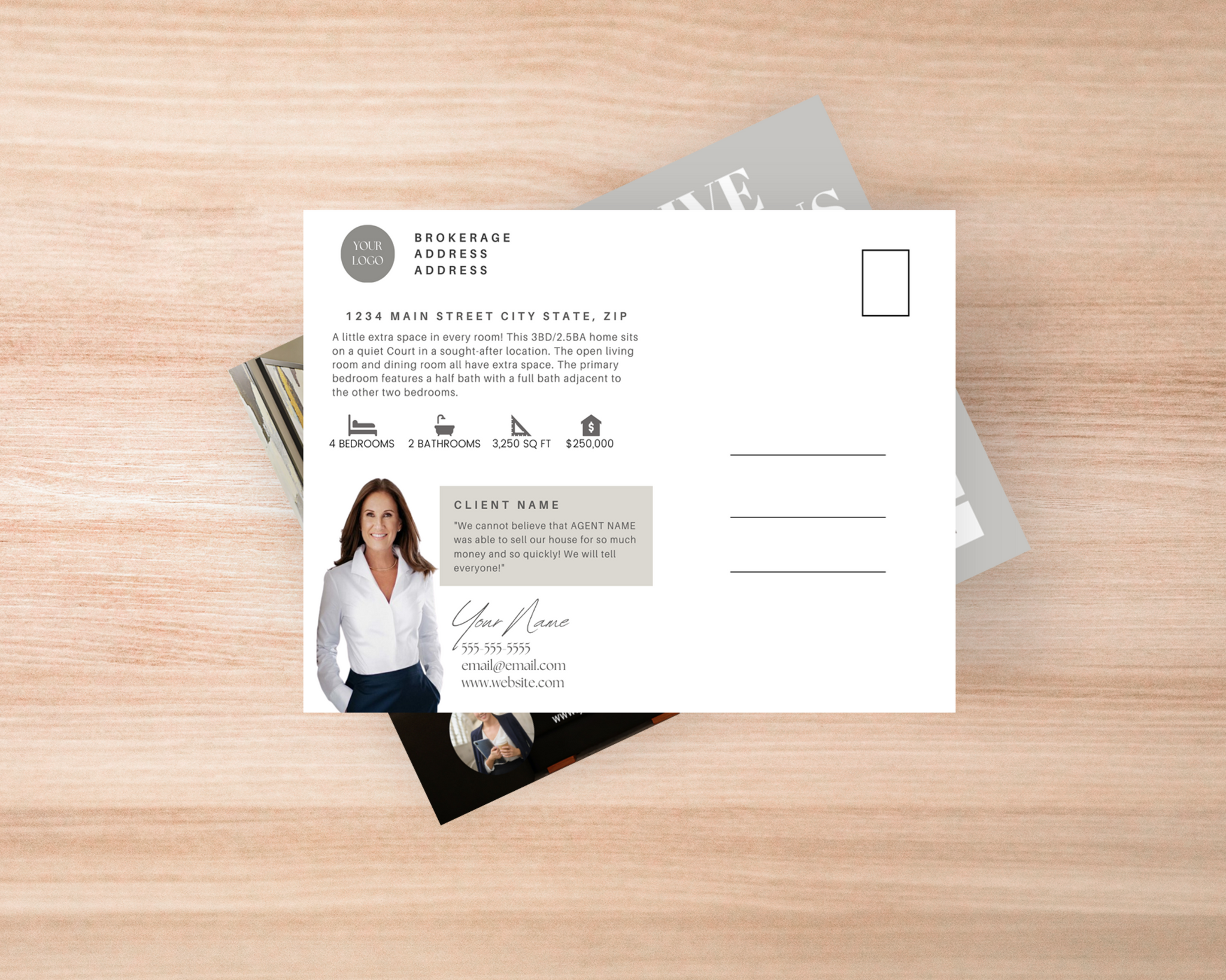 Attention Real Estate Agents! Use this Real Estate Template – Real Estate Postcard 1 - Just Listed to boost your real estate marketing and generate some leads. Real Estate Postcards are an effective way to stay connected to your previous clients, nurture cold leads into warm leads, share current properties, and establish your credibility as an expert in your local real estate area.