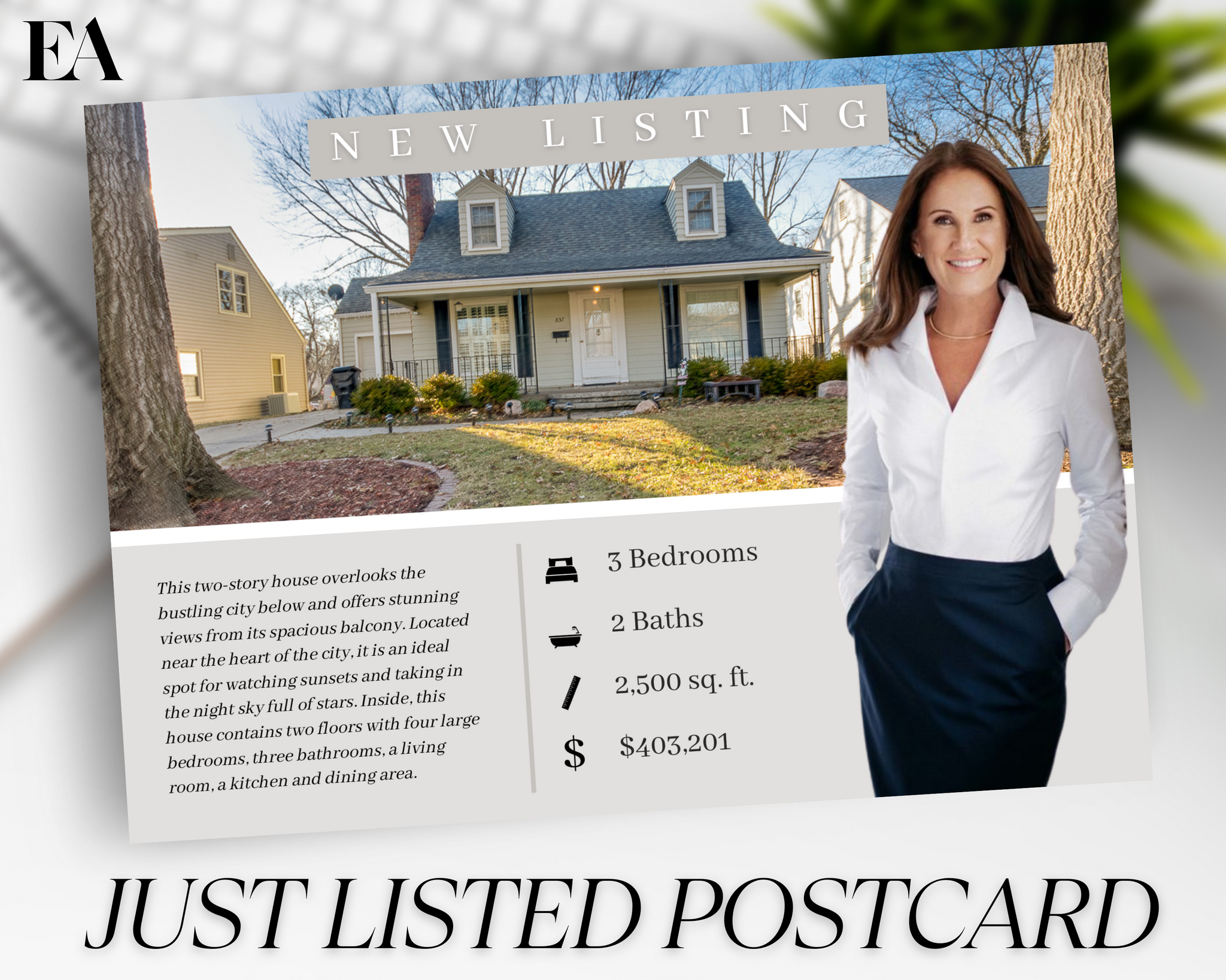Elevate your Real Estate Marketing with this Real Estate Postcard 2 - Just Listed today.