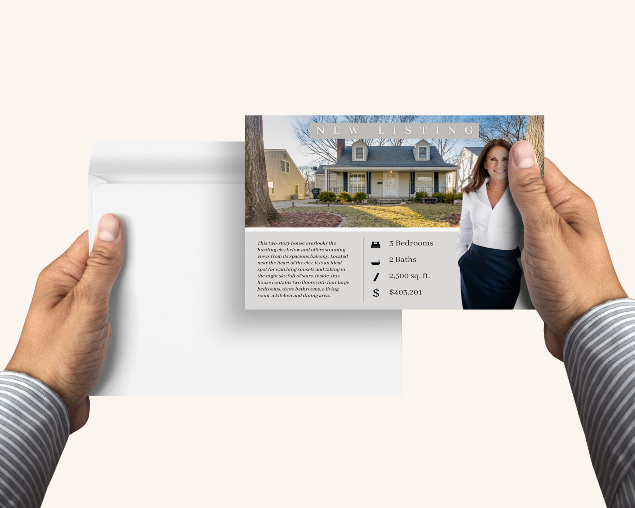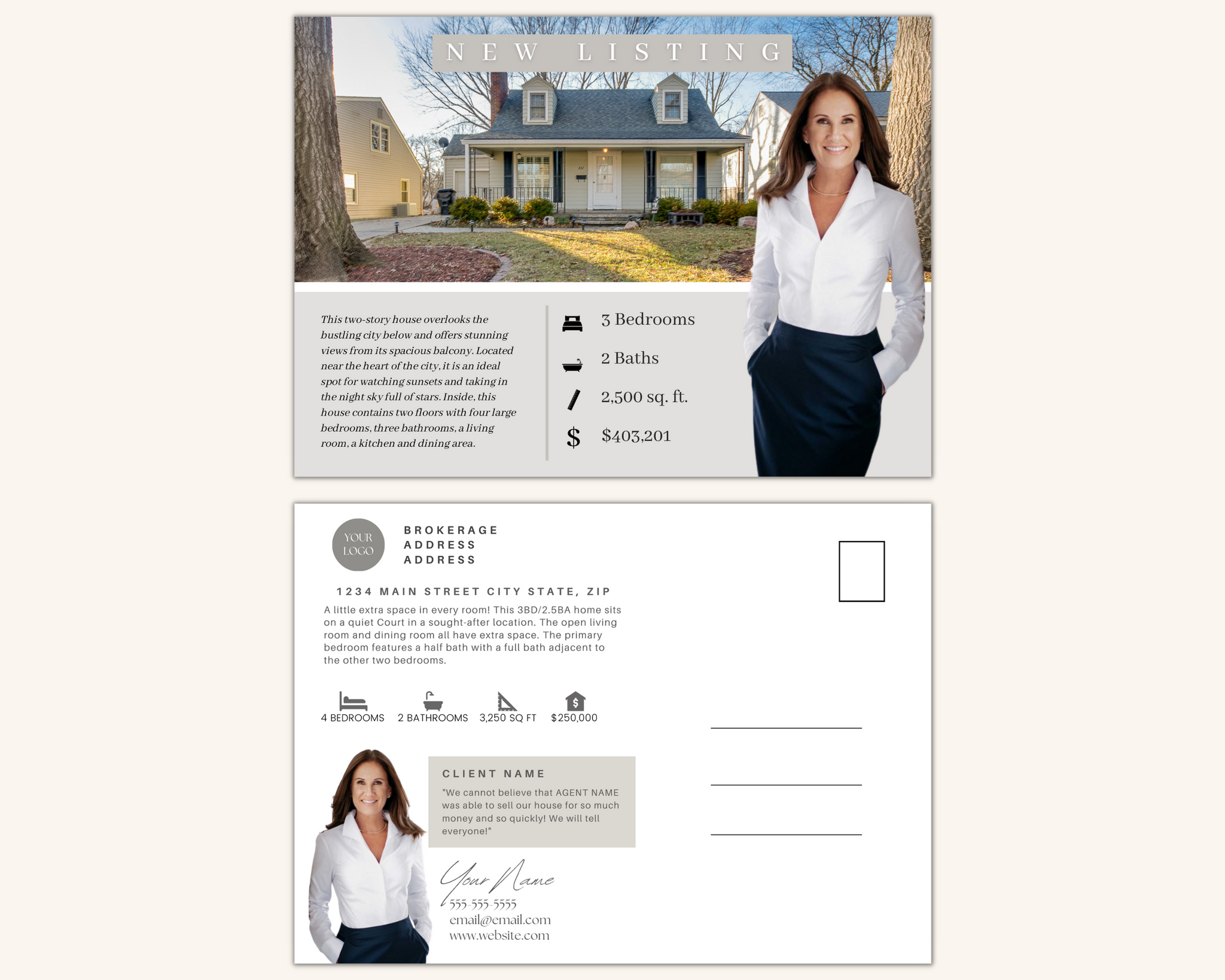 Attention Real Estate Agents! Use this Real Estate Template – Real Estate Postcard 2 - Just Listed to boost your real estate marketing and generate some leads. Real Estate Postcards are an effective way to stay connected to your previous clients, nurture cold leads into warm leads, share current properties, and establish your credibility as an expert in your local real estate area.