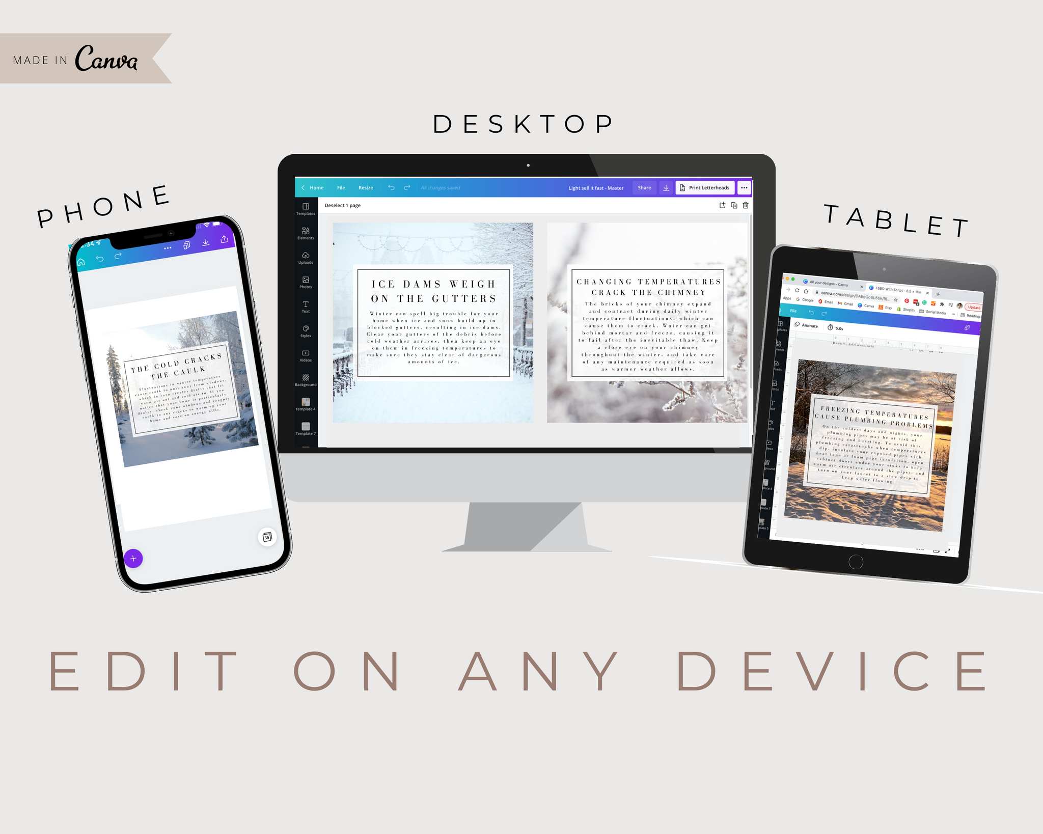 - Change the colors to your company's branding standards, add any additional images or logos you want in Canva