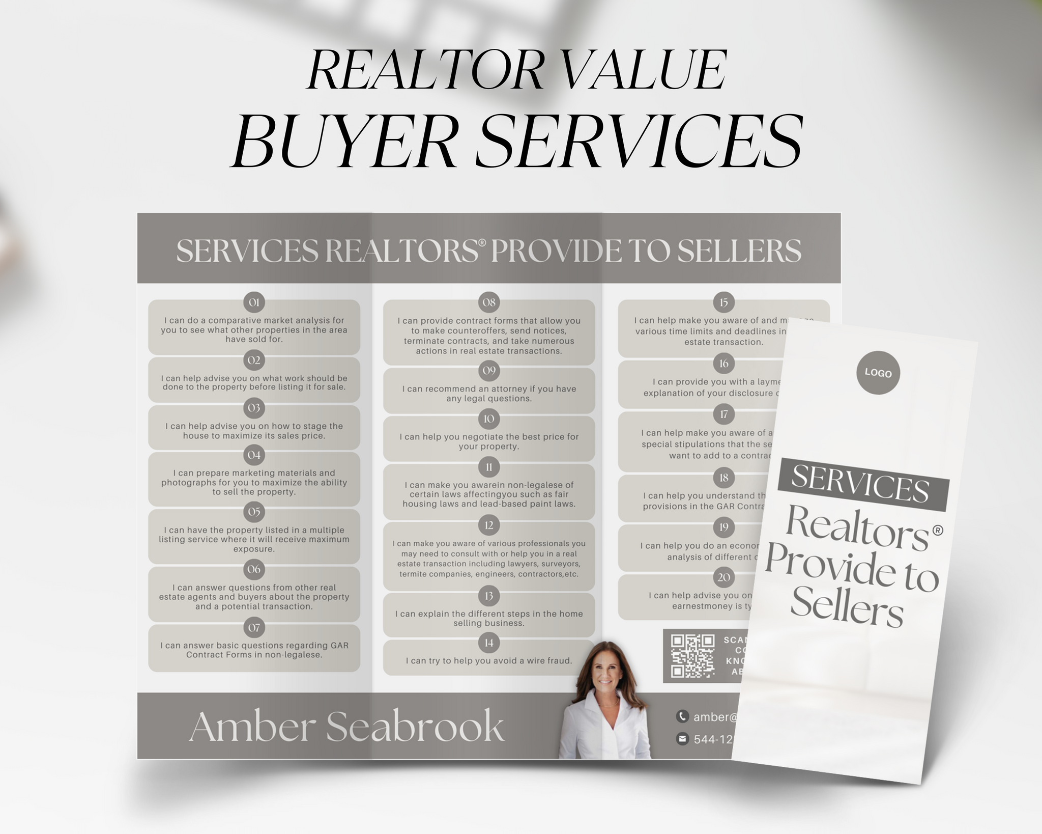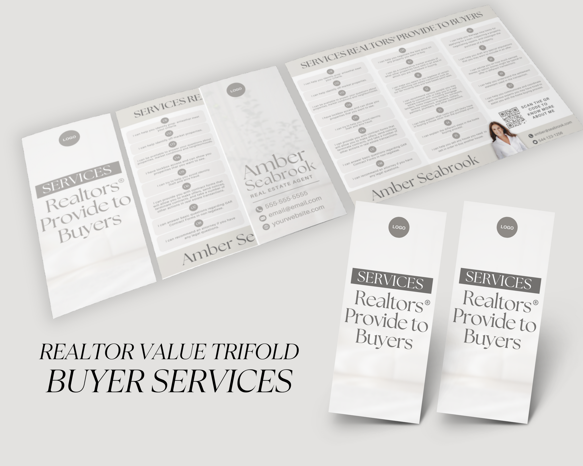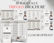 Give your marketing materials a professional upgrade and start attracting more clients with this customizable Realtor Value Trifold Brochure Template. Purchase today and take your real estate business to the next level!