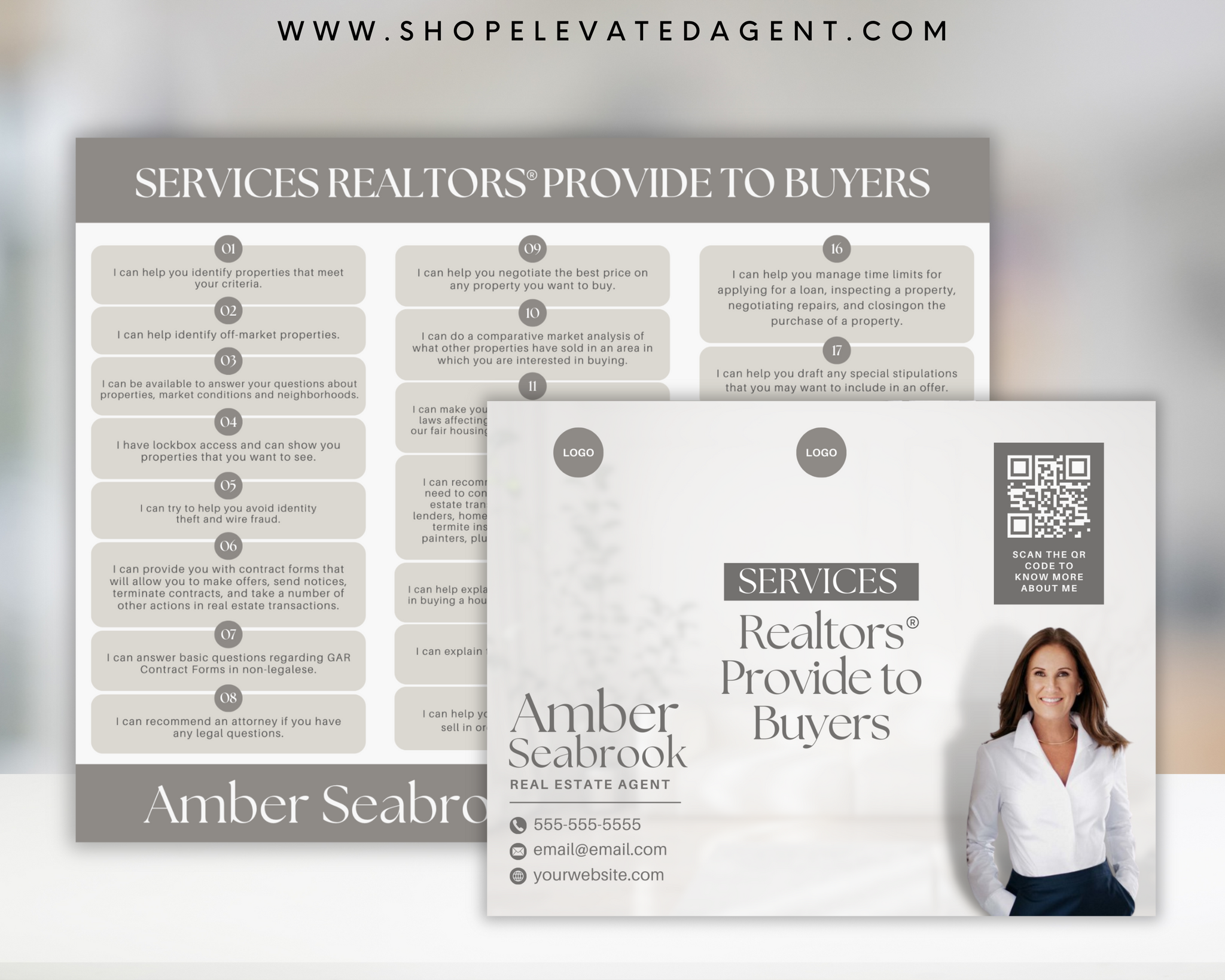 This trifold brochure is more than just a flyer; it’s a key tool in establishing your professional presence. Potential clients can quickly understand your value, making it easier for them to choose you confidently. Plus, with the Canva editing option, you can refresh your content anytime as your real estate business grows!