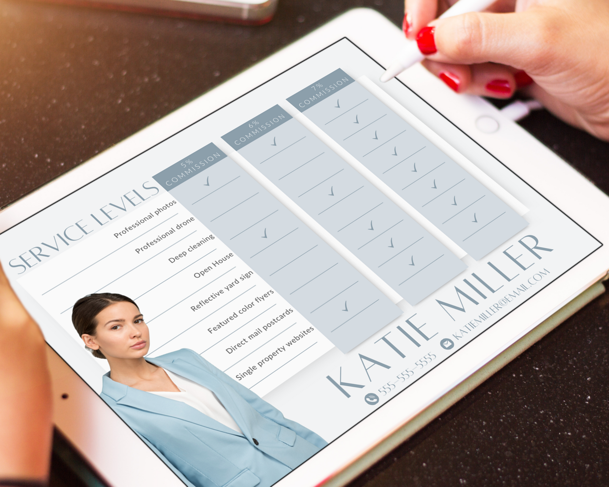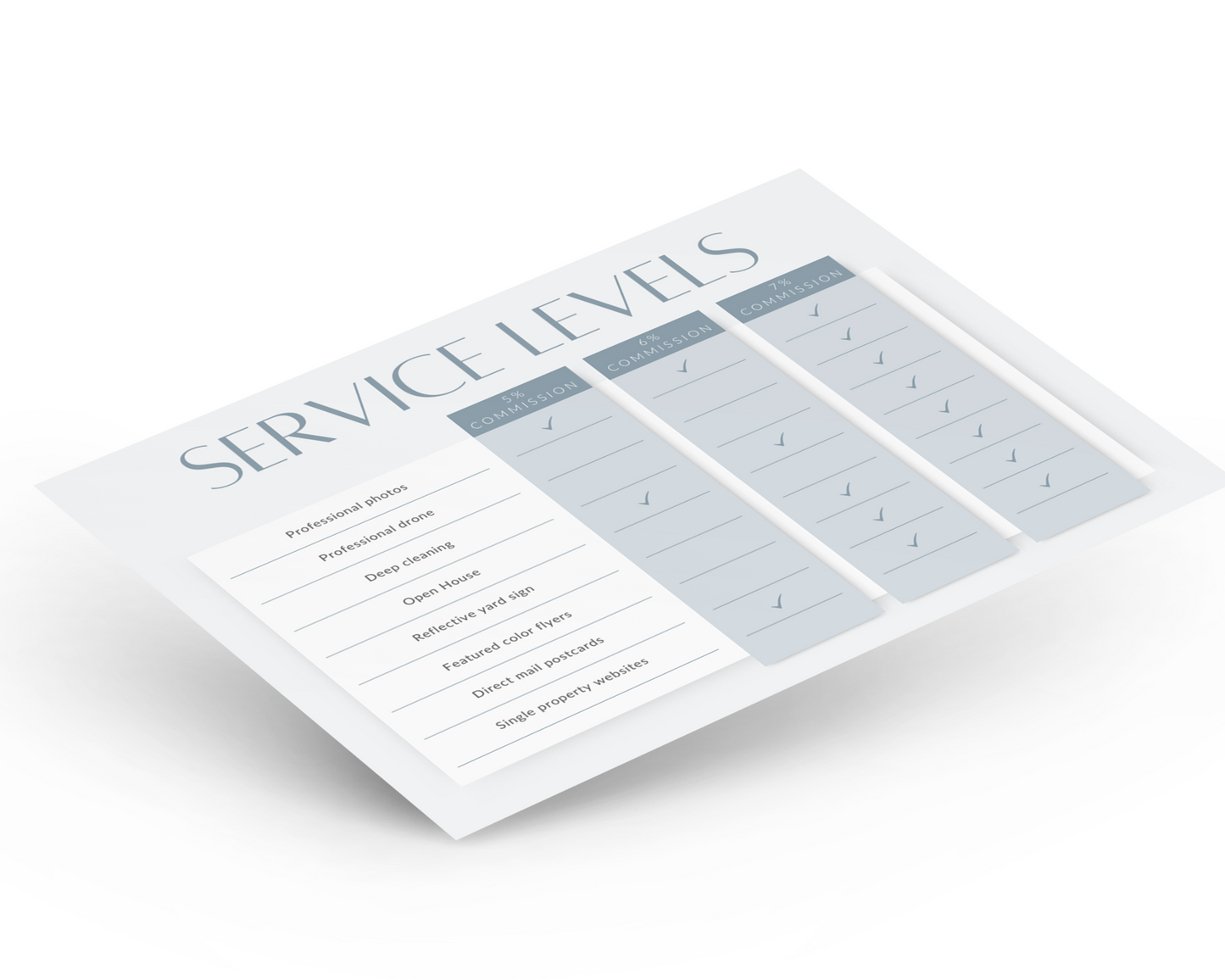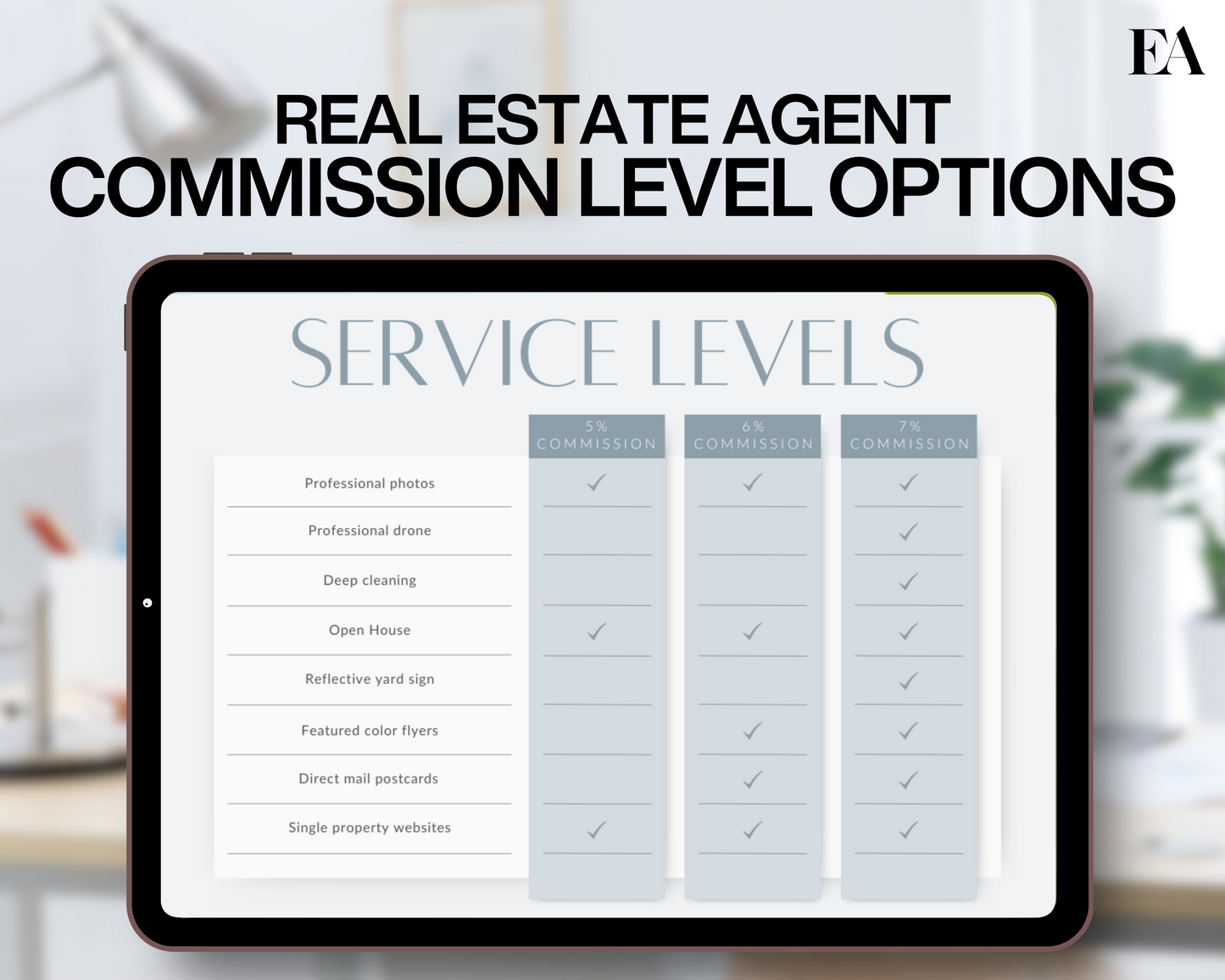 Real Estate Service Levels Template Real Estate Commission Sheets Templates Real Estate Marketing Listing Presentation Realtor Commission New Agent Canva Flyer